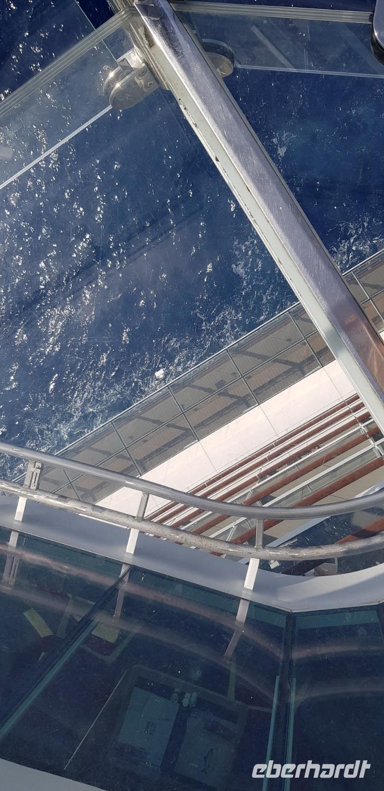 Heute ist „Faulenzen" und Genießen angesagt. Wir haben den 2. Seetag. Es kann jeder in Ruhe und wann er will frühstücken. Um 10.00 Uhr haben wir noch mal ein Treffen vereinbart, wo wir bei einem Glas Sekt die Abreisemodalitäten besprechen. Und dann heißt es, die an Bord angebotenen Aktivitäten nutzen, shoppen oder die angebotenen Annehmlichkeiten genießen. Der Wettergott meint es gut mit uns - Sonnenschein, blauer Himmel und ruhige See.