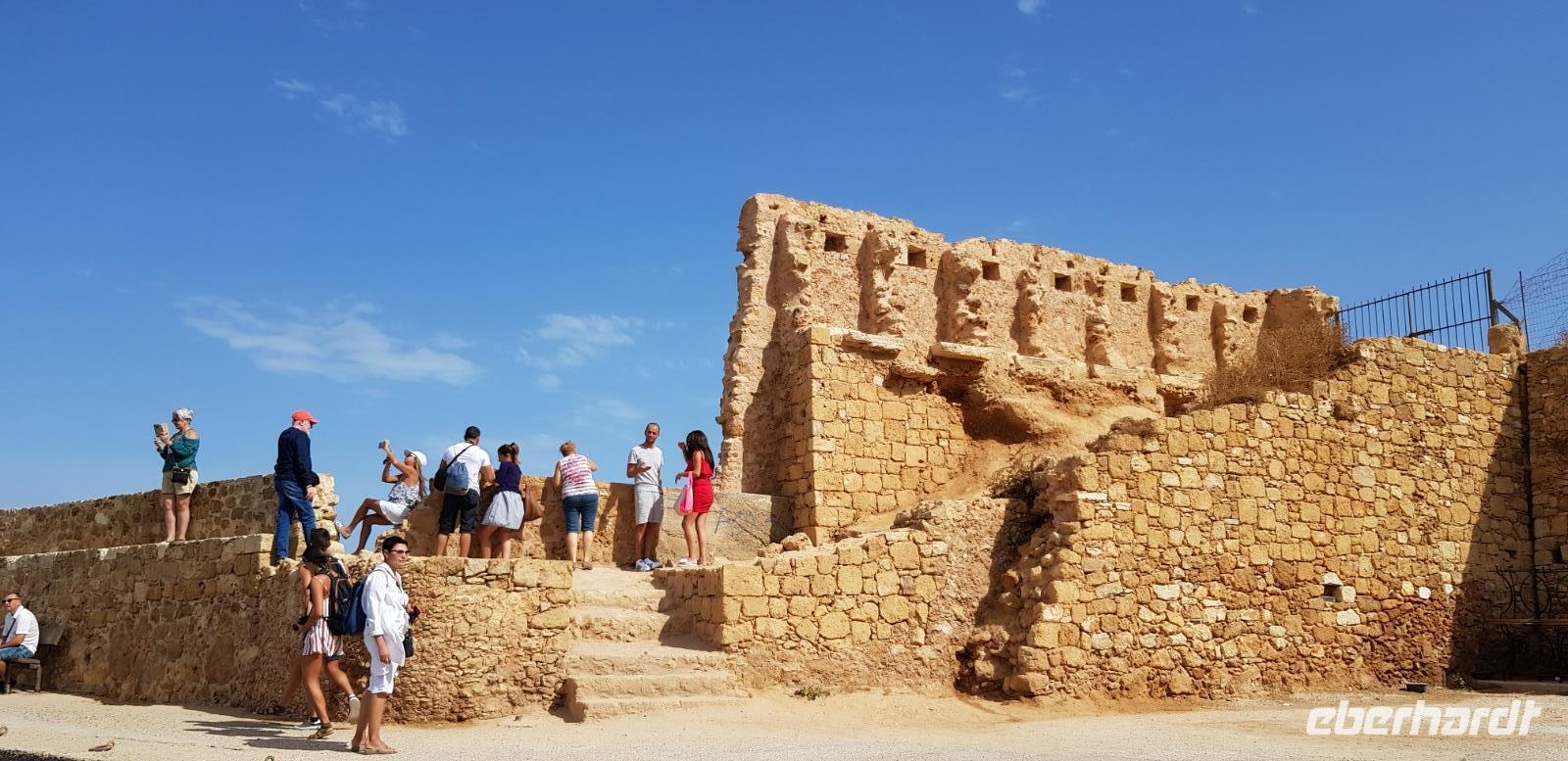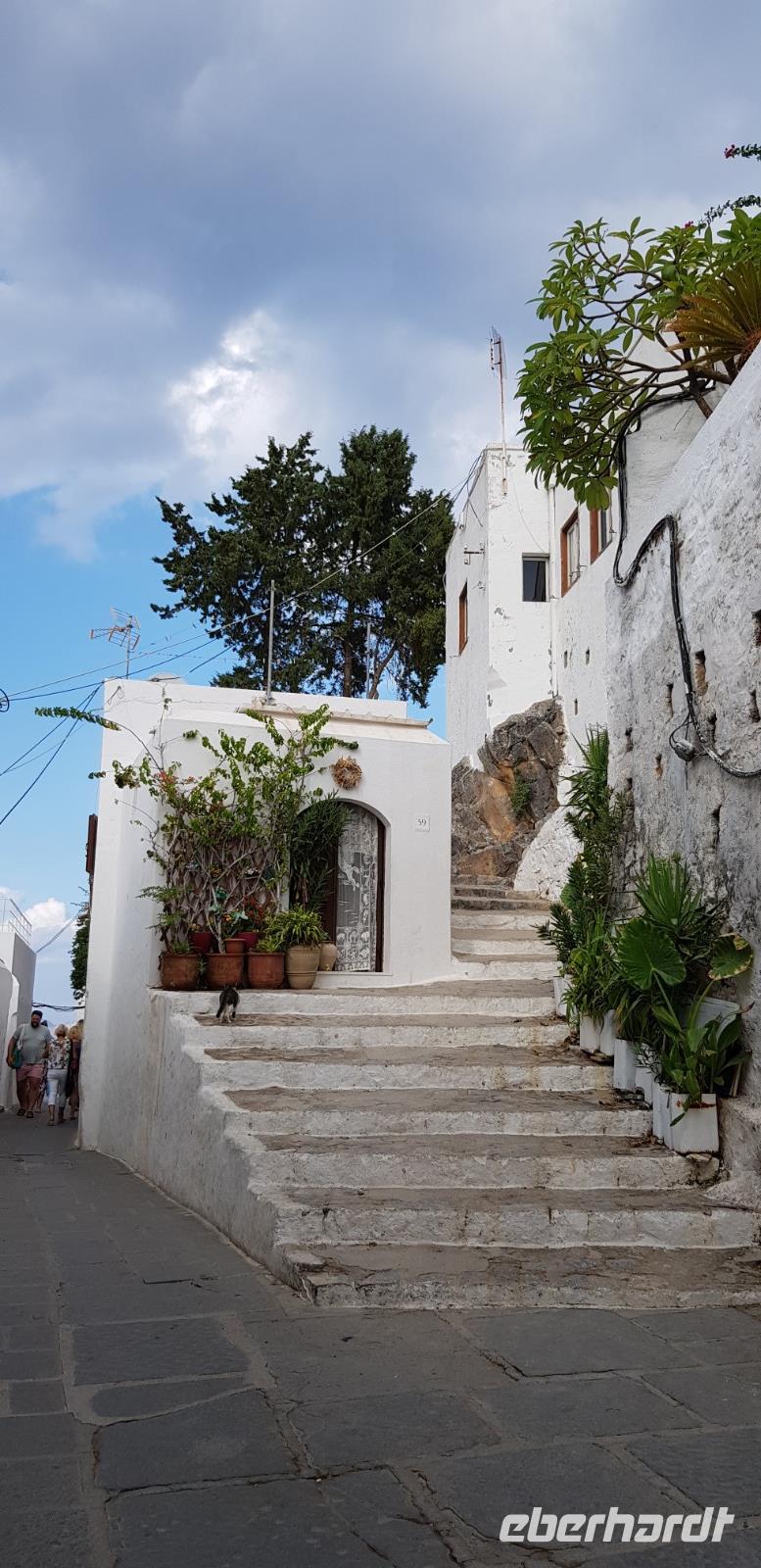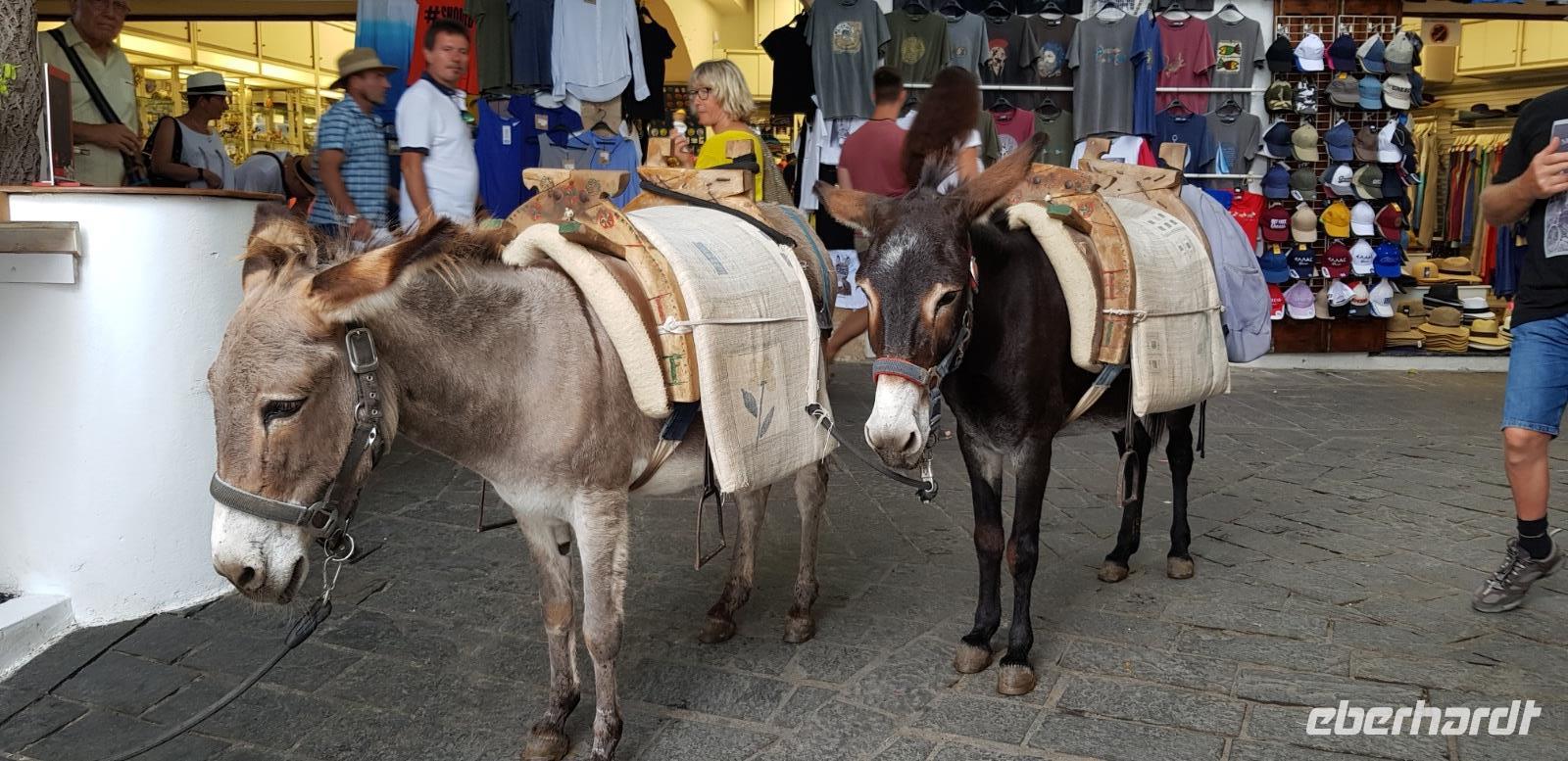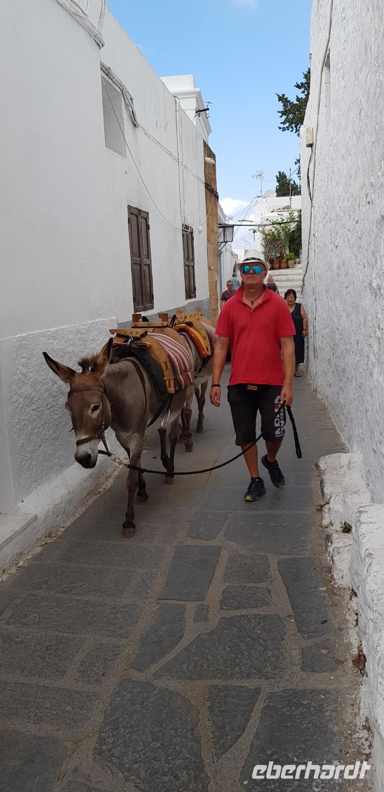 Wir starten erst mittags um 13.00 Uhr zu unserer Inselrundfahrt. Am Mandraki-Hafen machen wir einen kurzen Stopp. Hier ankern vor allem Ausflugsschiffe und Motor- und Segeljachten. Der Hafen ist von einer Mole umgeben. Über der Hafeneinfahrt soll der Koloss von Rhodos, eines der Weltwunder, gestanden haben. Heute wird die Hafeneinfahrt von zwei Säulen mit den Wappentieren von Rhodos, Hirsch und Hirschkuh flankiert. Dann geht die Fahrt weiter hinauf zur Akropolis von Rhodos. Von dort aus bietet sich ein wunderbarer Blick über die Stadt. Auf der Panoramastraße fahren wir nun über die Insel bis zu dem kleinen Örtchen Lindos. Bevor wir Lindos erreichen, werfen wir einen Blick auf die malerische St. Pauls Bucht. Von hier aus können wir auch die Akropolis von Lindos sehen, die sich über dem Örtchen auf einem Felsplateau befindet. Die weißen Häuser des Ortes schmiegen sich an den Hang der Akropolis. Wir unternehmen einen Spaziergang durch die engen Gassen von Lindos und bestaunen die weißen Häuser. Den etwas beschwerlichen Weg zur Akropolis hinauf kann man auch auf dem Rücken von Maultieren/Eseln zurücklegen. Dann geht es wieder zurück nach Rhodos-Stadt und zu unserem Schiff. Die Gäste,die schon am Vormittag ihren Ausflug hatten, können den Nachmittag bis zum Ablegen noch in der Altstadt von Rhodos verbringen oder auch schon auf das Schiff zurückkehren.