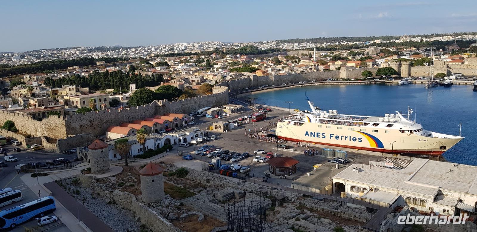 Schon früh am Morgen hat unser Schiff im Hafen angelegt. Beim Frühstück ist es noch gar nicht richtig hell. Es stehen wieder verschiedene Ausflüge zur Wahl wie die Besichtigung der Inselhauptstadt Rhodos zu Fuß, eine Inselrundfahrt mit Besuch von Lindos und ... . Schon früh am Morgen, kurz nach dem Frühstück, starten die ersten Ausflüge.