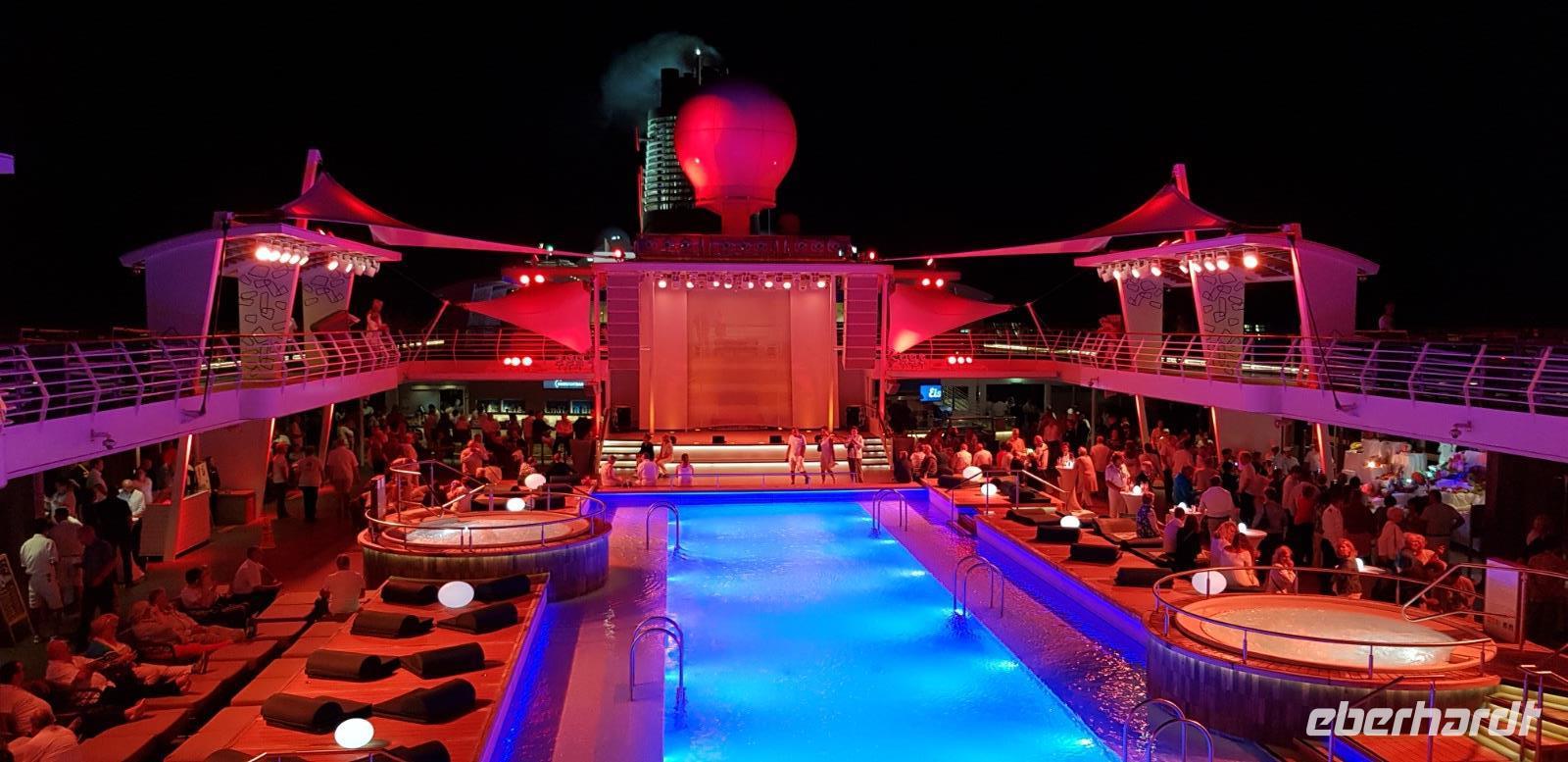 Am Abend treffen wir uns zum letzten gemeinsamen Abendessen im Restaurant Atlantik klassik. Wir genießen die sehr angenehme Atmosphäre und das gute Essen und Trinken - wir lassen uns einfach noch mal so richtig verwöhnen. Auf dem Pooldeck findet heute die Abschlussparty statt. Der Kreuzfahrtdirektor führt durch den Abend. Wir haben insgesamt ca. 3.000 km oder 1.800 naut. Seemeilen zurückgelegt, wenn wir wieder in Valletta / Malta angelegt haben. Auf der Kreuzfahrt haben wir ca. 3.000 l Wein 6.000 l Wasser und ca. 9.000 l Bier getrunken und 33.000 Eier gegessen. Fast 1.000 Mitglieder der Crew haben für eine angenehme und sichere Fahrt und einen fantastischen Service an Bord gesorgt. So konnten wir Gäste die Kreuzfahrt sorgenfrei genießen.