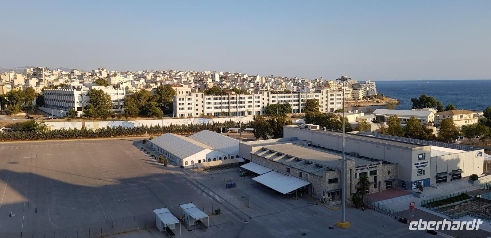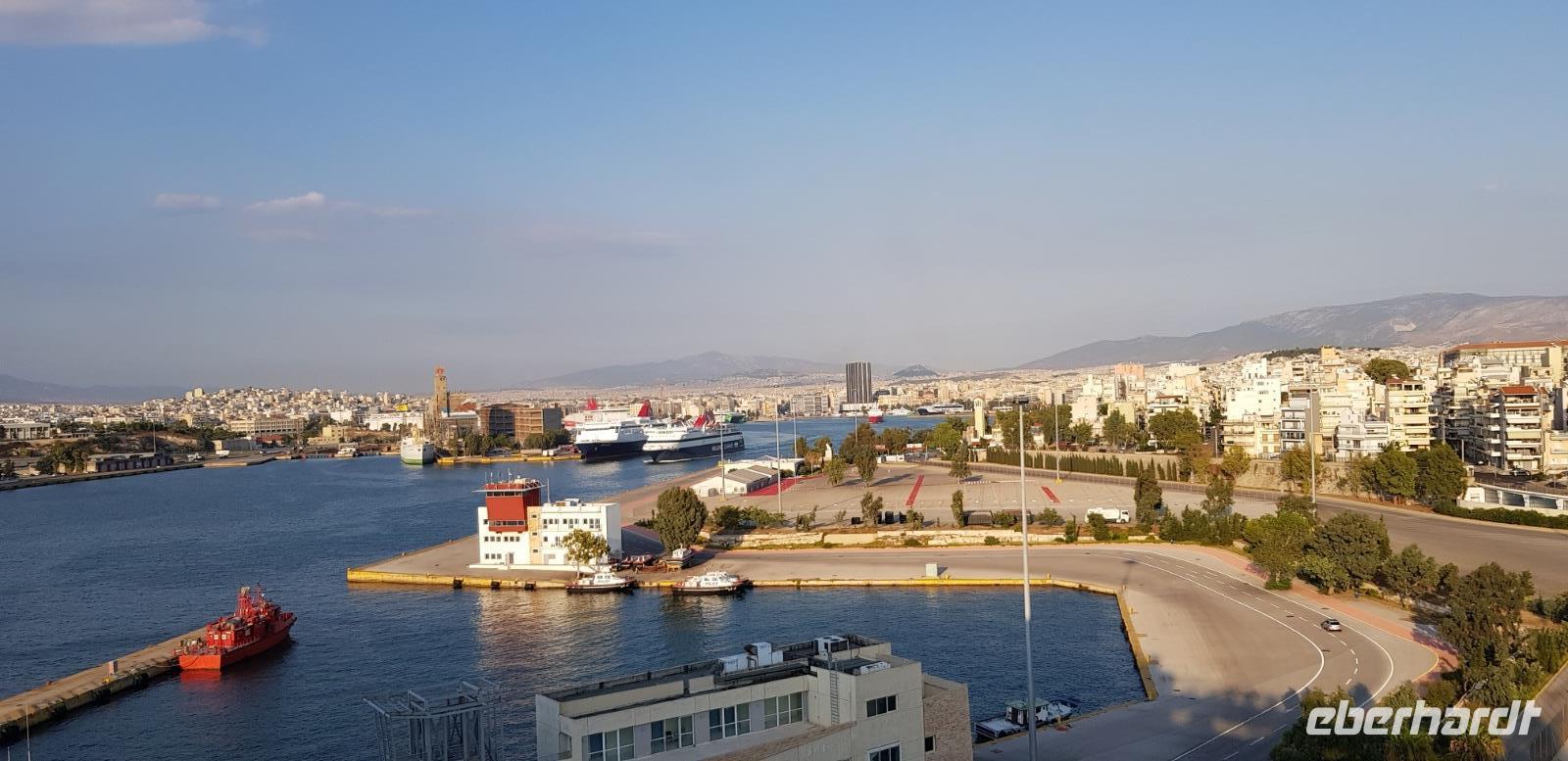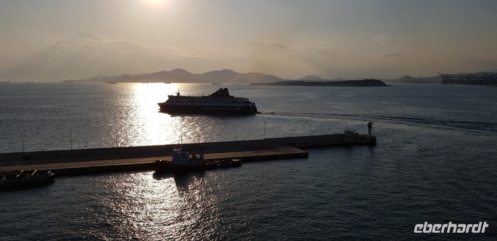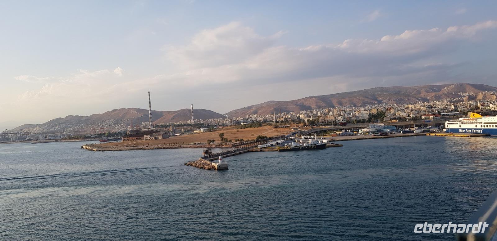 Die Mein Schiff 6 hat schon früh am Morgen vor dem "Berufsverkehr" im Hafen von Piräus angelegt. Wir gehen gestärkt vom reichhaltigen Frühstücksbuffet auf dem Schiff in Piräus an Land. Maria, unsere örtliche Reiseleiterin in Athen, holt uns zusammen mit dem Fahrer und dem Bus am Hafen ab. So können wir zu unserem Ausflug starten. Zuerst geht es durch das moderne Piräus, am Yachthafen vorbei und dann auf der Hauptverkehrsstraße nach Athen. Wir können schon von weitem die Akropolis sehen, die auf dem höchsten Felsen über der Stadt thront.