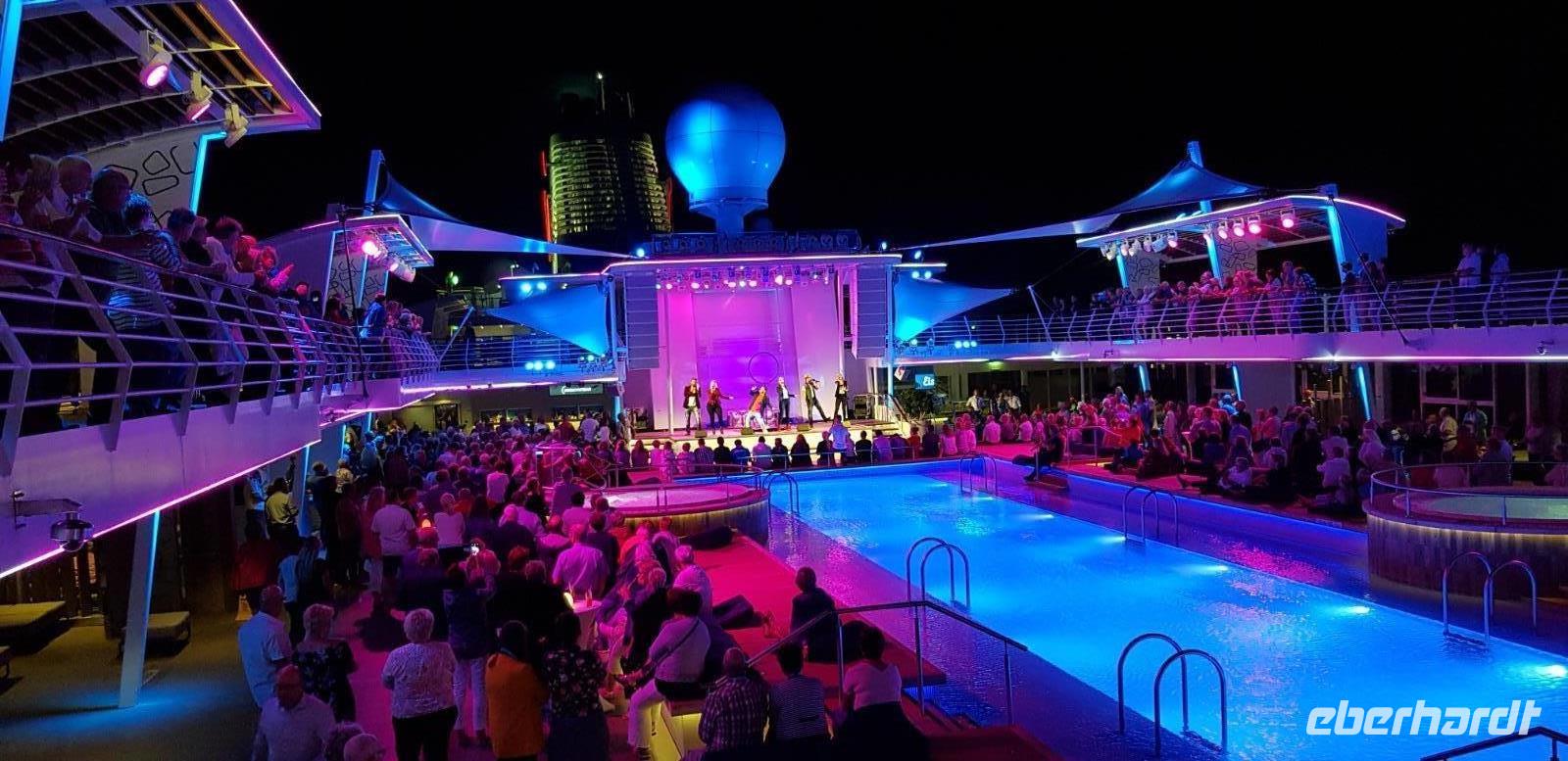 Auf dem Schiff erwartet uns wieder ein erlebnisreicher Abend bei einem tollen Abendessen - heute u.a. noch mal im Atlantik mediterran und anschließend bei der Show des Kreuzfahrtdirektors im Theater oder bei einem Drink an einer der vielen Bars oder einfach auf dem Balkon der Kabine. Ein unvergesslicher Tag geht zu Ende.