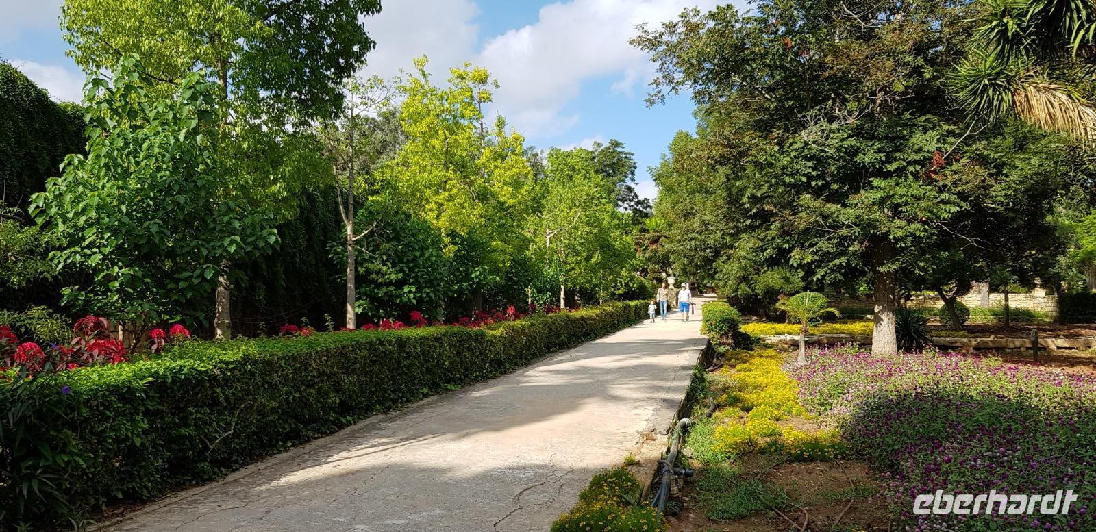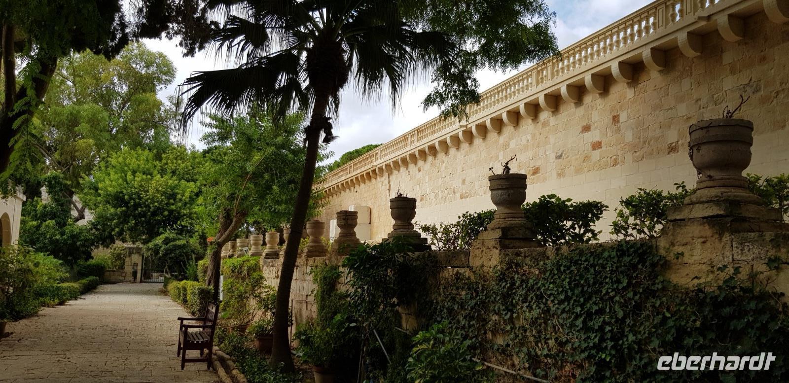 ihre Freizeit. Nur ein Drittel des Parks sind für die Öffentlichkeit zugänglich. Die anderen zwei Drittel gehören zu dem Landsitz, in dem der Präsident Maltas wohnt. Der Spaziergang durch den Park ist am Vormittag sehr angenehm. Die großen Bäume spenden ordentlich Schatten und es sind noch nicht so viele Besucher da. So können wir die Parkanlage sehr gut genießen.