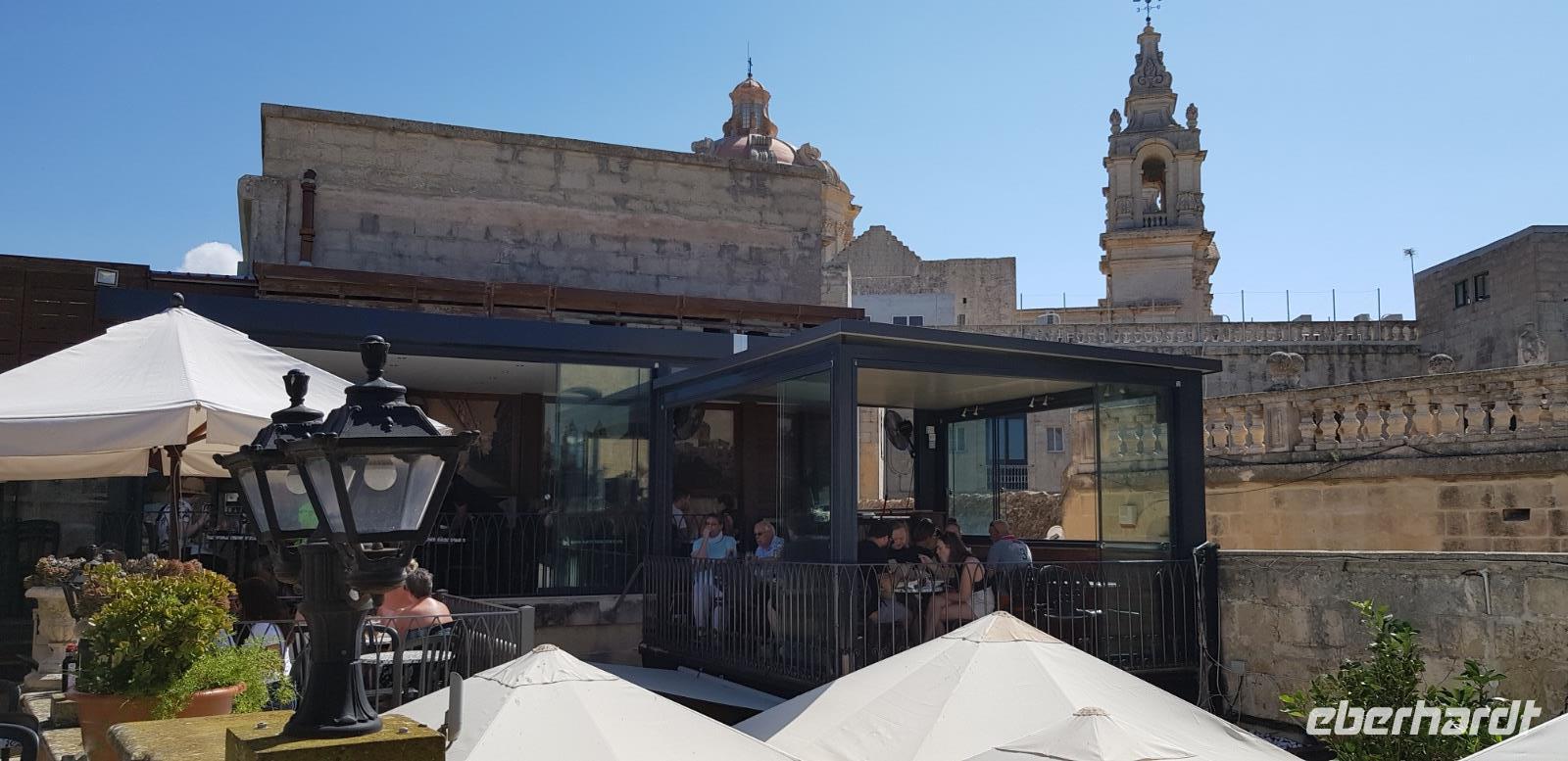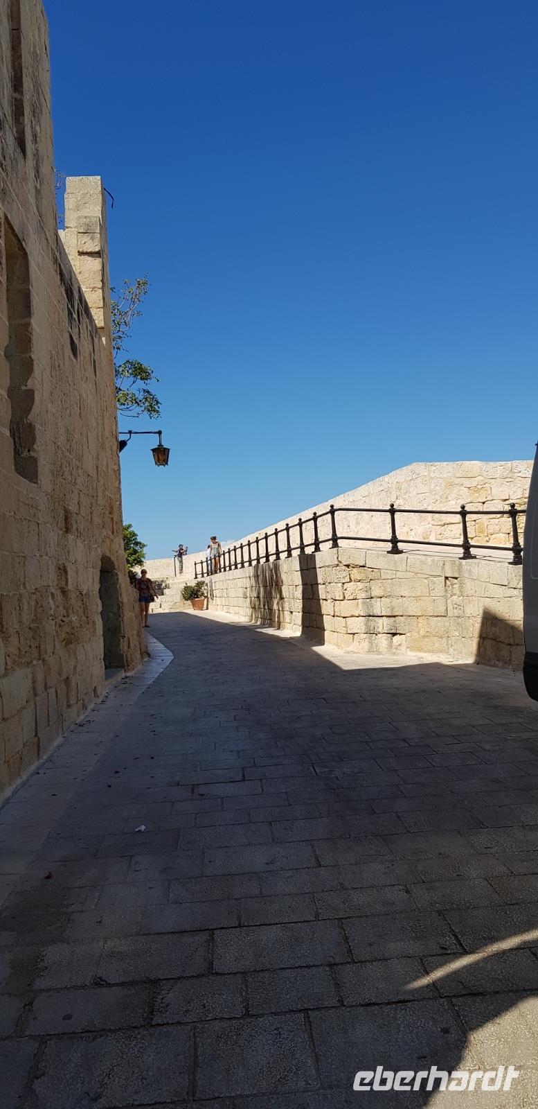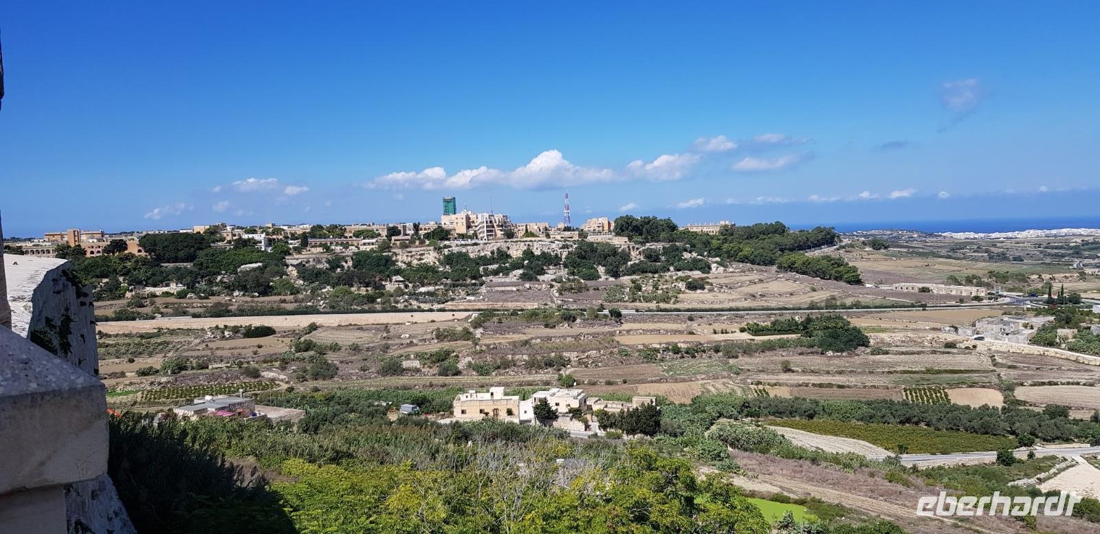 Dann geht es weiter nach Rabat und Mdina, der alten Hauptstadt Maltas. Die beiden Städte grenzen unmittelbar aneinander und befinden sich in der Mitte der Insel Malta. Der Autoverkehr ist nur sehr eingeschränkt möglich, so dass wir ganz entspannt durch die Städte bummeln können. In Rabat besuchen wir die Katakomben, sehen die St. Paul's Kathedrale und bummeln durch die Gassen. Anschließend gelangen wir über eine Allee zum Hauptstadttor von Mdina. Und schon sind wir in Mdina. Mdina ist komplett von einer Mauer umgeben. In der Stadt wohnen noch ca.300 Menschen. Wir spazieren an alten Adelspalästen, Kirchen und Klöstern und Wohnhäusern vorbei. Zu einem kleinen Mittags-Snack kehren wir auf Empfehlung von Gaby in den Fontanella Tea Gardens auf der Stadtmauer von Mdina ein. Neben leckeren maltesischen Kuchen können wir von hier aus auch einen fantastischen Blick über die Insel genießen. Dann geht es weiter durch die Stadt und wir treffen unseren Bus wieder. Der bringt uns nun zum Flughafen. Wir verabschieden uns von Gaby und dem Fahrer und bedanken uns für den sehr eindrucksvollen Ausflug, der unsere Reise noch so richtig komplettiert hat. Eine eindruckvolle fantastische Reise geht langsam zu Ende. Es hat einfach alles gepasst!