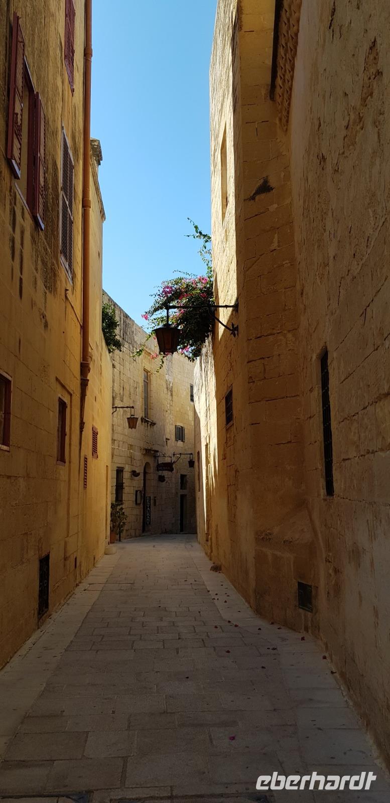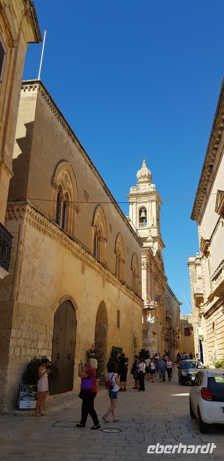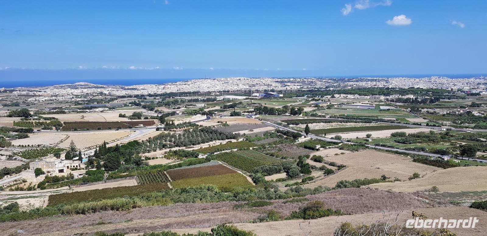 Dann geht es weiter nach Rabat und Mdina, der alten Hauptstadt Maltas. Die beiden Städte grenzen unmittelbar aneinander und befinden sich in der Mitte der Insel Malta. Der Autoverkehr ist nur sehr eingeschränkt möglich, so dass wir ganz entspannt durch die Städte bummeln können. In Rabat besuchen wir die Katakomben, sehen die St. Paul's Kathedrale und bummeln durch die Gassen. Anschließend gelangen wir über eine Allee zum Hauptstadttor von Mdina. Und schon sind wir in Mdina. Mdina ist komplett von einer Mauer umgeben. In der Stadt wohnen noch ca.300 Menschen. Wir spazieren an alten Adelspalästen, Kirchen und Klöstern und Wohnhäusern vorbei. Zu einem kleinen Mittags-Snack kehren wir auf Empfehlung von Gaby in den Fontanella Tea Gardens auf der Stadtmauer von Mdina ein. Neben leckeren maltesischen Kuchen können wir von hier aus auch einen fantastischen Blick über die Insel genießen. Dann geht es weiter durch die Stadt und wir treffen unseren Bus wieder. Der bringt uns nun zum Flughafen. Wir verabschieden uns von Gaby und dem Fahrer und bedanken uns für den sehr eindrucksvollen Ausflug, der unsere Reise noch so richtig komplettiert hat. Eine eindruckvolle fantastische Reise geht langsam zu Ende. Es hat einfach alles gepasst!