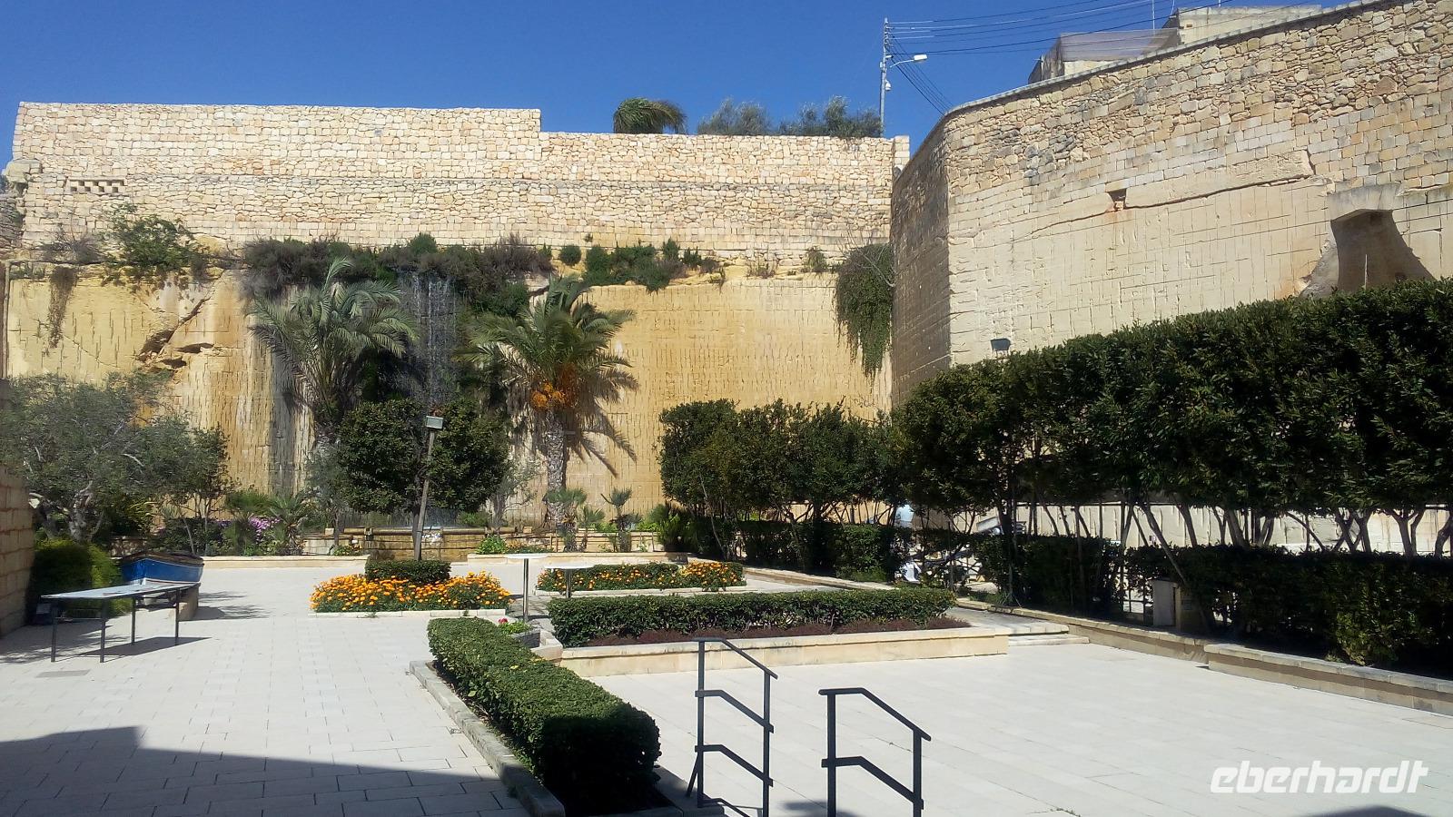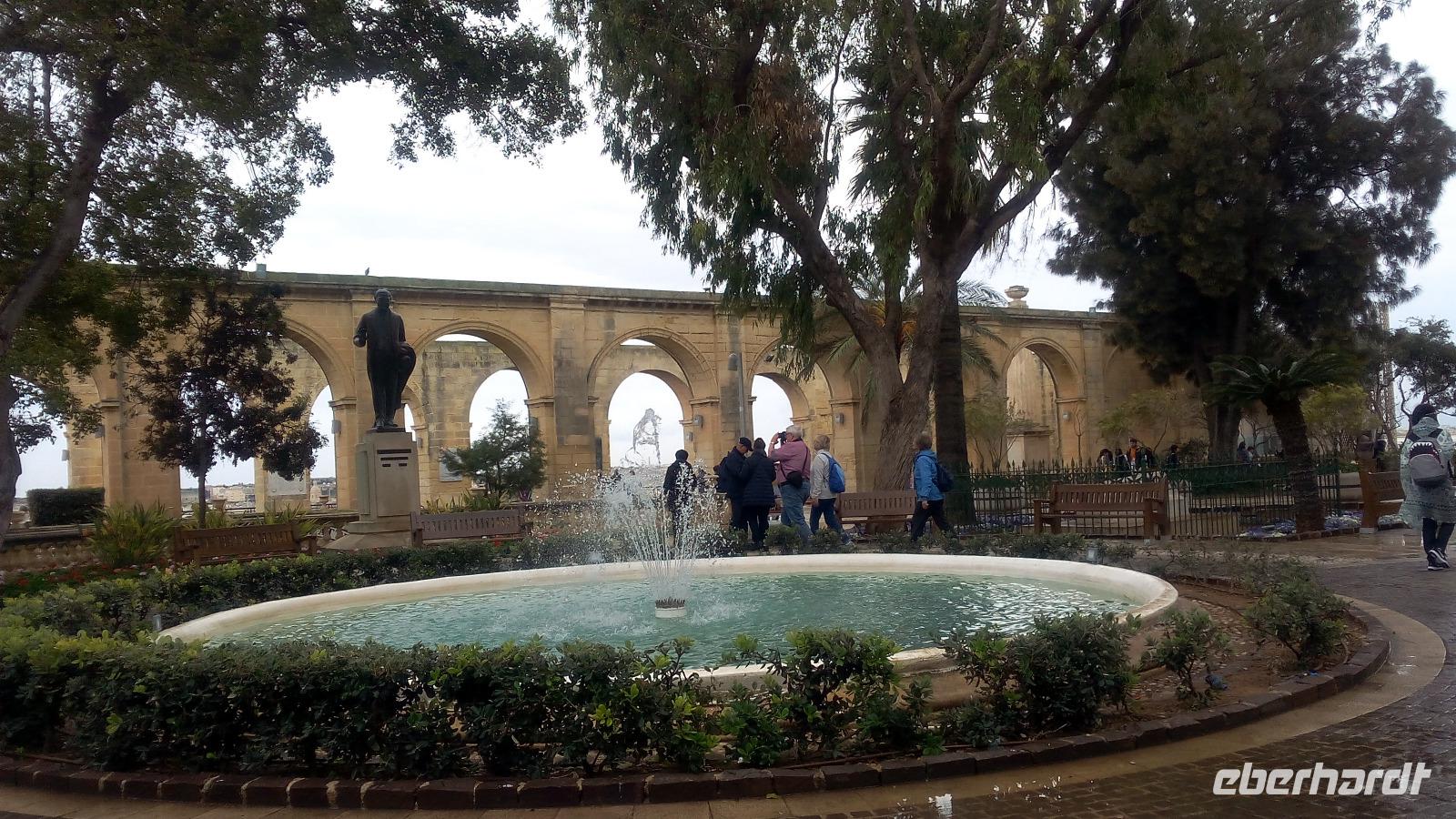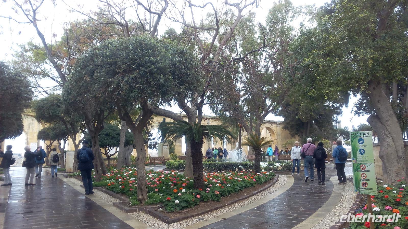 Wir beginnen unseren Rundgang in der Stadt mit den Lower Barracca Gardens im Süden der Altstadt, uns beeindruckt der Blick von hier aus auf die Drei alten Städte und den Grand Harbour. Etwas betrüblich ist das Wetter, es geht nicht ohne Schirm. Der Wetterbericht sagt aber für den heutigen Tag noch Gutes voraus.