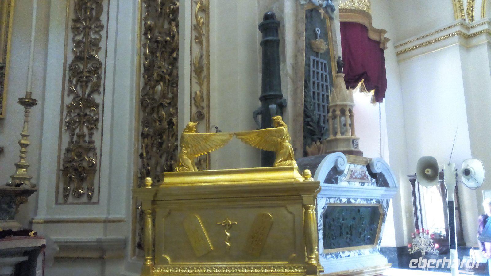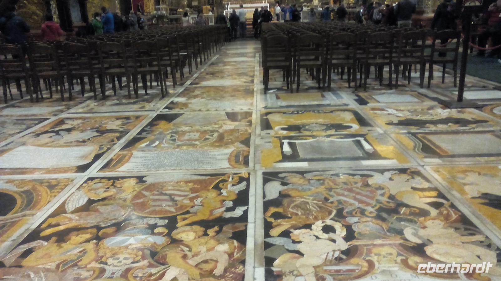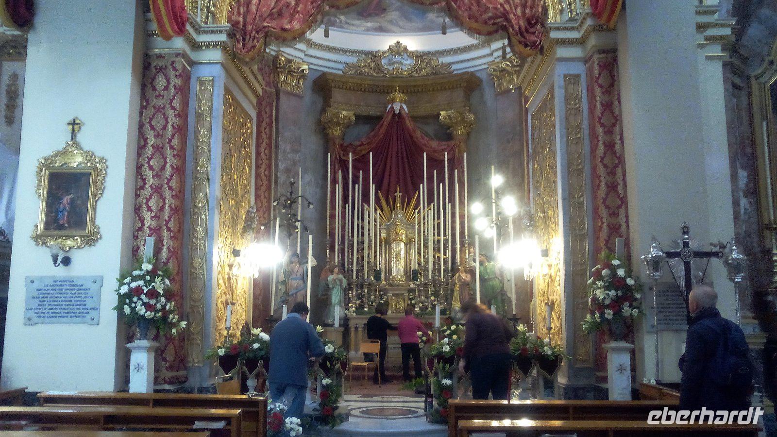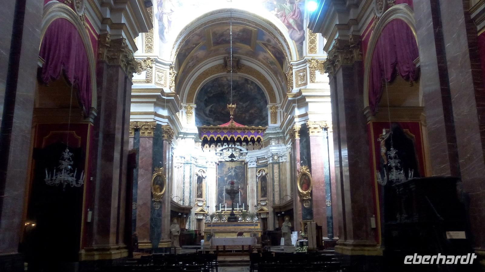 mit dem berühmten Gemälde - Die Enthauptung Johannes des Täufers - vom italienischen Künstler Caravaggio im Oratorium. Wir sind überwältigt von der Pracht im Kirchenschiff. Die prächtige Wandmalerei stammt vom italienischen Maler Mattia Preti, die im 17. Jahrhundert von ihm auf eigene Kosten geschaffen wurden. Dafür wurde der Maler als Ritter in den Orden aufgenommen. Auch der Fußboden mit seinen Grabplatten beeindruckt uns sehr. Hier sehen wir vielfarbige Marmorintarsien, insgesamt sollen es 405 Grabplatten sein. Nach der Führung bleibt uns Zeit, die Kathedrale auf uns wirken zu lassen und es fällt schwer sich auf Neues einzustellen.