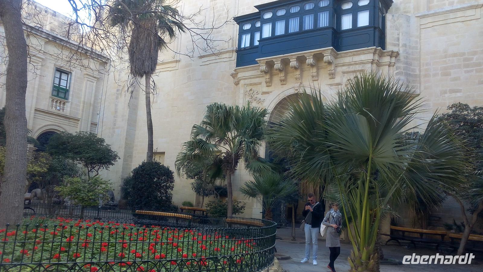 mit seiner Rüstkammer der Johanniter. Wer auch immer Malta beherrschte, in diesem Palast residierten bis 1798 die Großmeister, danach die Britischen Gouverneure und heute die maltesische Präsidentin. Er ist Sitz der Mächtigen. Sehr gespannt auf die Führung folgen wir Anita. Im Anschluss sehen wir noch in den einstigen Pferdeställen die Rüstkammer. 1555 gab es einen Erlass, dass beim Tod eines Ritters die Rüstung und Waffen in Ordensbesitz kamen. Heute sollen es noch etwa 5.800 Waffen aller Art sein. Die Ausstellung ist sehr beeindruckend und stimmt uns nachdenklich.