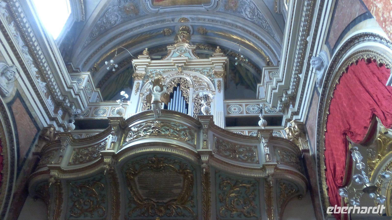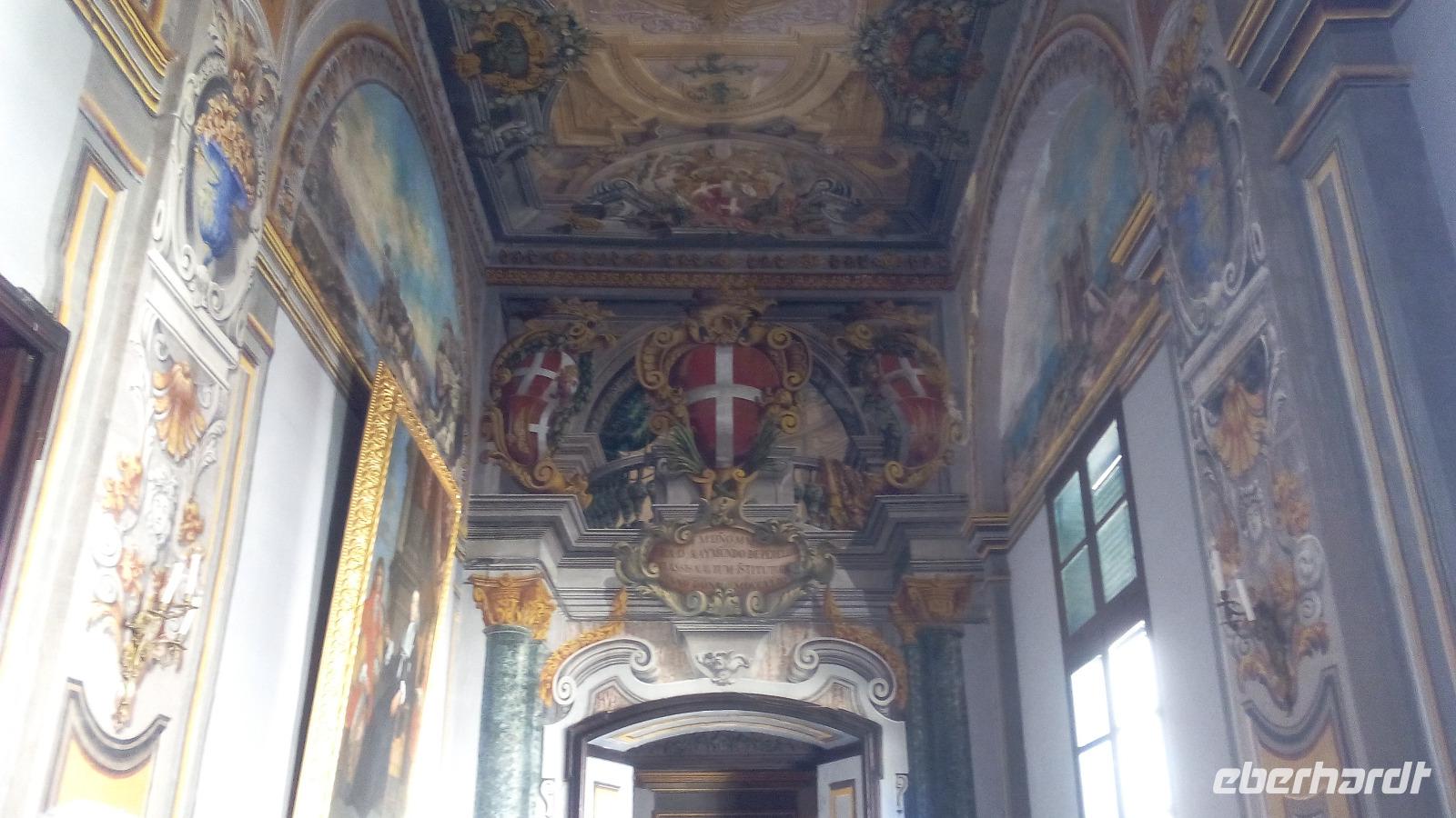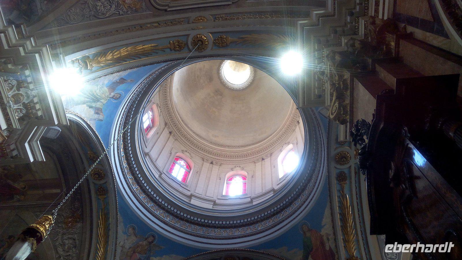 Nach ca. 40 Minuten stehen wir wieder vor dem Museum. Jetzt brauchen wir eine Mittagspause. Wir laufen entlang der Republic Street bis zur Nationalbibliothek Maltas. Von hier aus kann jeder in die Mittagspause starten. Gegenüber der Bibliothek ist das Cafe Cordina. Es gilt als Maltas berühmtestes Cafe. Es ist nicht nur für die Süßigkeiten bekannt, sondern auch für die Deckenmalerei, die wir uns ansehen.