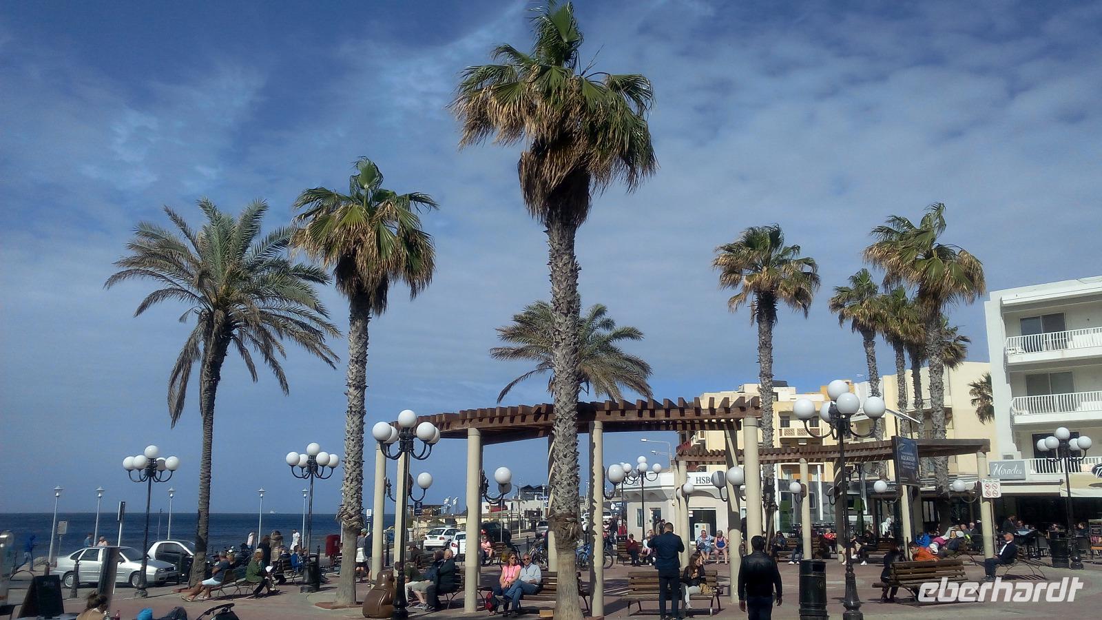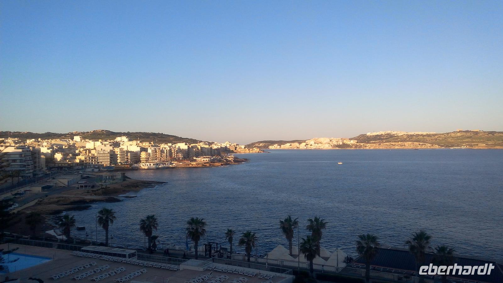 Im Anschluss fahren wir zum Weingut Meridiana und probieren den maltesischen Rot- und Weißwein. Dazu Käse und Gebäck. Der Weinanbau hat eine alte Tradition auf Malta. Die Römer waren es, wenn nicht schon die Phönizier, die mit dem Anbau begonnen haben. Wir lassen es uns schmecken und fahren anschließend zum Hotel zurück. Der Nachmittag steht zur freien Verfügung. Wir haben am Mittag bereits Temperaturen von 22 Grad. Die Richtige Temperatur, um Zeit am Strand zu verbringen oder auch die Hotelanlage mit dem herrlichen Außenbereich zu erkunden. Der Tag war ein Tag der Entspannung und voller Informationen zu Malta.