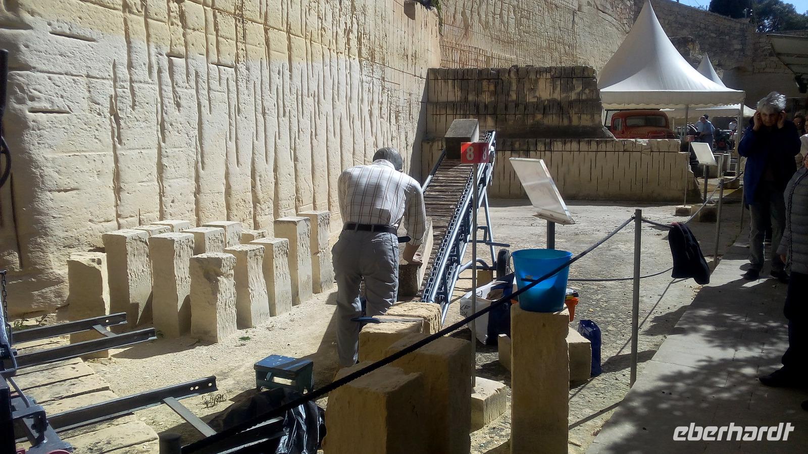 Wir haben einen herrlichen Blick auf die alte Hauptstadt und stoppen hier für ein Foto. Wir wissen nicht, wie das Wetter sein wird, wenn wir die Stadt im Programm haben. Danach geht es weiter in den kleinen Ort Sigiewi. Hier besichtigen wir Limestone Heritags. In einer kurzen Diashow werden wir über den Abbau des maltesischen Kalksteins informiert. Darauffolgend sehen wir die einzelnen Arbeitsschritte während eines Rundgangs. Über Kopfhörer erhalten wir die Erläuterungen zu jedem Abschnitt.