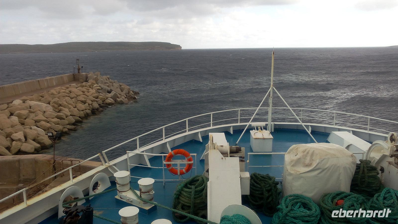 bereitstehen. Für die 6 Kilometer, die wir von Malta nach Gozo mit der Fähre unterwegs sind benötigen wir ca. 25 Minuten.