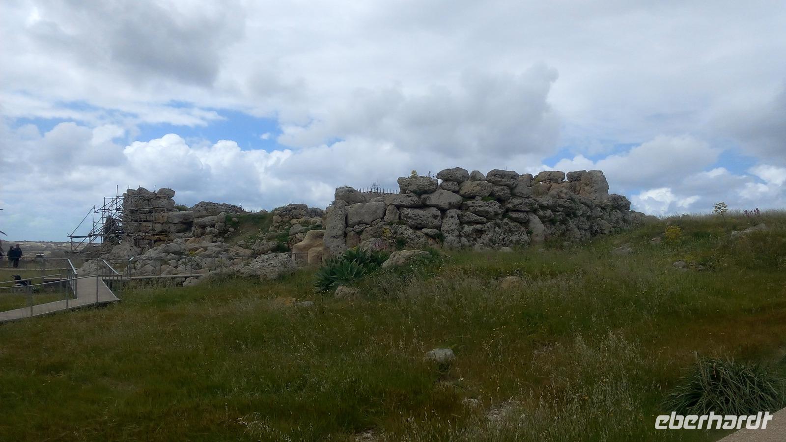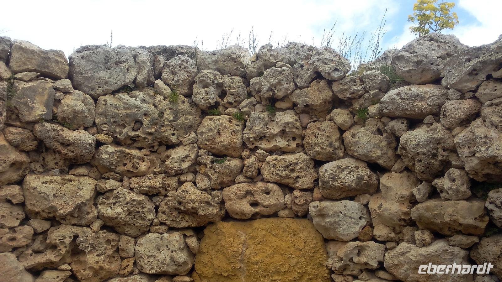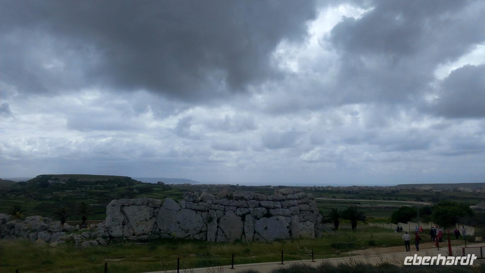 Wir treffen uns in Mgarr am Bus und fahren als Erstes zur Tempelanlage Ggantija Tempel in Xaghra. Diese Anlage soll zwischen 3.600 und 2.400 v. Ch errichtet wurden sein und wurde noch nicht überdacht. Wir kommen durch das moderne Besucherzentrum und werden auch hier zum geschichtlichen Hintergrund und zu bedeutenden Funden informiert. Der Komplex von Ggantja besteht aus zwei nebeneinanderliegenden Tempeln, die die Gozianer 1827 freigelegt haben. Für sie waren diese das Werk einer Riesin, die die gesamte Anlage in einer einzigen Nacht erbaut haben soll und dabei noch ihr Kind auf dem Arm trug.