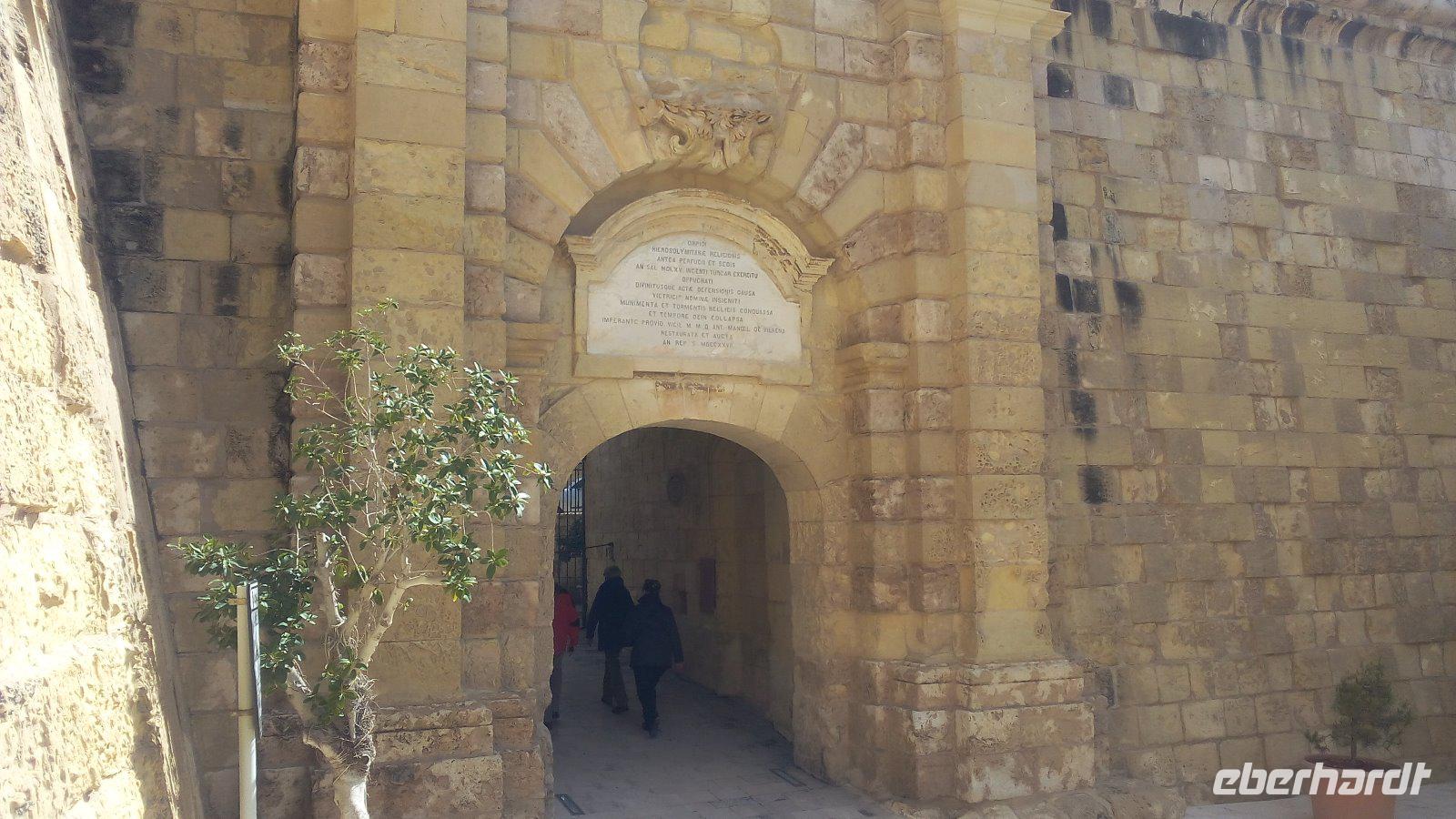Zuerst kommen wir durch Floriano, der Vorstadt von Valletta, Anita informiert uns, dass der Ortsname sich vom italienischen Architekten Floriani ableitet. Den beauftragte der Großmeister Antoine de Paule mit dem Bau eines Bastionsgürtels zum Schutz Vallettas. Wir sehen die großen Mauern mit Respekt, die die Stadt zur größten Festung Europas macht.