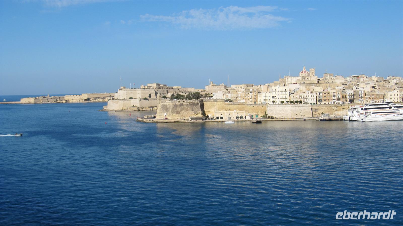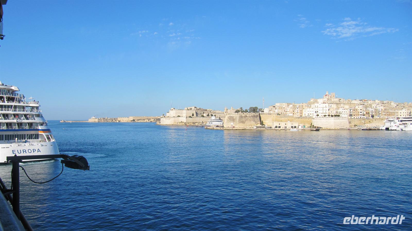 Uns begrüßte wiederum die Sonne und am Vormittag hatte jeder noch Zeit, die Umgebung unseres Hotels San Antonio in Qawra zu erkunden oder einfach nur die Sonne auf dem Balkon des Hotels zu genießen. Am Mittag war es dann endlich soweit: Unsere Kreuzfahrt sollte beginnen. Mit dem Bus fuhren wir zum Hafen von Valletta, der als schönster Naturhafen Europas gilt und wo unser