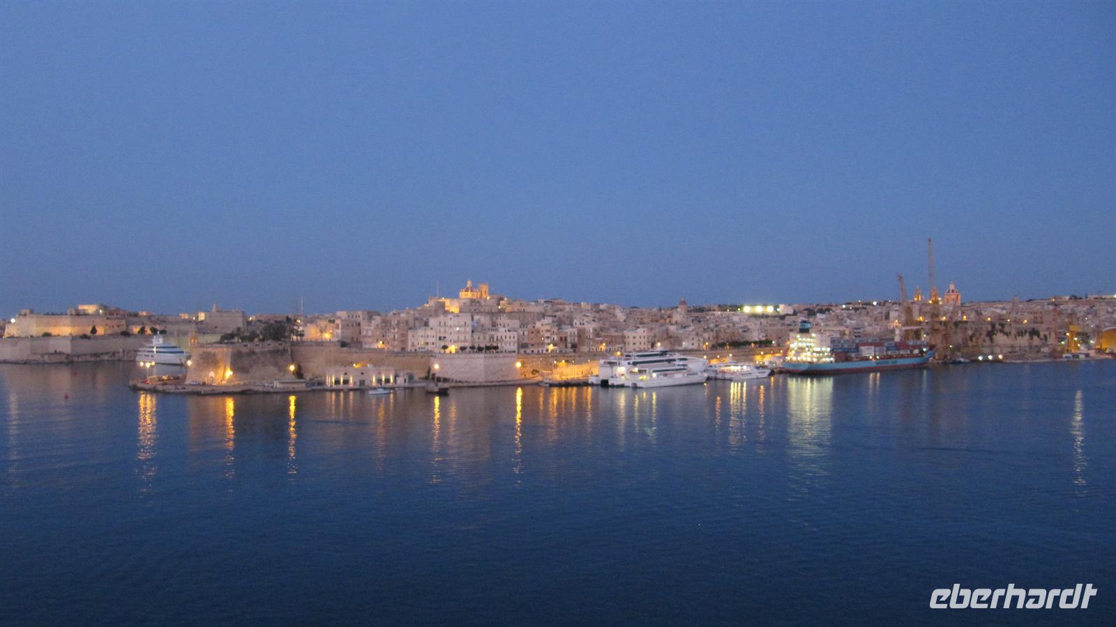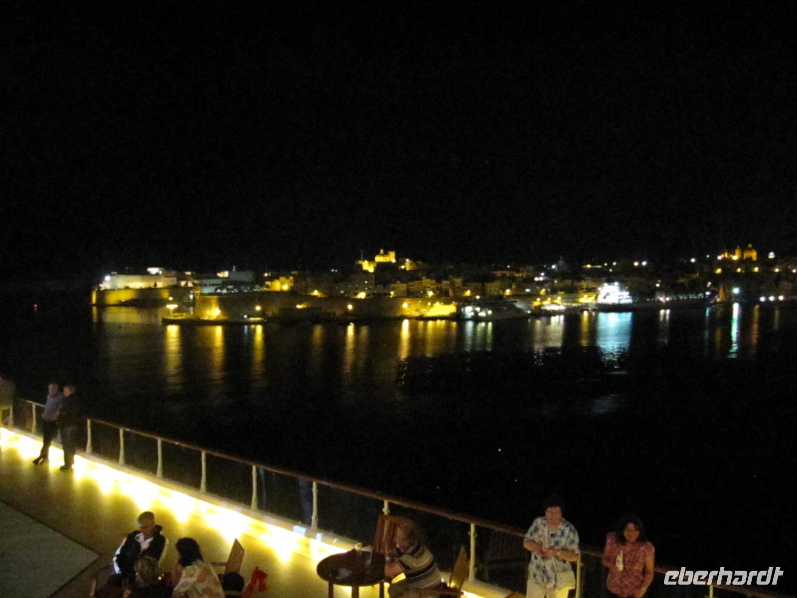 Am Abend wurden wir im Restaurant Atlantik mit einem vorzüglichen 5-Gang-Menü oder im Restaurant Ankelmannsplatz mit Köstlichkeiten vom Buffet verwöhnt. Gegen 22.30 Uhr verließen wir Valletta und hatten dabei eine wunderschönen Blick auf die beleuchtete Hauptstadt Maltas. Bei einem Glas Sekt ließen wir den Tag ausklingen.