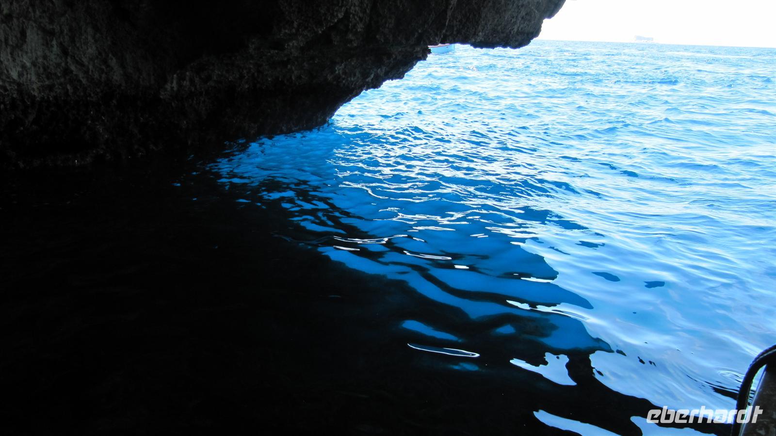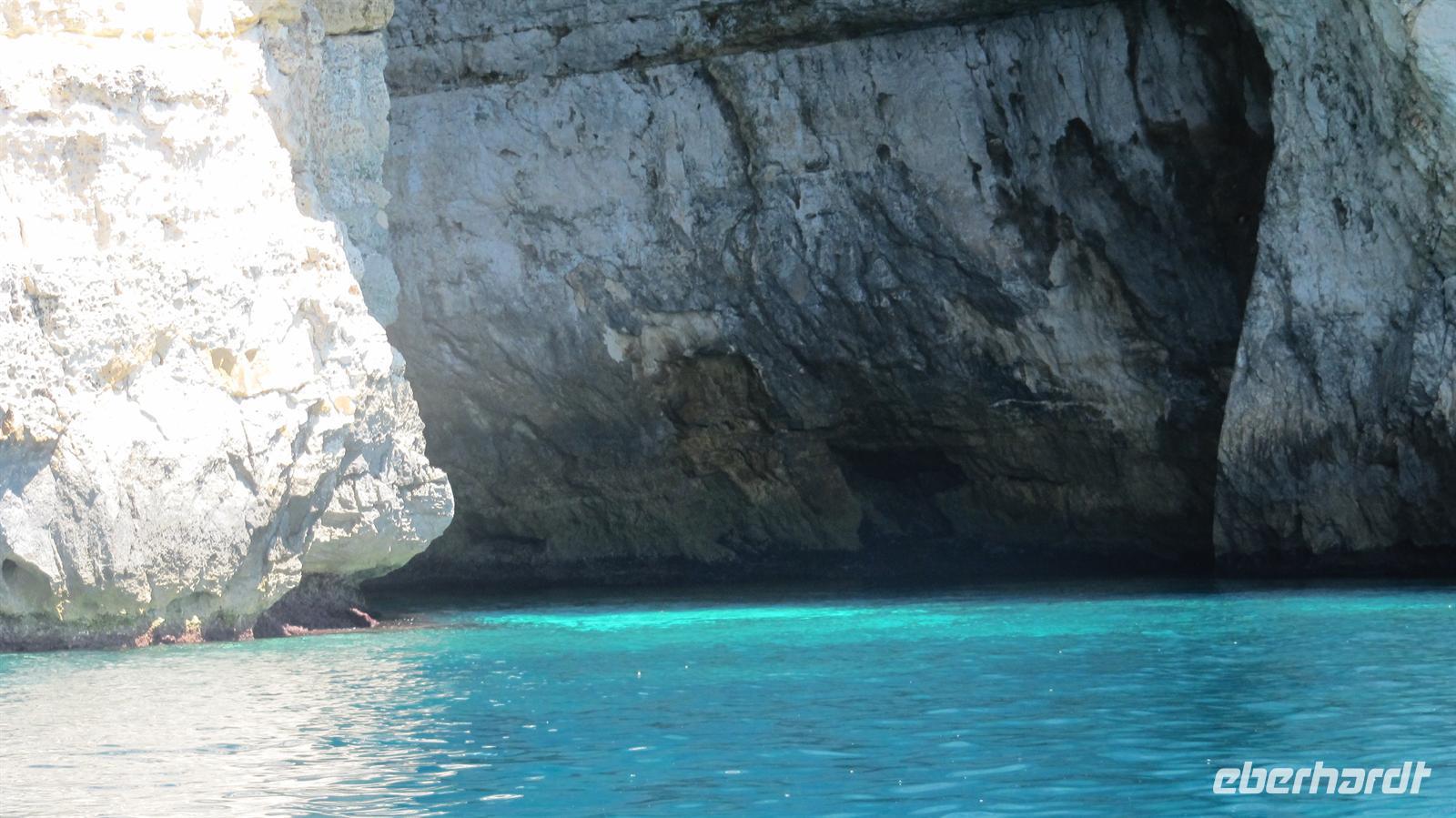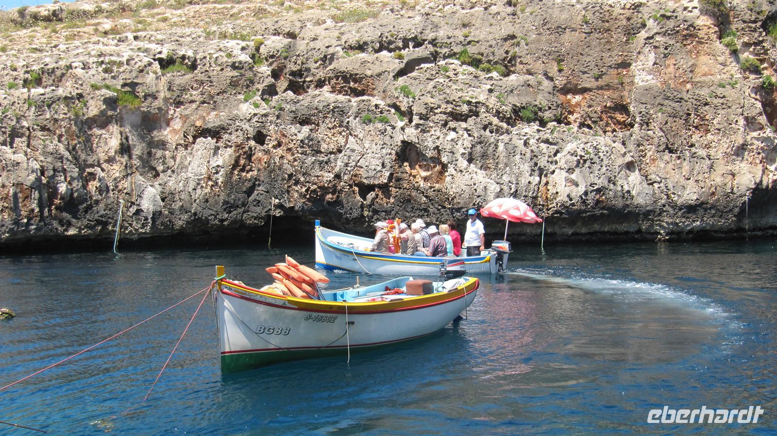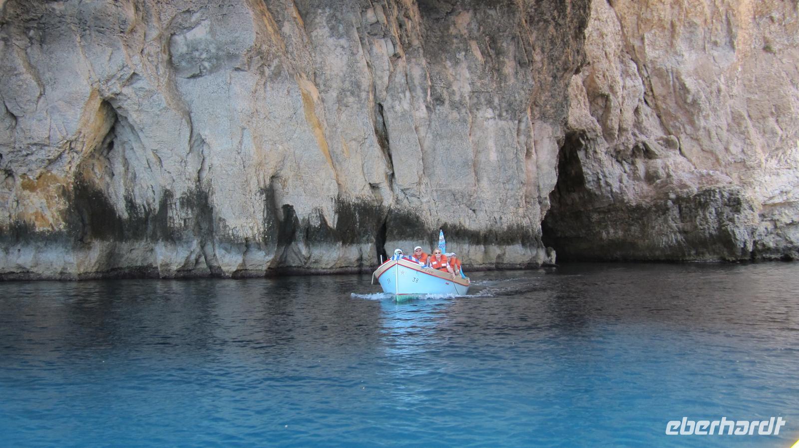 Unser Ausflug ging per Bus nun zur Blauen Grotte. Bereits von der Straße oberhalb der Bucht sahen wir die beeindruckenden Felsformationen. Wir stiegen um in kleine bunte Fischerboote und diese brachten uns zur „Blauen Grotte“. Die Höhlen liegen in den Kalksteinformationen der Steilküste und durch die Reflektion des Sonnenlichtes erscheint das Wasser in strahlendem Blau. Ein faszinierendes Schauspiel der Natur, welches wir in vollen Zügen genossen.