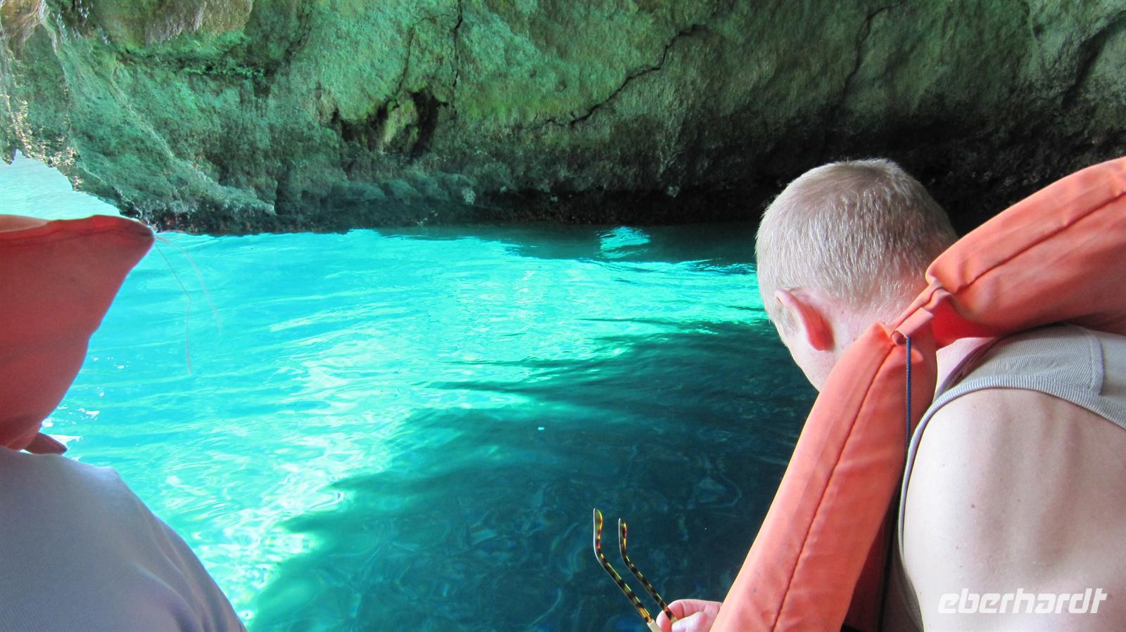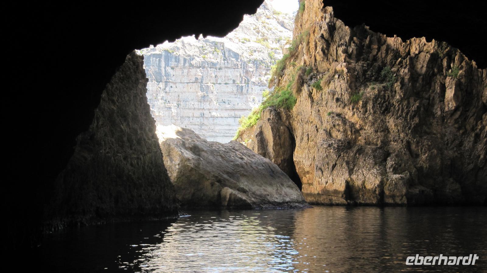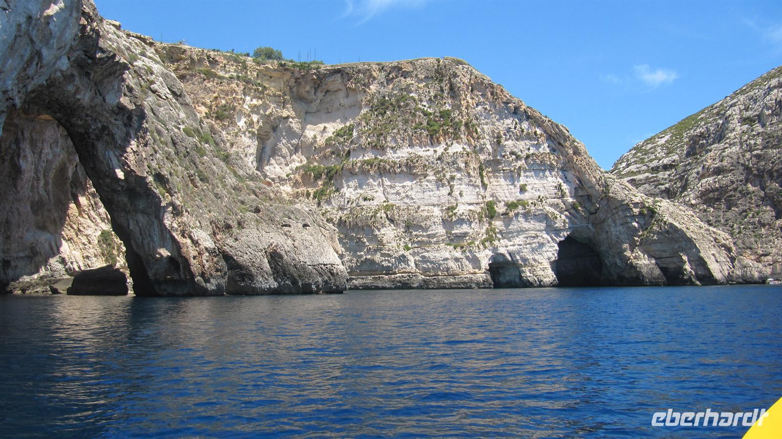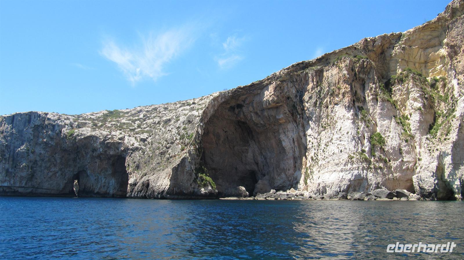 Unser Ausflug ging per Bus nun zur Blauen Grotte. Bereits von der Straße oberhalb der Bucht sahen wir die beeindruckenden Felsformationen. Wir stiegen um in kleine bunte Fischerboote und diese brachten uns zur „Blauen Grotte“. Die Höhlen liegen in den Kalksteinformationen der Steilküste und durch die Reflektion des Sonnenlichtes erscheint das Wasser in strahlendem Blau. Ein faszinierendes Schauspiel der Natur, welches wir in vollen Zügen genossen.