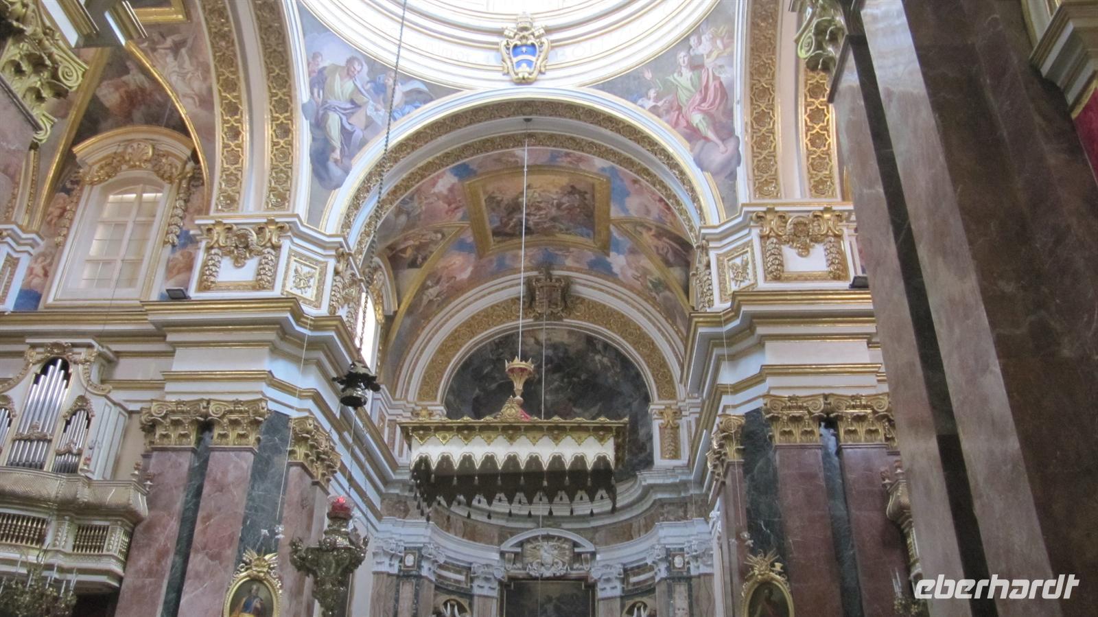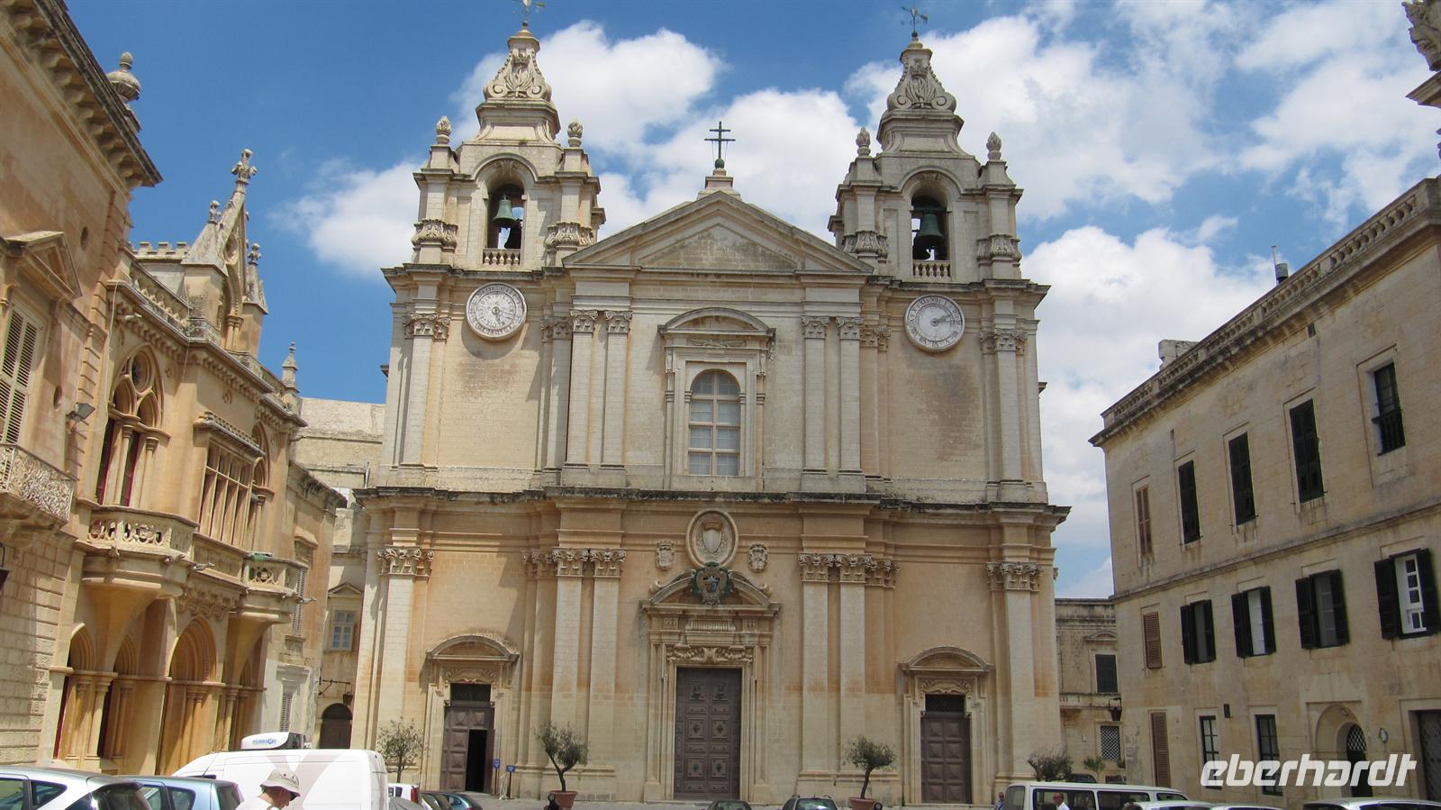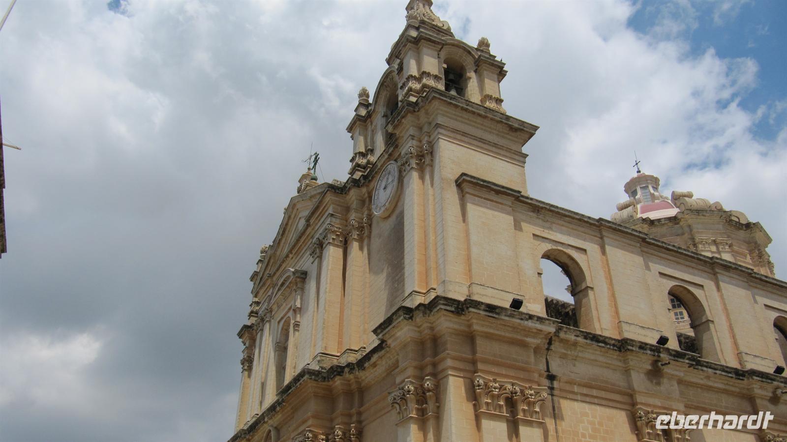 wiederum pünktlich am Mittag ankamen. Mary, örtliche Reiseleiterin, begrüßte uns am Flughafen und bei angenehmen 24°C begannen wir unsere Entdeckungsreise auf der Insel im Mittelmeer. Unsere Fahrt führte uns zunächst nach Mdina in die alte Hauptstadt der Insel. Wir spazierten durch die engen Gassen der Stadt, welche uns wie eine große Filmkulisse mit ihren prächtigen Palästen und schmucken Häusern vorkam. Mary erläuterte uns die Geschichte der Stadt und wir besuchten die Peter -und Pauls-Kathedrale und das dazugehörige Museum. Die Kathedrale ist reich mit Malereien und Plastiken geschmückt. Im Museum sahen wir wertvolle Gemälde und Kunstgegenstände. Anschließend fuhren wir nach Rabat zur Grotte des Heiligen Paulus. Hier sahen wir ebenfalls die Kirche und die unterirdische Kapelle. Nun ging es weiter zu den Klippen von Dingli von wo sich uns ein atemberaubender Blick über die Steilküste auf das Meer bot. Am späten Nachmittag erreichten wir unser 4-Sterne-Hotel „St. Antonio“ in der St.-Paul-Bucht. Wir bezogen unsere großzügigen Zimmer mit herrlichem Blick über die Bucht. Nach etwas Zeit zum Erholen trafen wir uns zum Abendessen im Restaurant, wo wir aus einem reichhaltigen Buffet wählen durften und den Tag gemütlich ausklingen ließen.