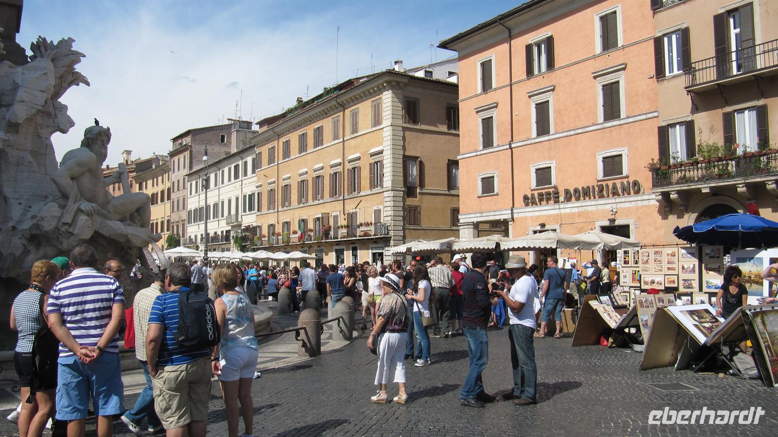 Reiseleiterin erwartete uns bereits und es ging sofort zum ersten Höhepunkt in den Vatikanstaat zum Petersplatz und zum Petersdom. Nach den erforderlichen Sicherheitskontrollen betraten wir den Dom. Dieser wurde durch Michelangelo mit reichem Figurenschmuck und Gemälden gestaltet. Wir waren beeindruckt von der Größe des Bauwerkes mit seinen vielen Nebenkapellen. Da Sonntag war fanden einige Gottesdienste statt. Anschließend kehrten wir auf den Petersplatz zurück, einem der bedeutendsten Plätze der Welt. Nun führte uns unsere Tour vorbei am Forum Romanum weiter zum Koloseum. Dieses antike Bauwerk besichtigten wir nur von außen und Alexandra erläuterte uns sehr ausführlich, wie in der Antike hier Gladiatorenkämpfe und andere Veranstaltungen der Römer stattfanden. Nach soviel interessanter Geschichte benötigten wir erstmal eine Stärkung. Im netten kleinen Restaurant „Napul’e‘“ nahmen wir ein vorzügliches Mittagessen mit echt italienischen Spezialitäten, wie Lasagne und Tiramisu ein. Am Nachmittag erkundeten wir die Stadt zu Fuß. Wir stiegen die Spanische Treppe hinab, bestaunten den Trevi-Brunnen und spazierten durch die engen Gassen und barocken Plätze bis zum Panteon. An jeder Ecke findet man in Rom Zeugen der Jahrtausende währenden Geschichte und ein ganzes Leben reicht nicht aus, diese alle zu besichtigen. Fasziniert von dieser Stadt kehrten wir am späten Nachmittag zurück und bei einigen stand der Entschluss fest: Rom ist eine eigene Reise wert. Am Abend legte unser Schiff ab und nahm Kurs auf Livorno in der Toskana.