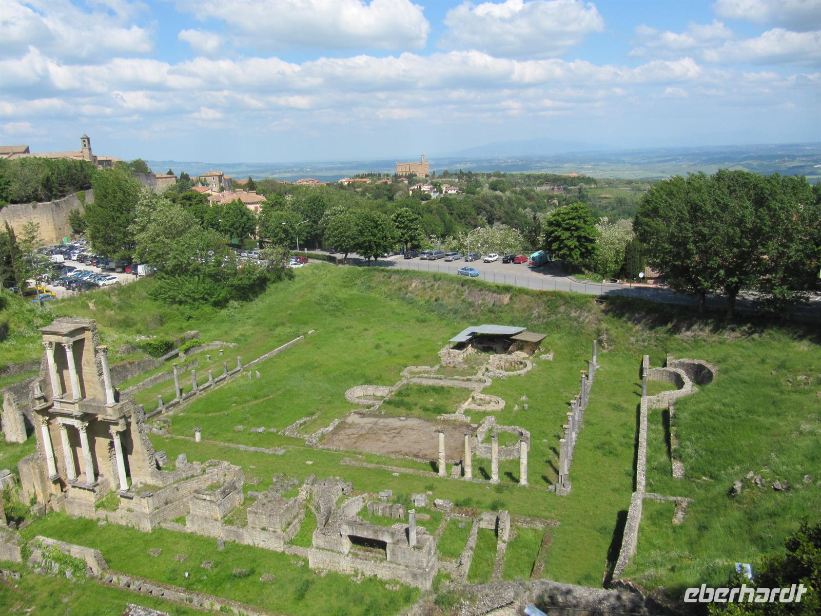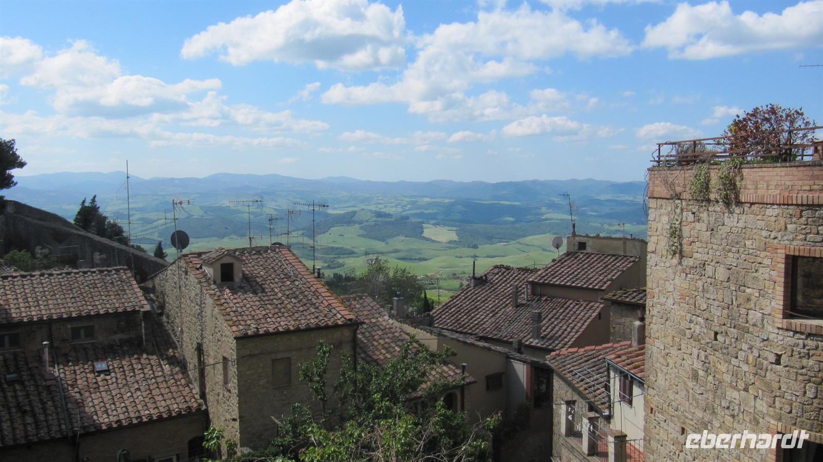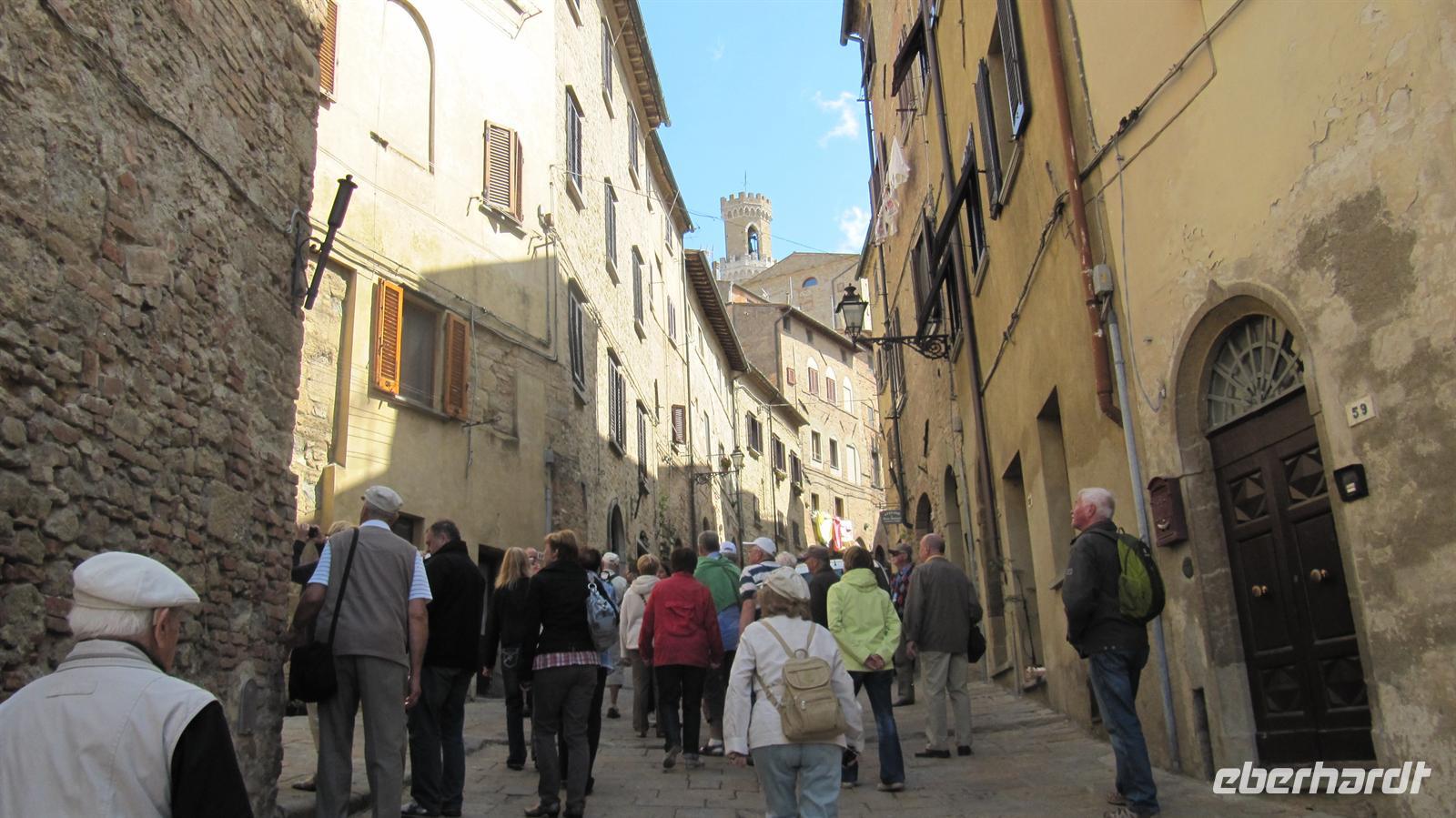 Wir unternahmen einen eigens für unsere Eberhardt-Gruppe organisierten Ausflug in die Toskana. Anna, unsere Reiseleiterin für den heutigen Tag, begrüßte uns am Hafeneingang und unsere Entdeckungstour konnte beginnen. Zunächst brachte uns Rosetta, unsere Buschauffeurin, nach Volterra. Diese wunderschöne mittelalterliche Stadt thront hoch auf einem der vielen Hügel der Toskana. Schon von weitem grüßten uns die Gebäude der Stadt. Wir spazierten zum Hauptplatz, wo Anne uns die Geschichte der Stadt erzählte und besuchten dann die Kirche und die zweitälteste Taufkirche Italiens. Durch die engen Gassen spazierten wir und Anna machte uns immer wieder auf die Spuren der Etrusker aufmerksam, welche sich an vielen Punkten der Stadt fanden. Herrlich war der Ausblick über die sanfte hügelige Landschaft der Toskana von der