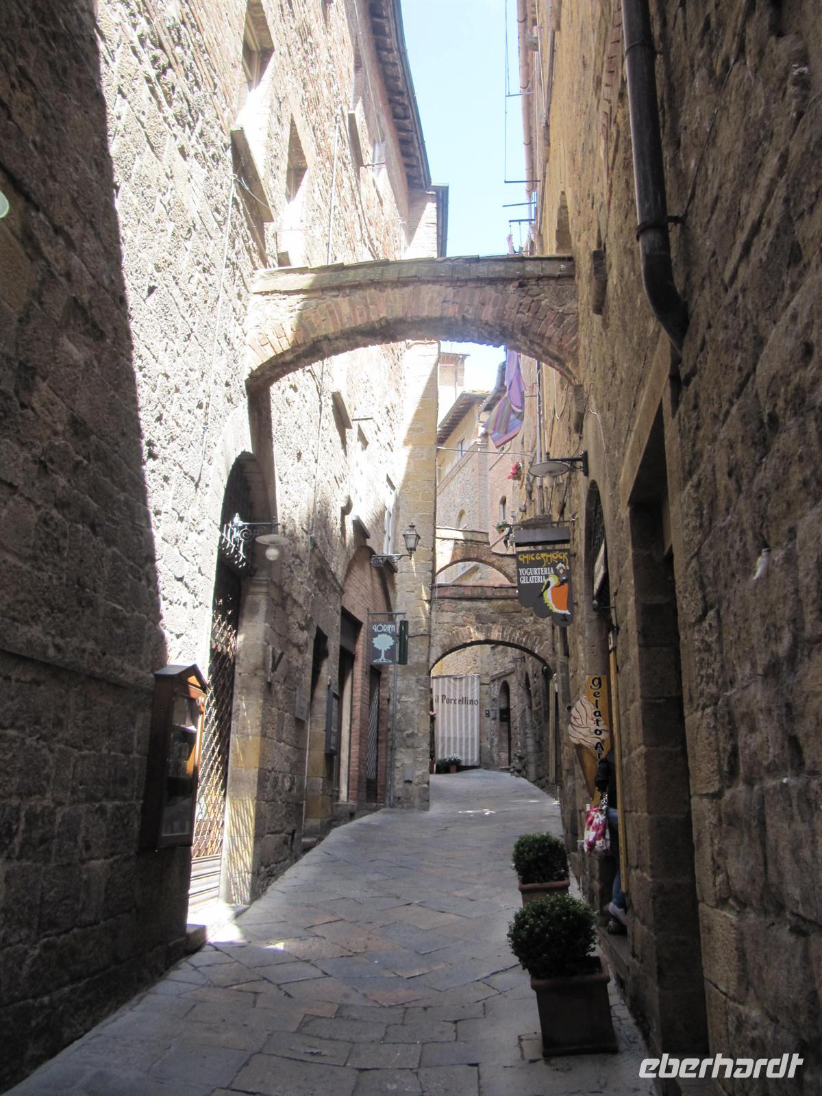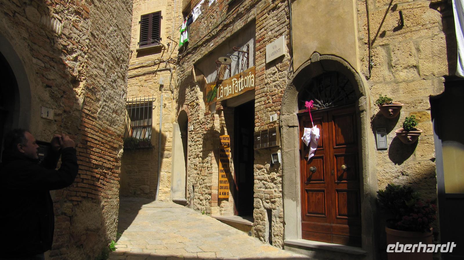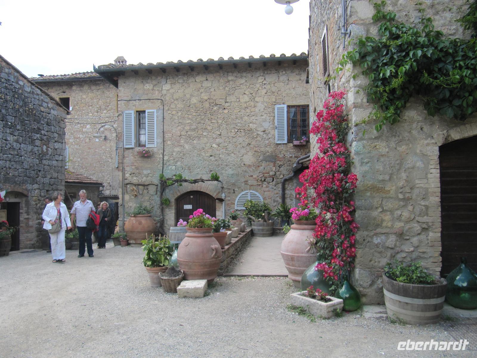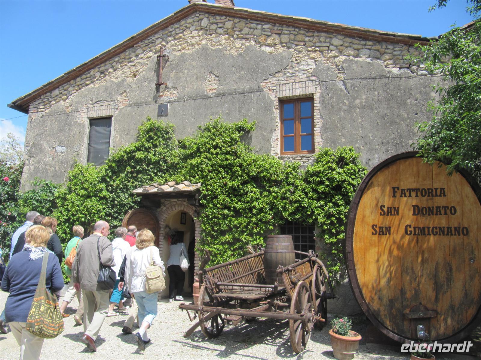 Stadtmauer aus. Ein ganz besonderer Schatz wurde in den achtziger Jahren des zwanzigsten Jahrhunderts eher zufällig beim geplanten Bau eines Fußballstadions entdeckt: die Überreste eines römischen Amphitheaters und einer römischen Thermenanlage. Nun plagte uns der kleine Hunger und wir fuhren in das Weingut „Fattoria San Donato“. Bei gutem italienischem Wein und köstlichen hausgemachten Spezialitäten, wie Wildschweinwurst und Schinken, Ziegenkäse und getoastetes Brot mit Olivenöl stärkten wir uns.