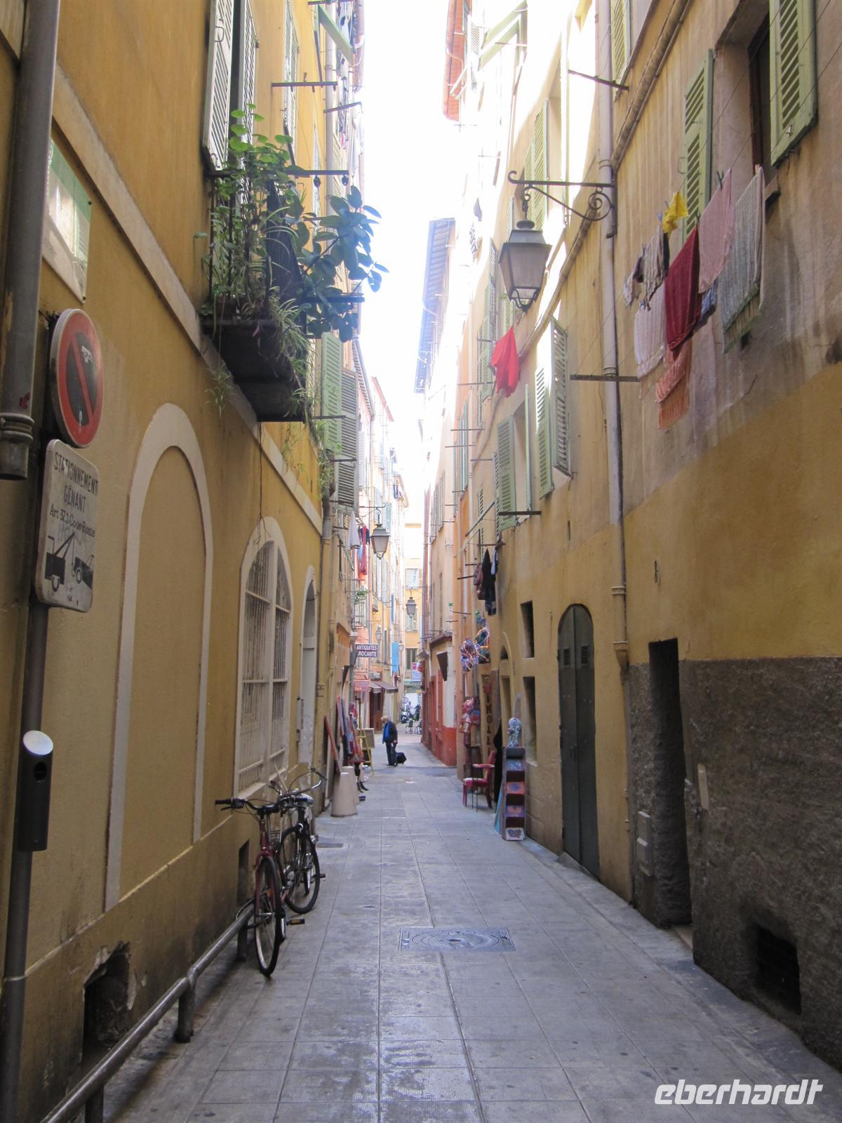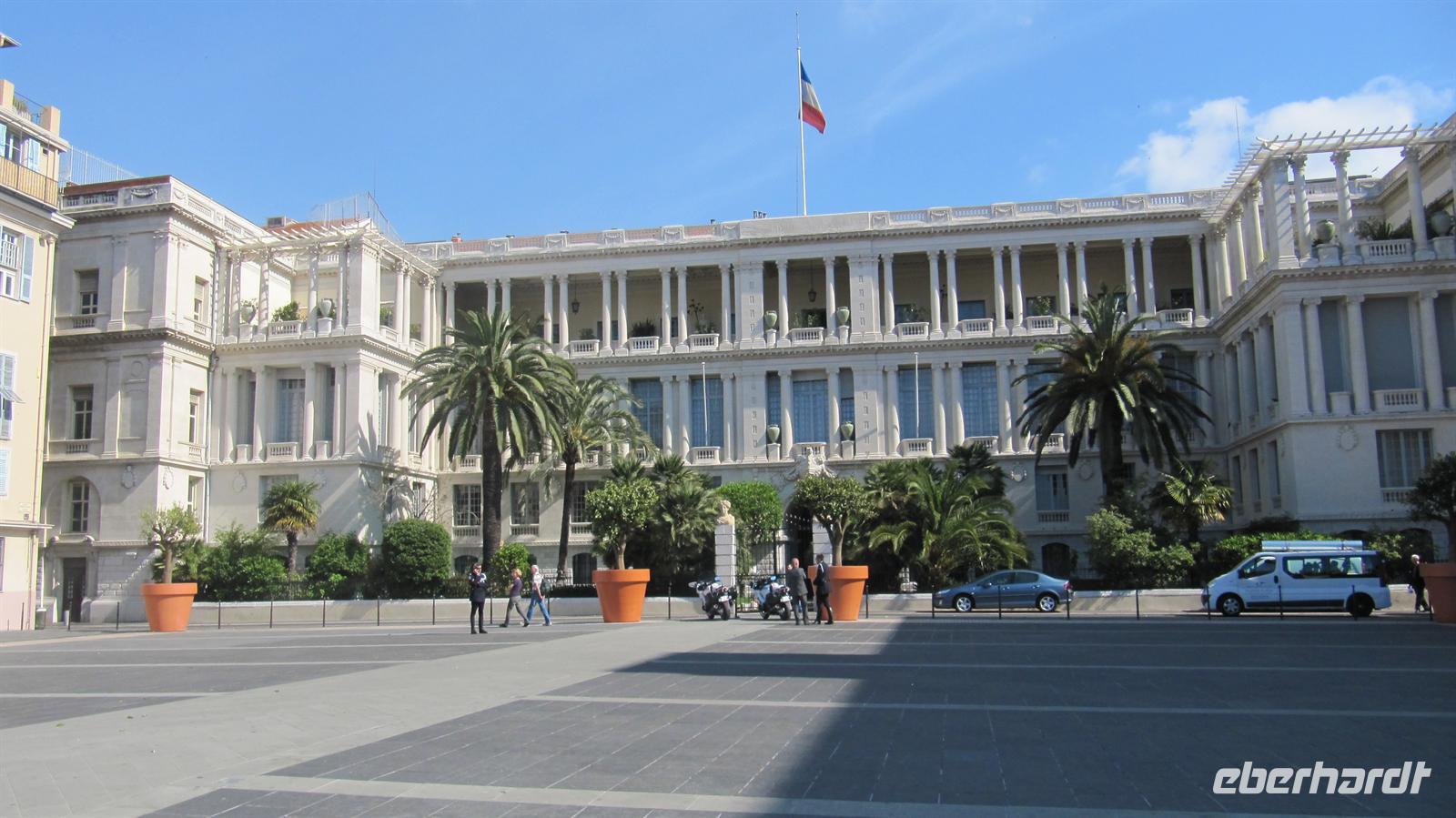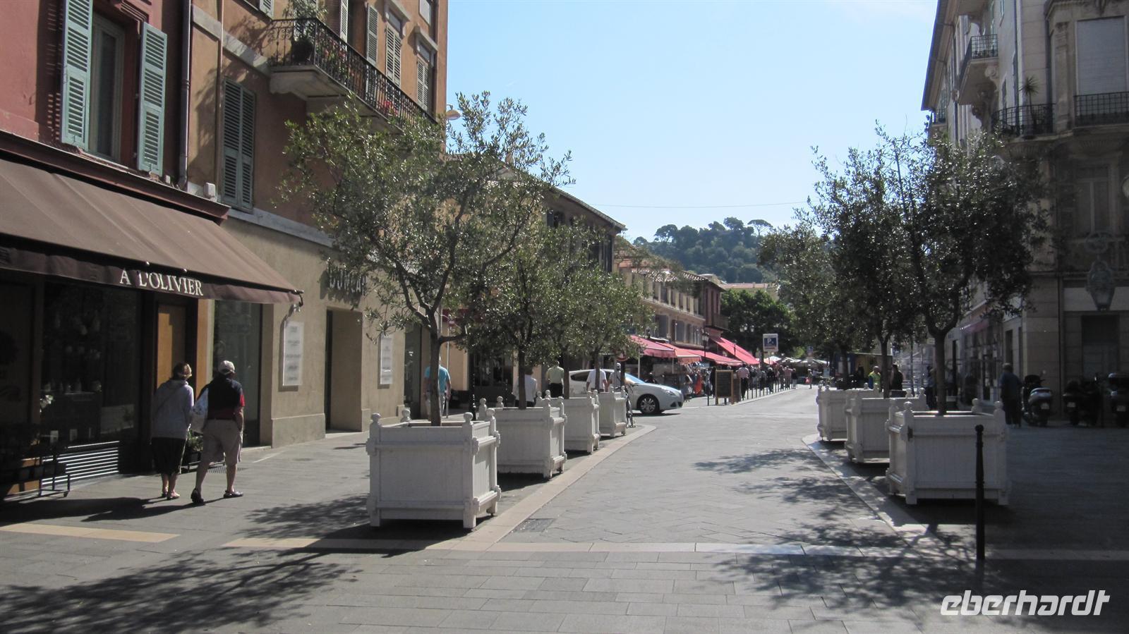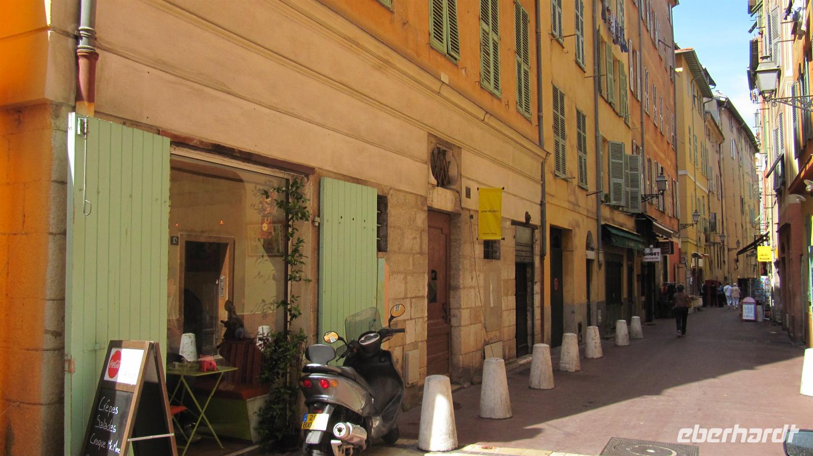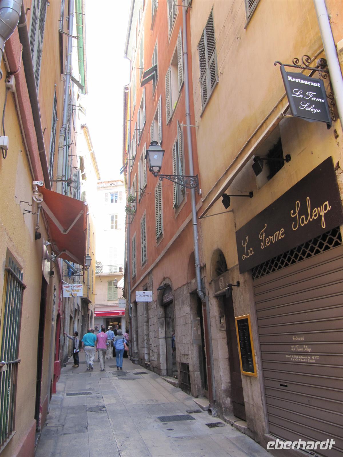 Gespannt begannen wir mit Jutta, unsrer örtlichen Reiseleiterin, unseren Eberhardt-Ausflug. Zunächst fuhren wir auf der mittleren Küstenstraße nach Nizza, welches nur 18 Kilometer von Monaco entfernt liegt. Entlang der Küste ziehen sich drei Küstenstraßen, die untere, die mittlere und die obere Straße. Wir wählten also die mittlere und uns boten sich herrliche Ausblicke über die Buchten und auf die Villen einiger Prominenter, wie zum Beispiel die Villa der Familie Rotschild