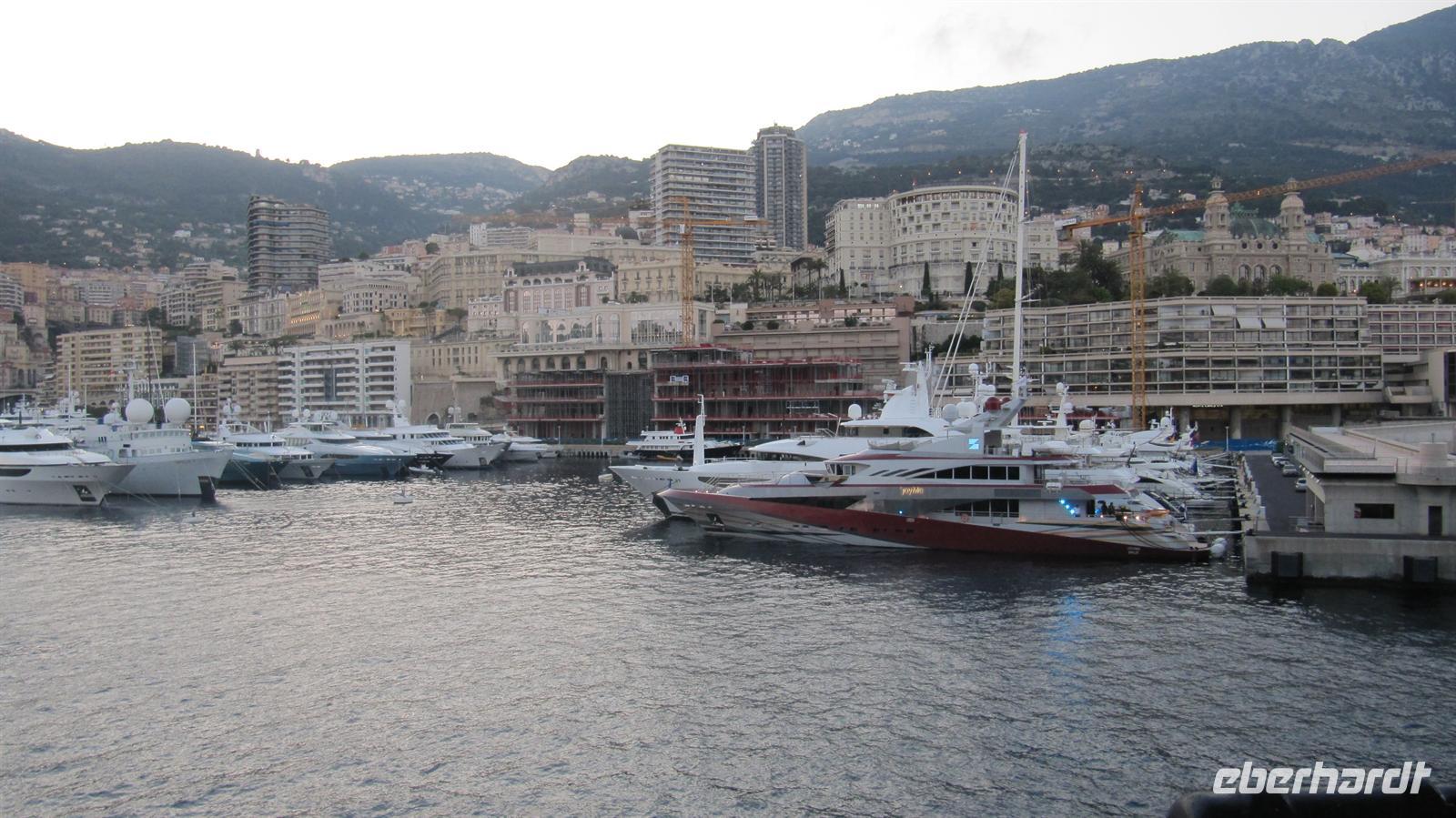 Nach einer kleinen Stärkung mit einem leckeren Pannini brachte uns der Bus zum Stadion. Auf Grund der Tatsache, dass in 10 Tagen der Formel-1-Grand Prix in Monaco stattfindet, waren bereits große Teile der Stadt präpariert und teilweise abgesperrt, so dass wir den Linienbus bis zum Casino nehmen mussten. Aber während wir den Weg zum Casino nahmen, benutzten wir ein kurzes Stück die Rennstrecke. Wir können also behaupten, dass wir auf der Strecke gelaufen sind, die Vettel, Schumacher und die anderen Rennfahrer mit ihren Rennwagen natürlich in einem ganz anderen Tempo durchfahren. Auch vom Casino aus bot sich uns ein wundervoller Blick über den Hafen und die Stadt. Nun sahen wir, wie die Monegassen und viele Prominente im Steuerparadies leben. Am späten Nachmittag kehrten wir zu unserem schwimmenden Zuhause zurück.