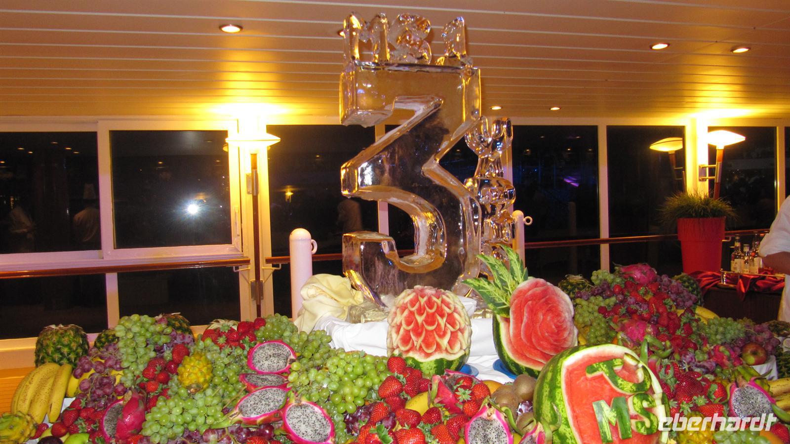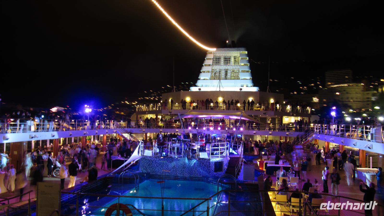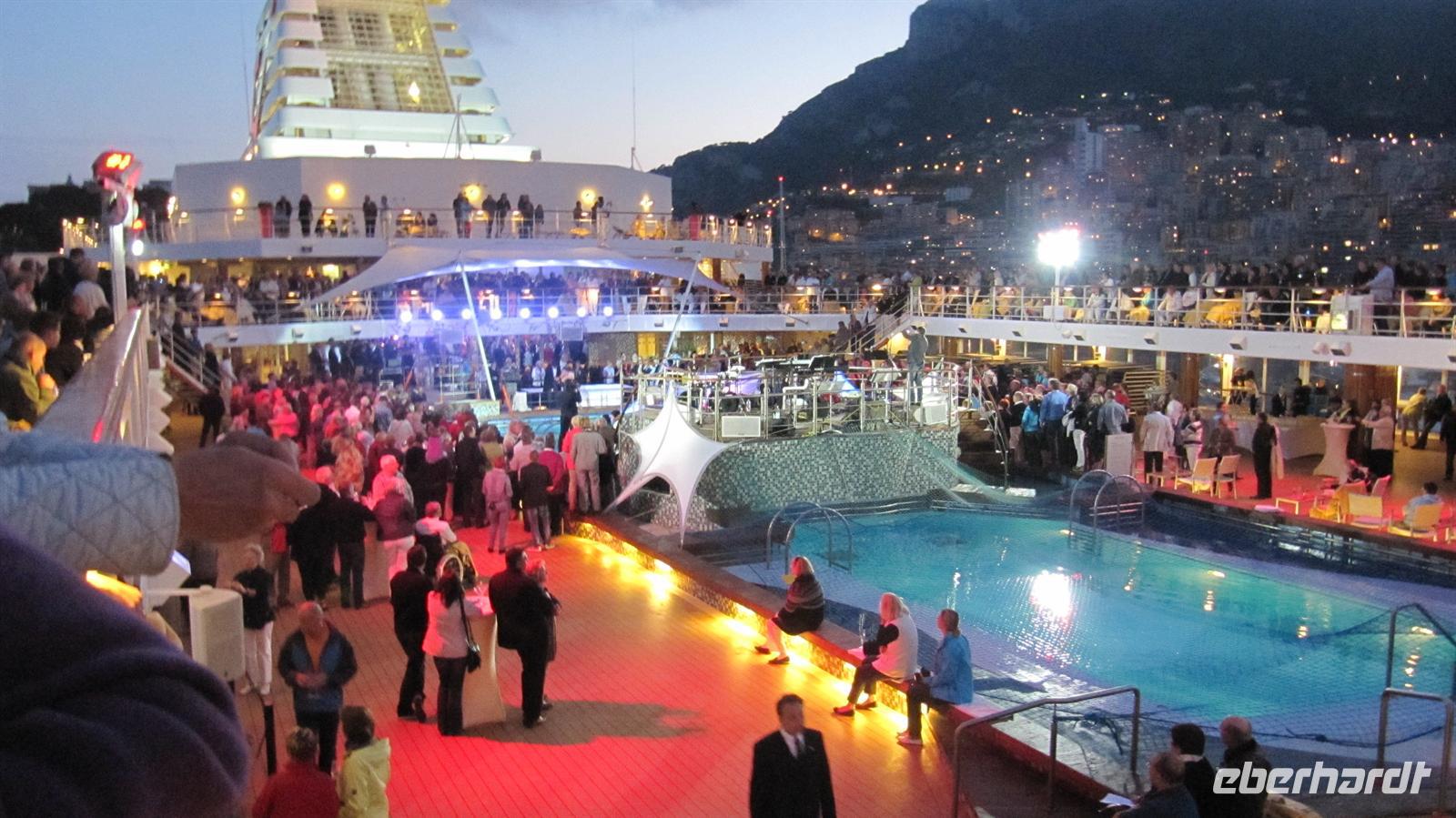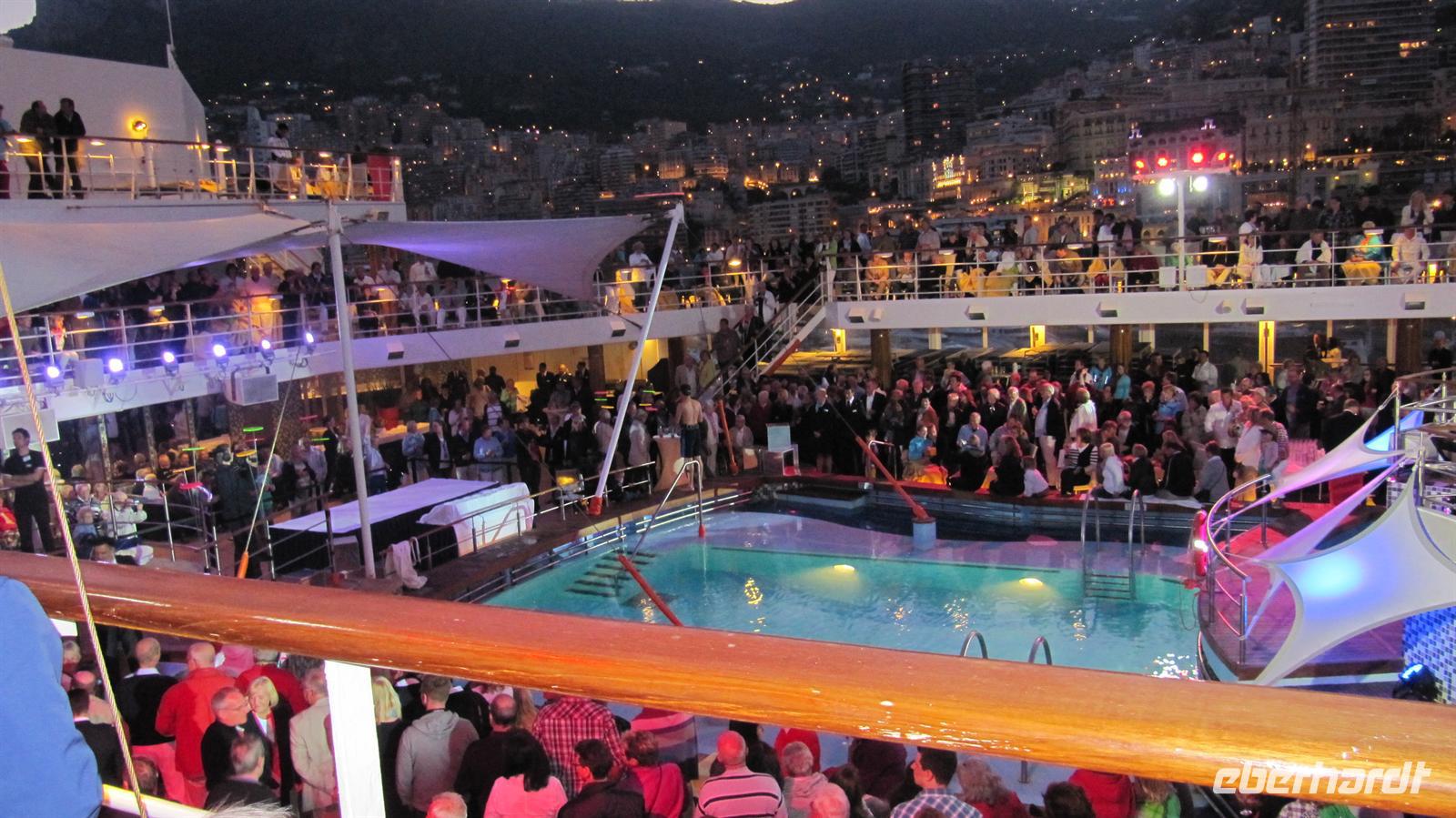 Am Abend erwartete uns die Geburtstagsparty von „Mein Schiff 1“, denn das Schiff feierte seinen 3.Geburtstag. Mit Sekt stießen alle Passagiere und die Crew auf das Geburtstagskind an und natürlich durfte eine wunderschöne Torte auch nicht fehlen. Ein faszinierendes Feuerwerk bildete den Höhepunkt der Party, bevor das Kommando zum Auslaufen durch den Kapitän gegeben wurde. Wir verließen den kleinen Staat und genossen ein letztes Mal den Blick auf die beleuchtete Stadt.
