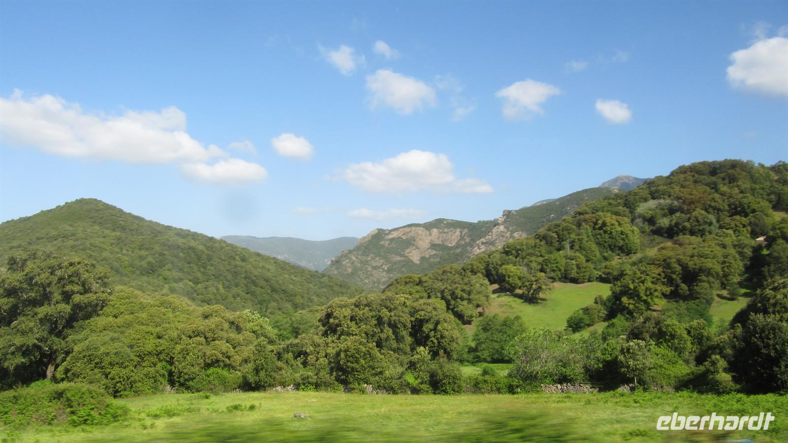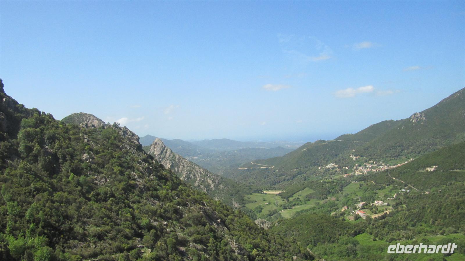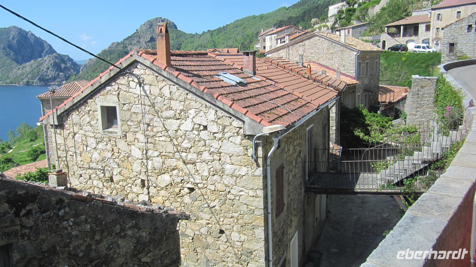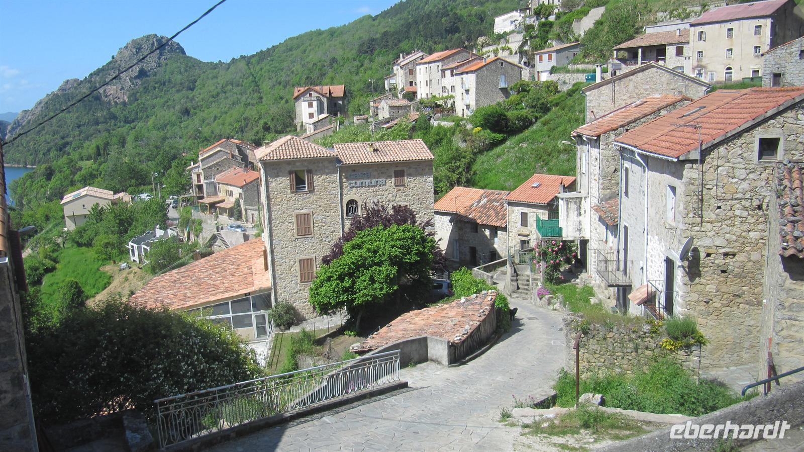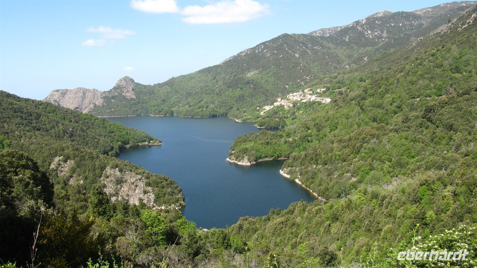 Können zu beweisen. Über eine ganz enge Serpentinenstraße, die gerade so breit war, dass unser Bus durch passte, führte uns die Route hinauf auf 800 Meter zu einem Aussichtspunkt hoch über dem Tola-Stausee. Die Landschaft mit den schroffen, bewaldeten Bergen und dem See war atemberaubend. Anschließend konnten wir in einer kleinen Taverne noch korsischen Wein und korsische Spezialitäten, wie Wildscheinschinken und -wurst und Schafskäse probieren, bevor wir zum Schiff zurückkehrten.