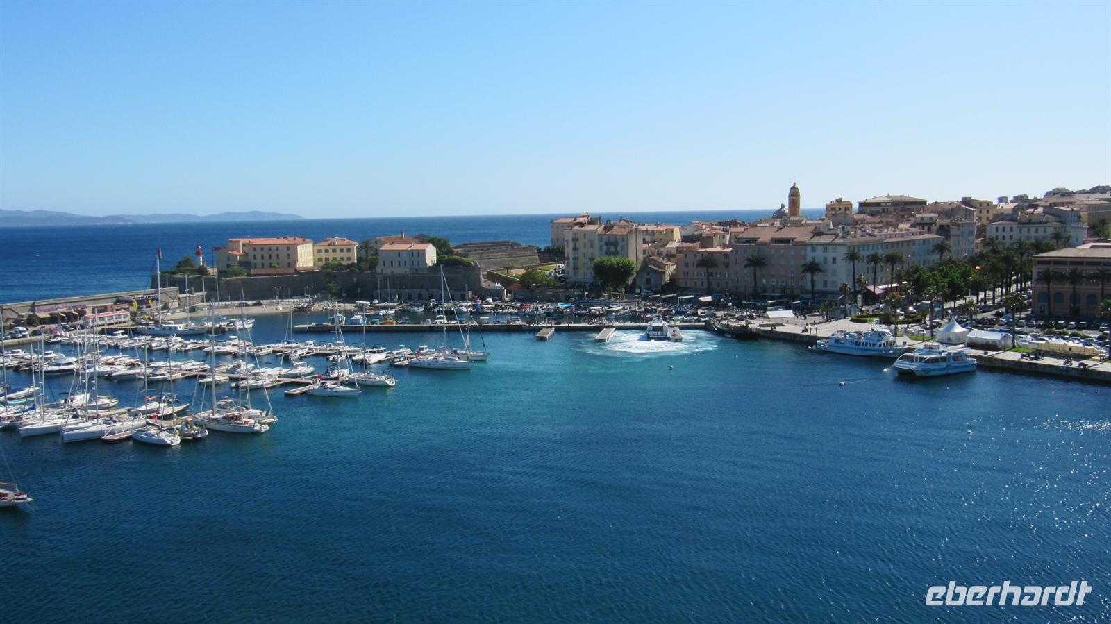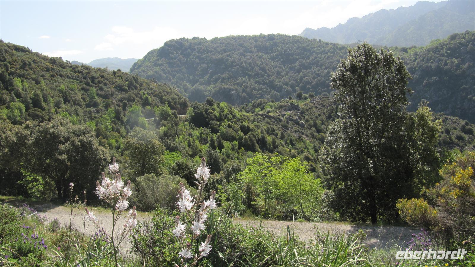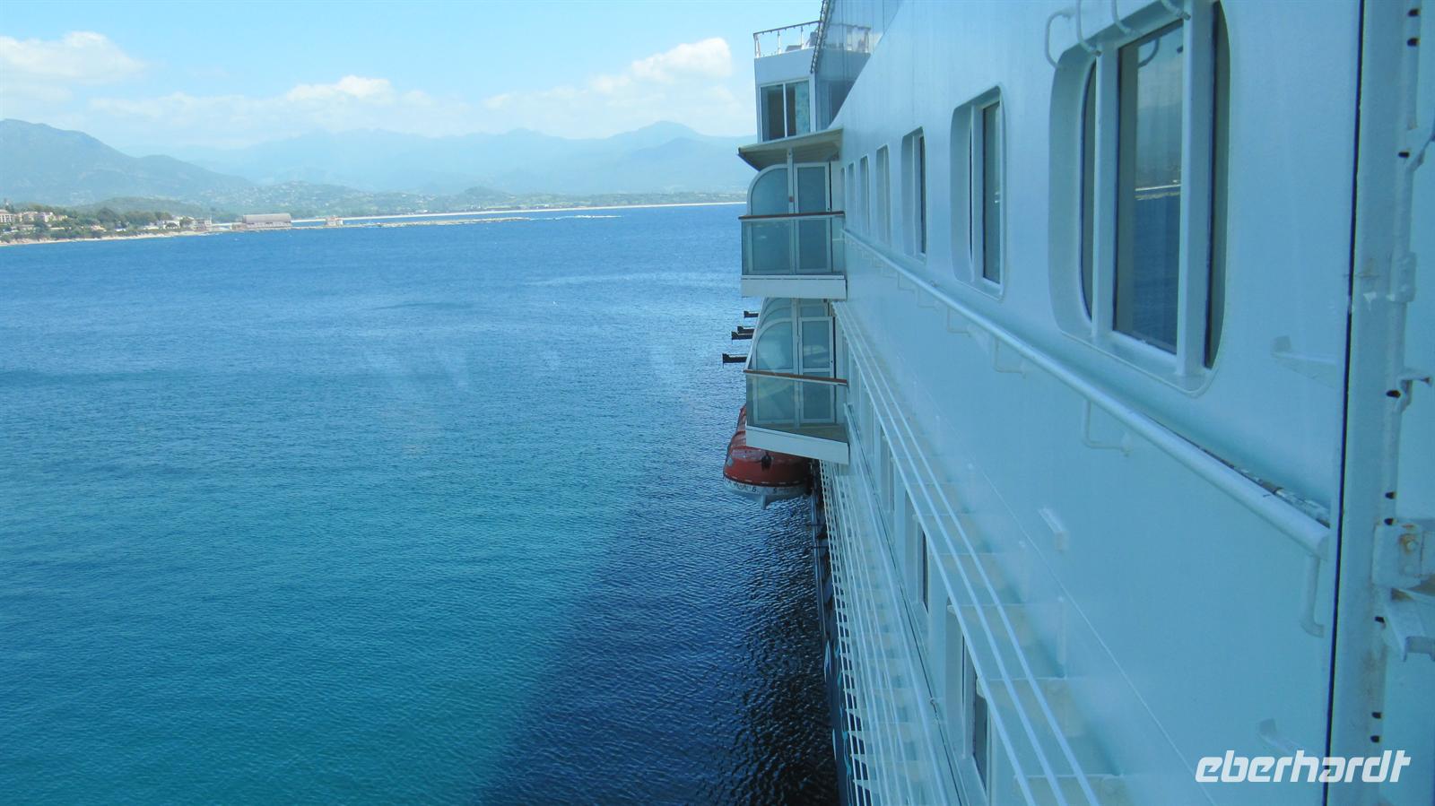 Ajaccio, die korsische Geburtsstadt Napoleons war unser nächster Hafen, welchen wir am frühen Morgen erreichten. Der meisten Gäste unserer Gruppe hatten den Ausflug zur Prunelli-Schlucht gebucht und so konnten wir auch gemeinsam in einem Bus fahren. Der Halbtagesausflug führte uns zunächst durch die herrliche Landschaft, welche mit üppiger Vegetation überzogen war, auf ca. 600 Meter Höhe zum Eingang der Schlucht. Nach einem kurzen Fotostopp, bei dem wir auch die gelb blühenden Ginster, blauen wilden Lavendel und die rosa und weißen Zista-Rosen bewundern konnten, hieß es für den Busfahrer nun höchste Konzentration und volles fahrerisches