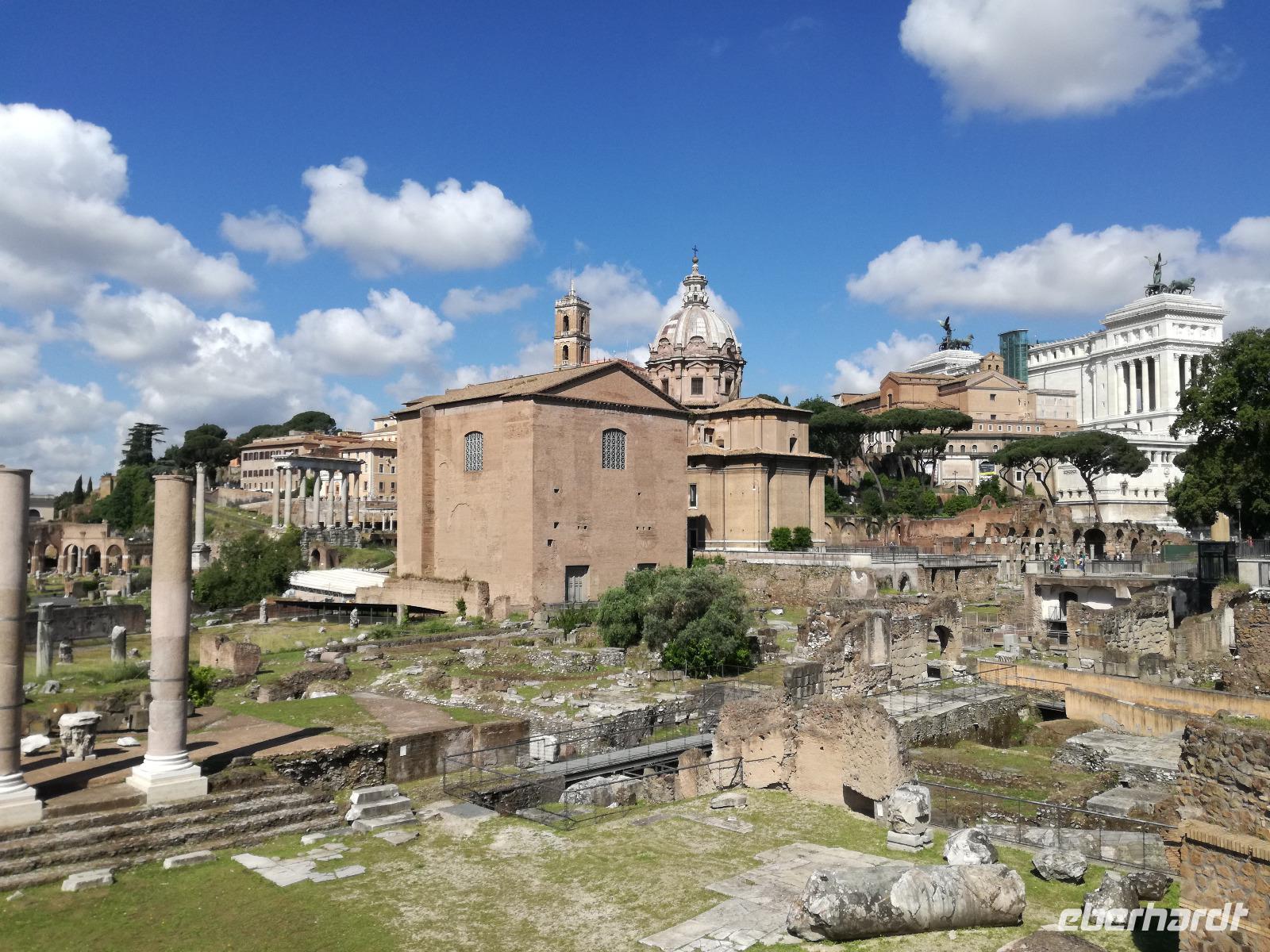 Heute ist es soweit! Unsere Reise in Richtung Süden beginnt am Flughafen Dresden - bei Schmuddelwetter und kühlen Temperaturen freuen wir uns auf sonnige Aussichten und mediterranes Klima. Um 08.00 Uhr treffen wir uns alle am Flughafen Dresden, es werden auch keine weiteren Gäste zu uns stoßen, da die komplette Gruppe ab Dresden fliegt - so lernen wir uns alle von Anfang an kennen. 3 Gäste hatten ein wenig Verspätung, dies ist allerding dem Verkehr geschuldet gewesen. Aber nach kurzer Wartezeit waren wir dann vollständig und wir konnten am Gate auf unseren Flug nach München warten. Pünktlich 09.40 Uhr flogen wir los. In München angekommen hatten wir noch etwas Zeit bis unser Weiterflug nach Rom startet. Nach 2 mal Gate wechseln können wir nun auch endlich boarden und nach ca. 1 Stunde 10 Minuten landen wir im etwas bewölkten Rom. Unsere Reiseleiterin Renata empfing uns am Gepäckband und nachdem alle ihre Koffer (teilweise auch Dank Teamarbeit) gefunden hatten gingen wir zum Bus, der uns zu unserem Hotel in der Innenstadt, gleich in der Nähe des Hauptbahnhofs Termini brachte. Wir haben ein wenig Zeit um uns frisch zu machen und kurz zu entspannen bevor wir uns 18.30 Uhr in der Lobby wieder trafen. Zusammen sind wir dann zur Bushaltestelle gelaufen um ins Szeneviertel Trastevere zum Restaurant zu fahren. Nach einer abenteuerlichen und sehr eingeengten Fahrt kamen wir endlich an unserem Ziel an und wurden in einen noch engeren Gastraum geführt - naja, so lernen wir uns wenigstens direkt alle aus nächster Nähe kennen. Bei leckerem und reichlichem Essen, Wein und sogar einer kleinen musikalischen Einlage lassen wir den ersten Abend gemeinsam ausklingen und freuen uns schon auf die nächsten Tage. Später am Abend sind wir dann wieder mit dem Bus zurück zum Hotel gefahren - diesmal war die Fahrt auch ein wenig entspannter.