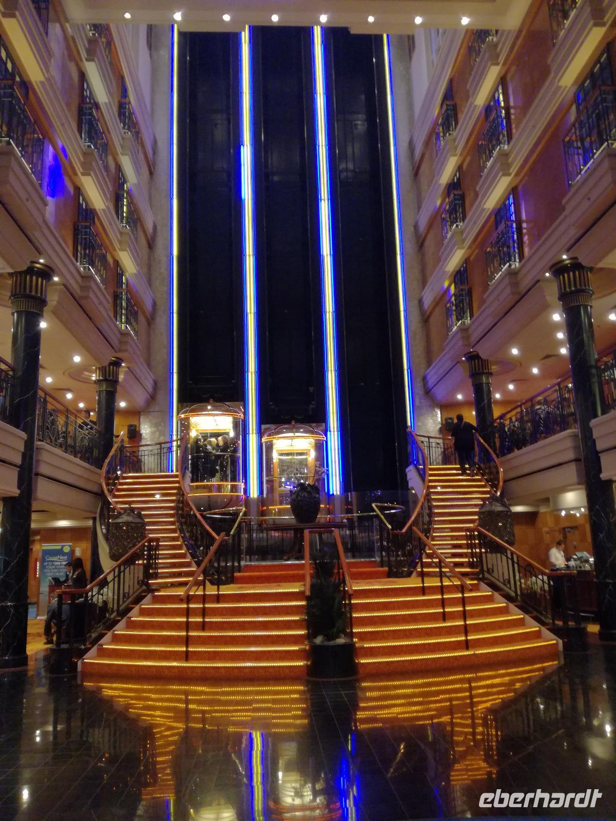 Als wir heute Morgen an Deck frühstückten, merkten wir dass es hier auf Sizilien (zumindest morgens) ein wenig kühler ist als auf den Inseln der letzten Tage. Nunja, wir hatten aber ja alle etwas wärmeres dabei und konnten das noch verkraften. Also sind einige von uns heute Vormittag mit Jacke in die Stadt gelaufen, diese stellte sich heraus, war überflüssig denn es wurde schnell recht warm. Wir entschieden uns, als wir auf dem Domplatz standen, eine Rundfahrt mit einer kleinen Bimmelbahn zu machen. Diese fuhr durch die Stadt und wir konnten uns einen Überblick verschaffen. Bei einem kurzem Fotostopp hatten wir eine schöne Aussicht und ein tolles Fotomotiv. Später kamen wir wieder am Dom an und warteten, bis die astronomische Uhr 12 schlug, denn dann startete ein Glockenspiel und die Figuren bewegten sich, während das Ave Maria gespielt wurde. Einige von uns blieben danach noch in der Stadt. Am Abend trafen wir uns alle noch einmal in der Maharini Lounge, um die nötigen Abreiseinfos zu besprechen. Danach bin ich noch mit einigen Essen gegangen und wir haben uns die Show Elements im Theater angesehen - eine sehr schöne Show mit Tanz, Akrobatikeinlagen und Magie. Am Ende der Show wurden noch einige Crewmitglieder vorgestellt, die man sonst eher selten zu Gesicht bekommt, wie z.B. die Crew aus der Wäscherei oder dem Maschinenraum. Ein gelungener Abschluss des Tages!