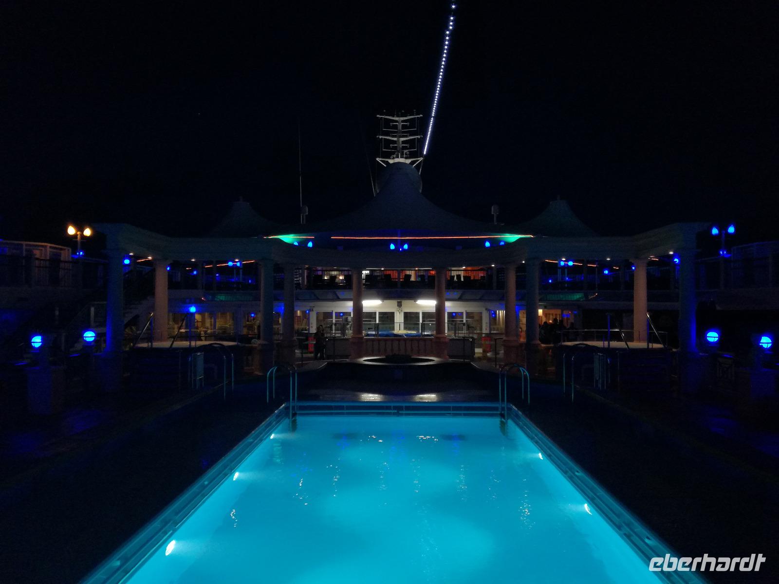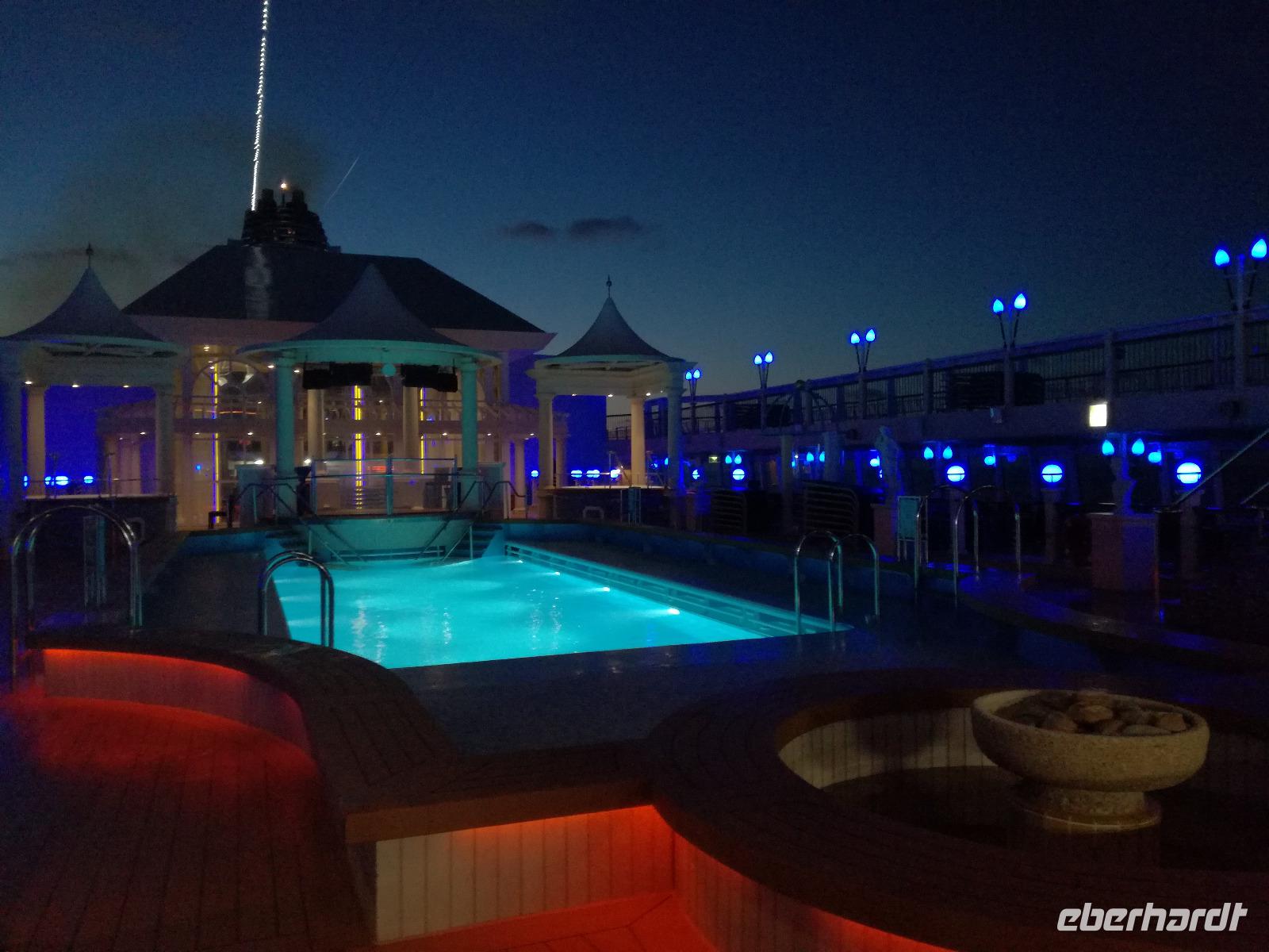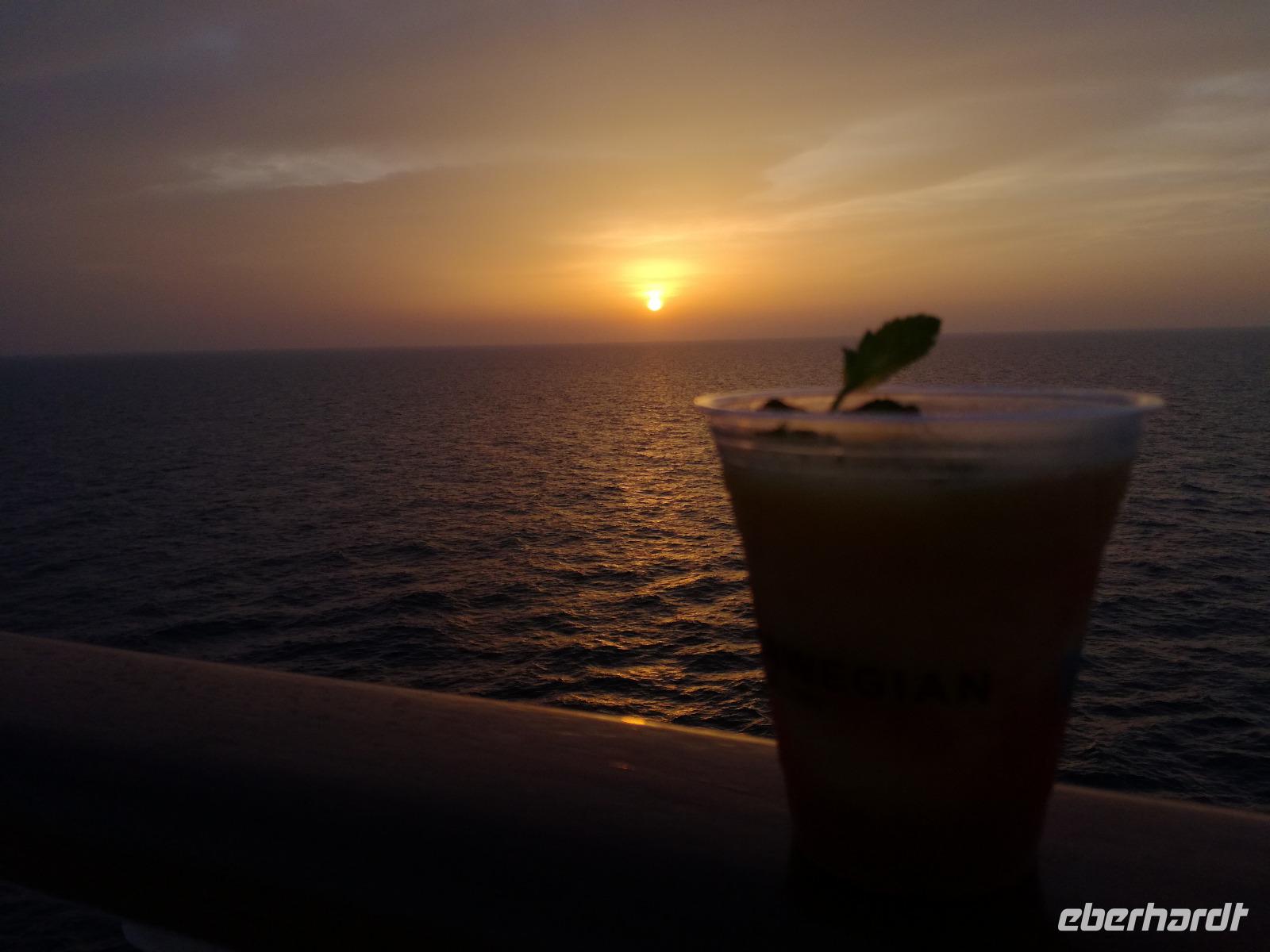 Heute heißt es erst einmal ausschlafen und entspannen, denn wir haben einen Seetag vor uns! Bei einem etwas späteren Frühstück können wir es uns gut gehen lassen und entspannt in den Tag starten. Um 10.30 Uhr trafen wir uns alle zu einem gemeinsamen Schiffsrundgang mit der Gästeservice Managerin und erkundeten die öffentlichen Bereiche des Schiffes um einen Überblick zu erhalten. Später trennten wir uns und genossen alle Annehmlichkeiten und Angebote des Schiffes - ob beim Bingo, Kartenspiel oder einfach nur beim Faulenzen - wir haben uns die Zeit an Bord gut vertreiben können. Der Tag endete mit der Norwegian Night Out - eine Poolparty am Tivoli Pool.