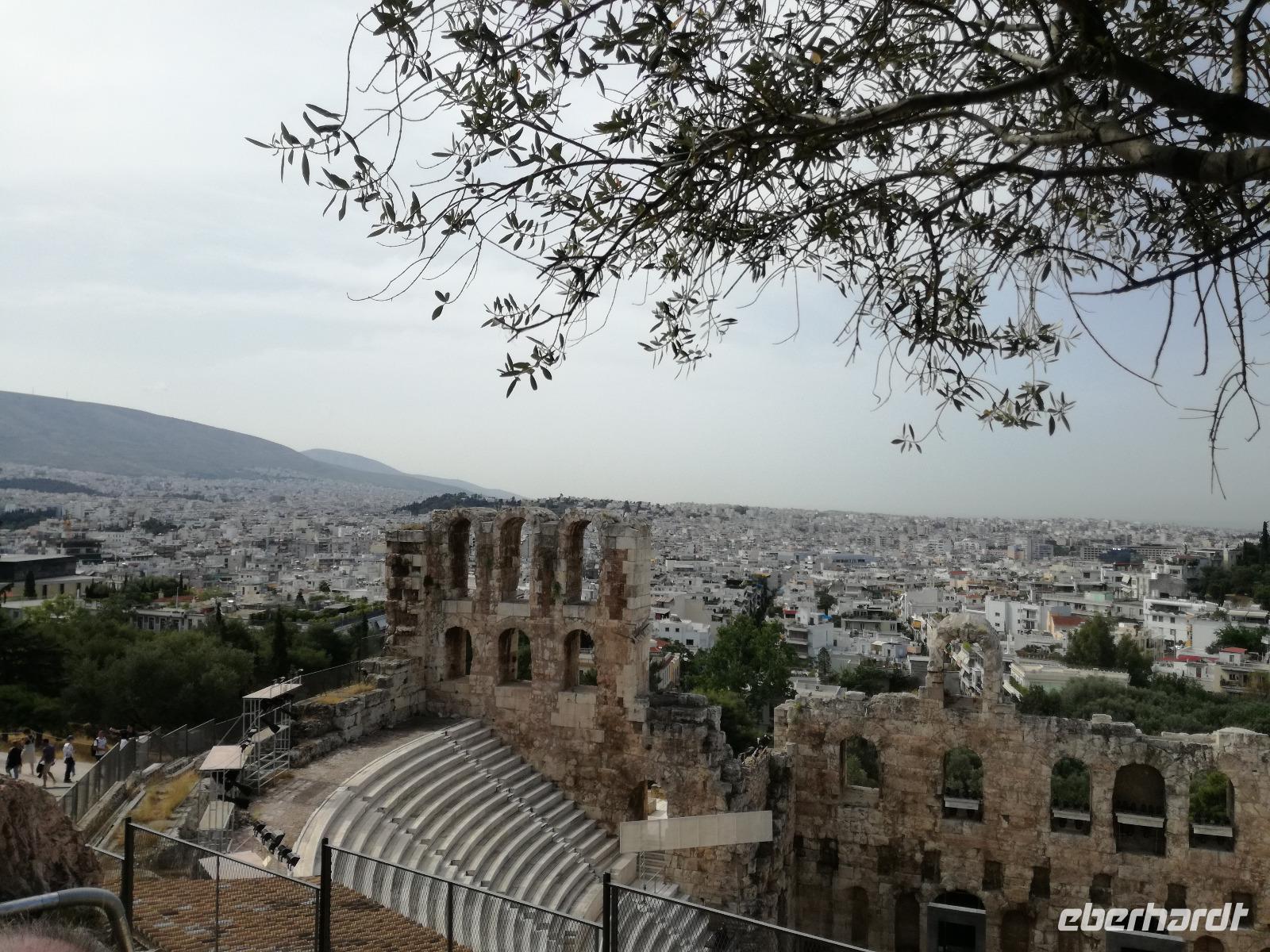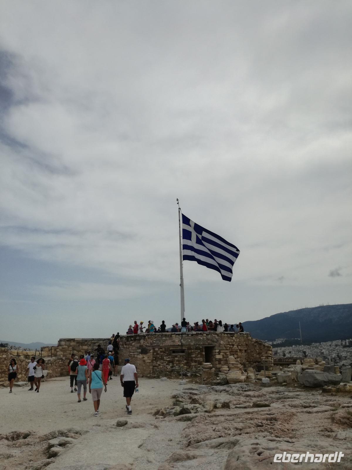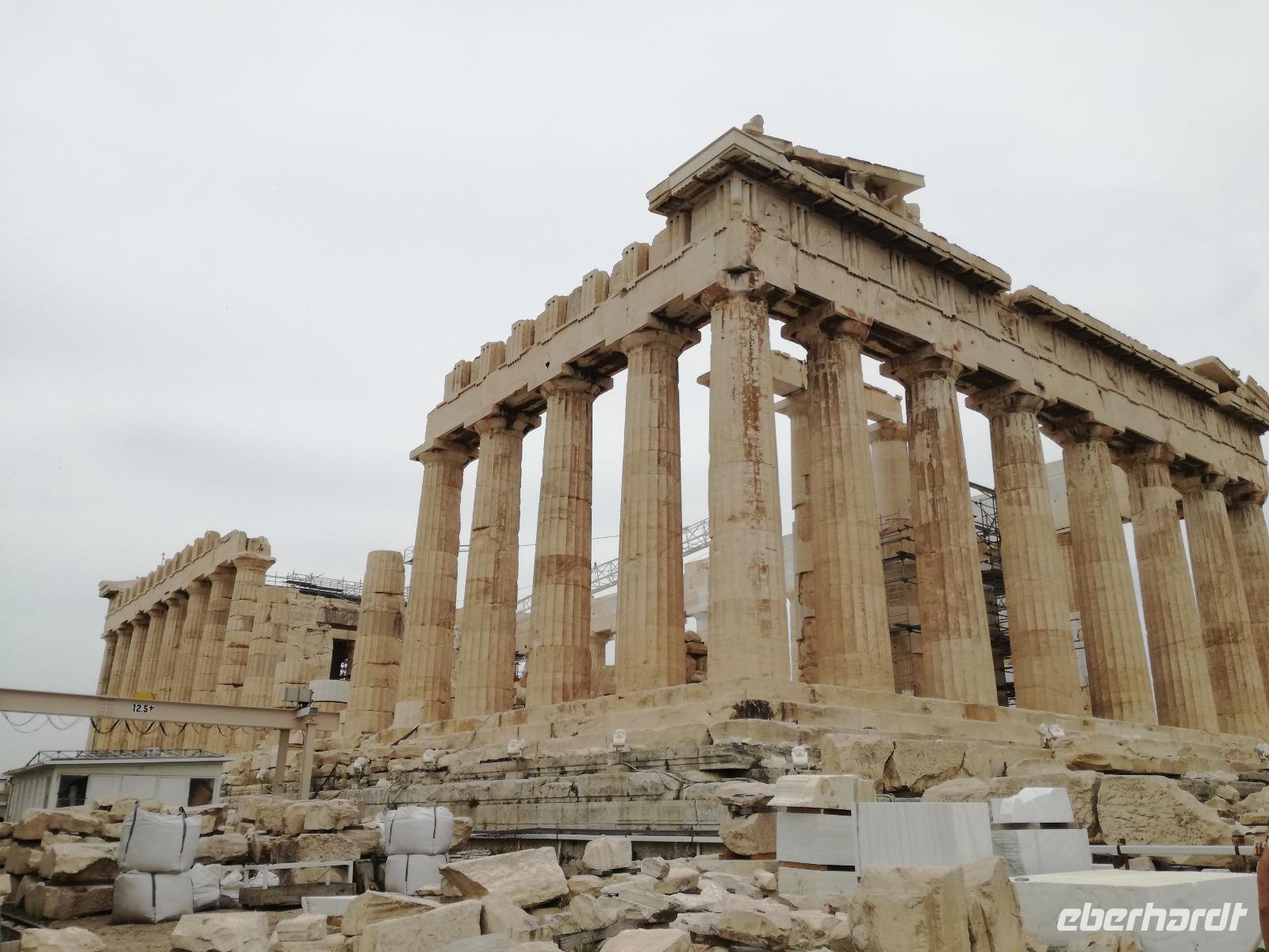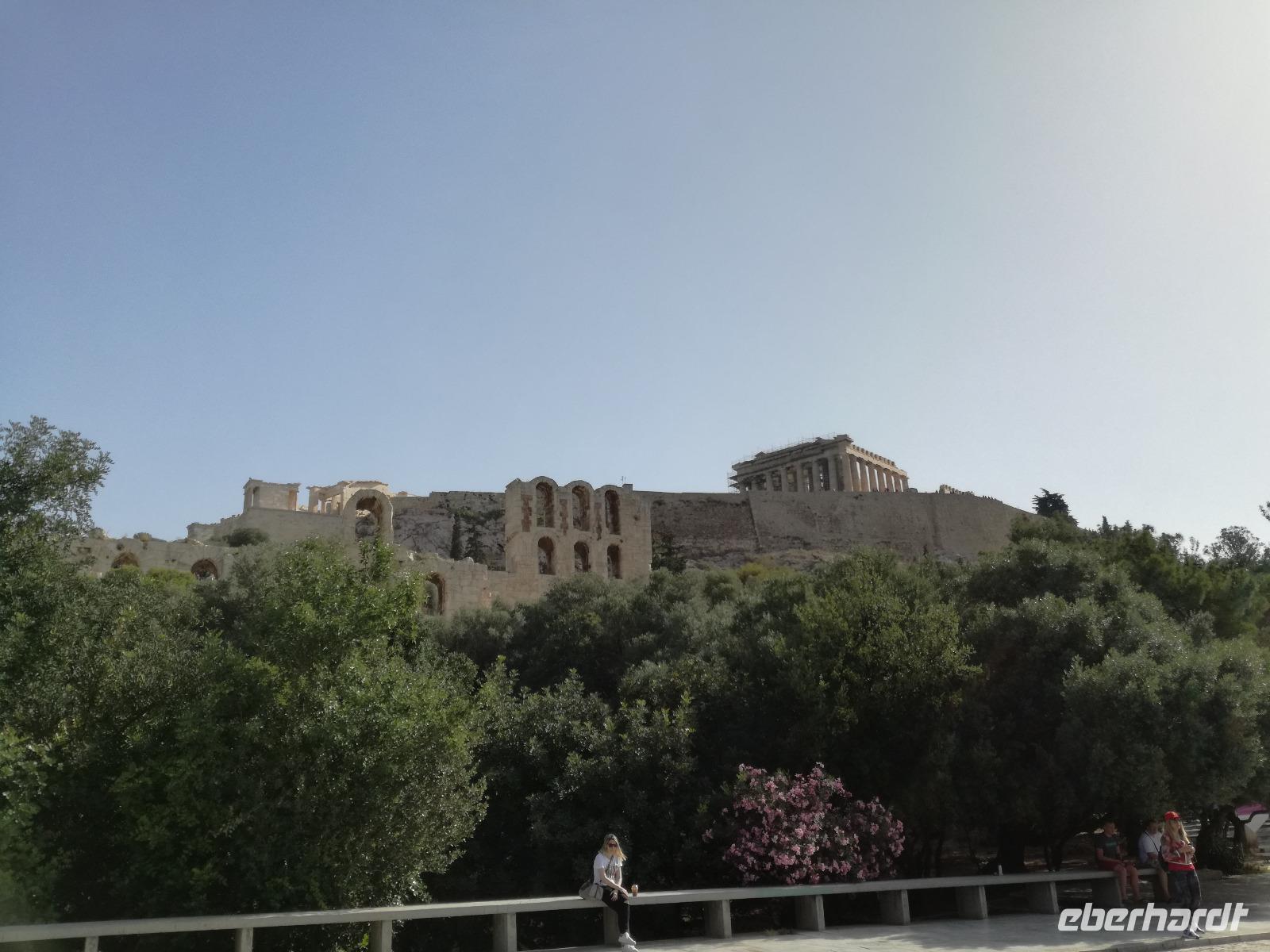 Kalimera in Athen! Bereits sehr früh trafen wir uns im The Cafe auf Deck 7 um gemeinsam von Bord zu gehen und unseren Eberhardt Ausflug zu starten. Erst einmal mussten wir durch das Terminal laufen um aus dem Hafengelände zu kommen. Bei den Bushaltestellen empfing uns dann Anastasia, unsere örtliche Reiseleiterin und wir machten uns auf den Weg nach Athen. Während wir ein wenig durch die Stadt fuhren erklärte uns Anastasia einiges über die alten Ruinen die in der Stadt noch vorzufinden sind und die verschiedenen Stadien, die extra für Olympia gebaut wurden. Später erreichten wir die Innenstadt und liefen hoch zur Akropolis, von wo wir einen wunderschönen Blick über die gesamte Stadt hatten. Nach einer sehr interessanten und ausführlichen Erklärung über die Bauart der Akropolis hatten wir noch eine gute halbe Stunde Zeit um uns selbst auf Spurensuche zu gehen. Danach trafen wir uns alle wieder am Ausgang und liefen in die Altstadt - die Plaka. Nach einer kurzen Führung hatten wir Zeit die Plaka auf eigene Faust zu entdecken und uns bei einem Mittagessen zu stärken. Wir bummelten ein wenig durch die kleine Einkaufsstraße und trafen uns schließlich wieder am vereinbarten Treffpunkt um zurück zum Bus zu laufen, der uns wieder zu unserem Schiff brachte. Der restliche Nachmittag und Abend stand uns zur freien Verfügung. So endete wieder einmal ein wunderschöner aber auch anstrengender Tag auf unserer Reise.