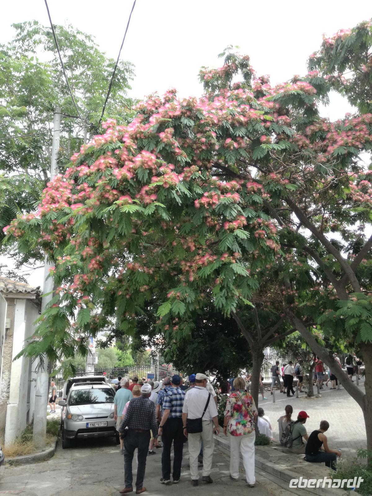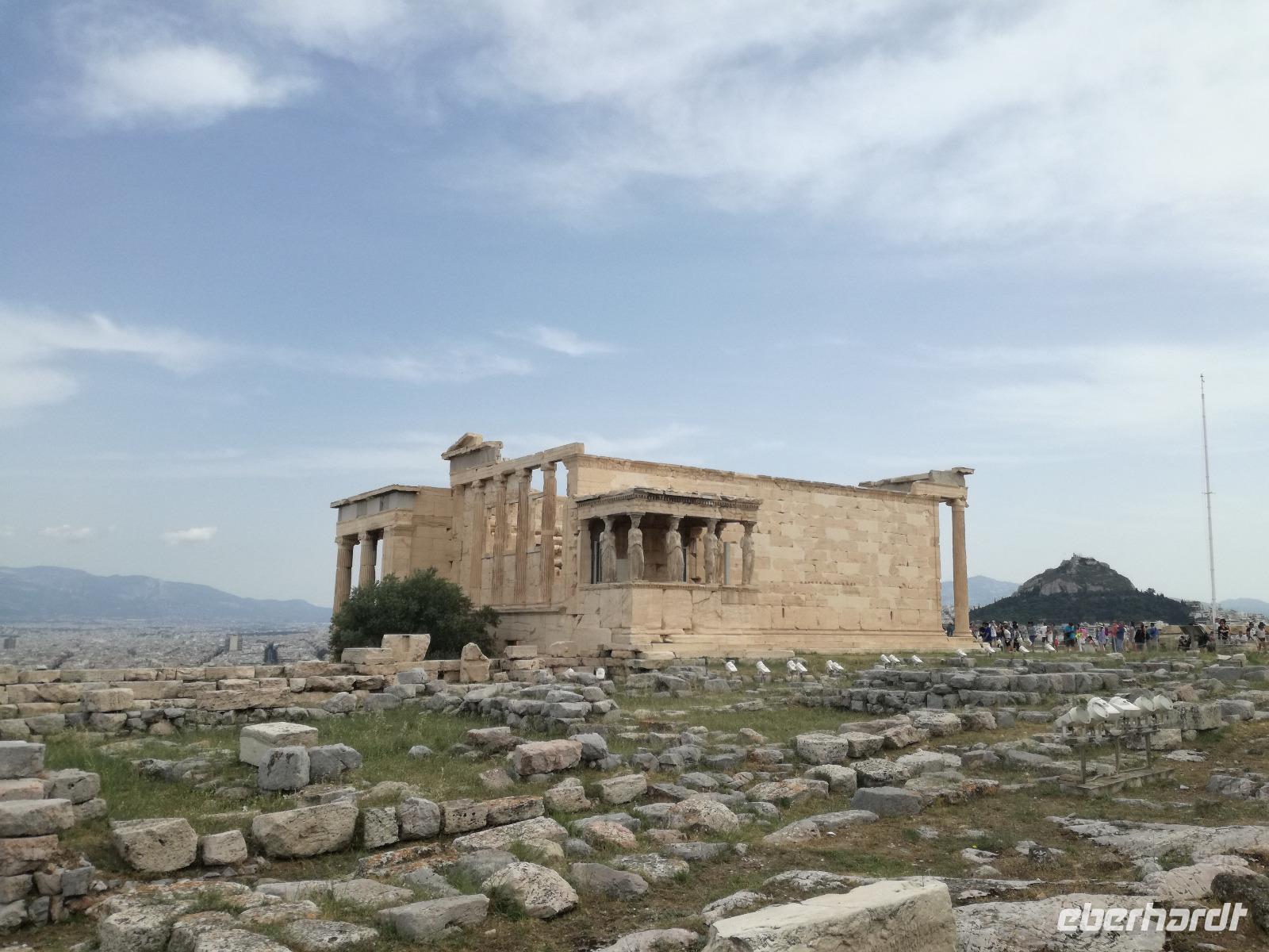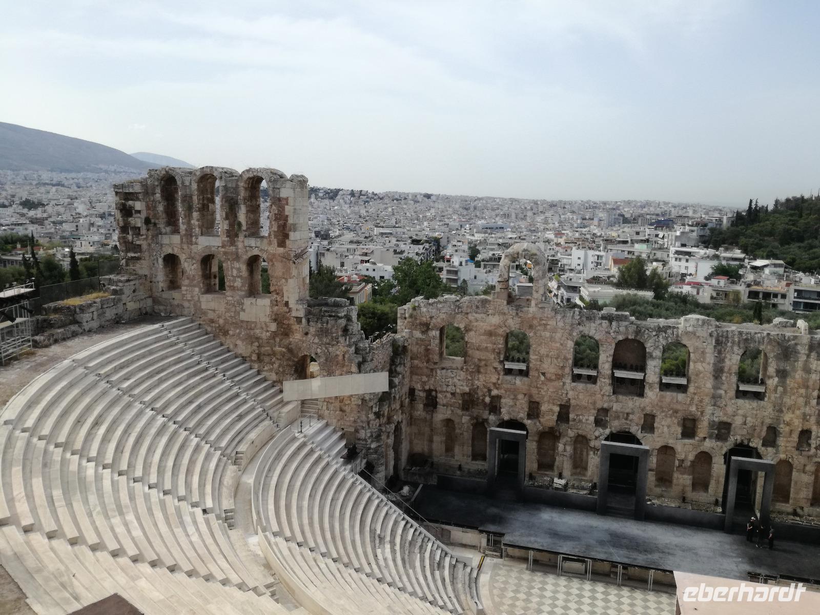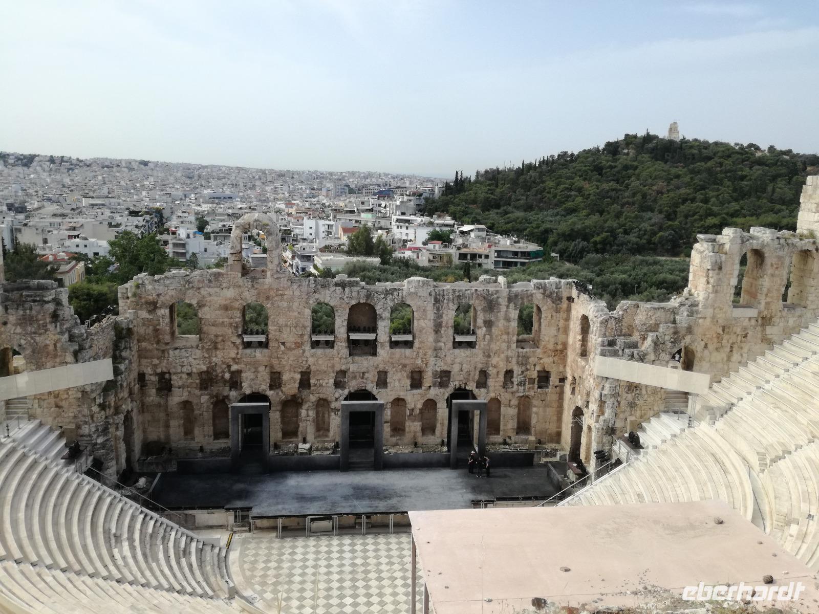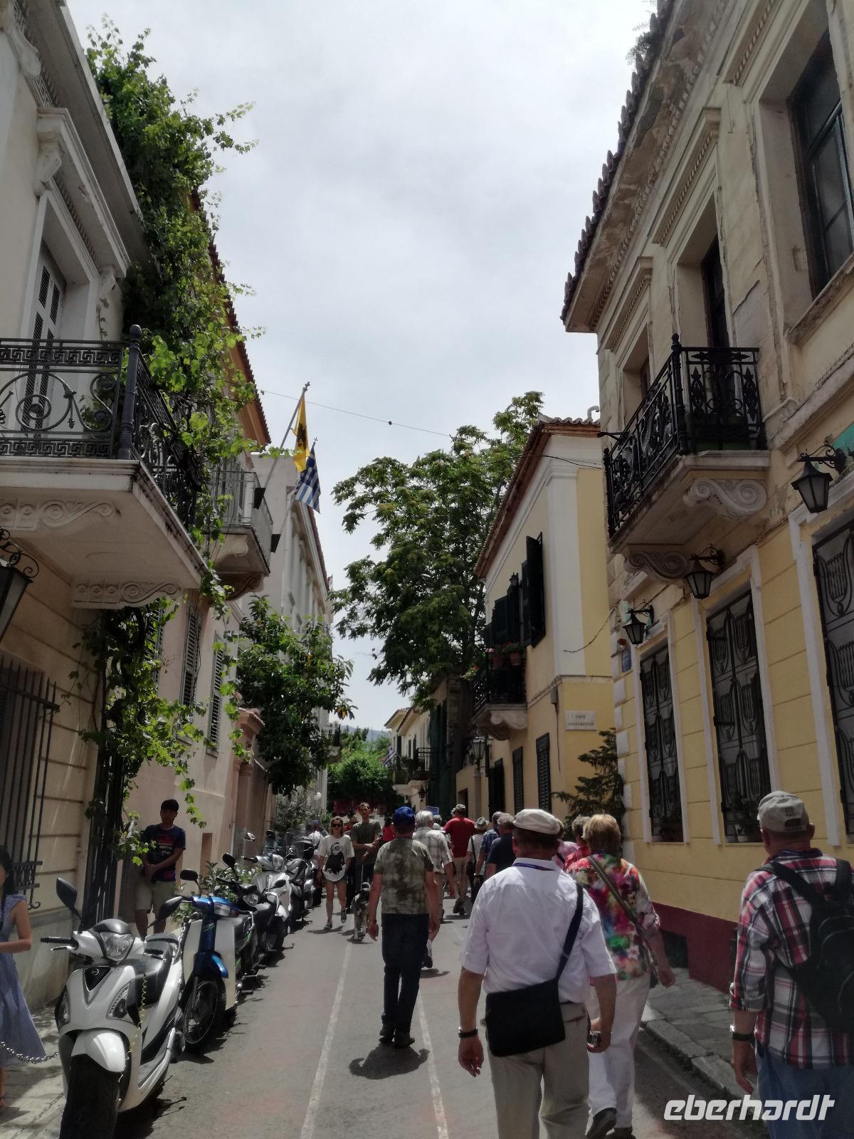 Kalimera in Athen! Bereits sehr früh trafen wir uns im The Cafe auf Deck 7 um gemeinsam von Bord zu gehen und unseren Eberhardt Ausflug zu starten. Erst einmal mussten wir durch das Terminal laufen um aus dem Hafengelände zu kommen. Bei den Bushaltestellen empfing uns dann Anastasia, unsere örtliche Reiseleiterin und wir machten uns auf den Weg nach Athen. Während wir ein wenig durch die Stadt fuhren erklärte uns Anastasia einiges über die alten Ruinen die in der Stadt noch vorzufinden sind und die verschiedenen Stadien, die extra für Olympia gebaut wurden. Später erreichten wir die Innenstadt und liefen hoch zur Akropolis, von wo wir einen wunderschönen Blick über die gesamte Stadt hatten. Nach einer sehr interessanten und ausführlichen Erklärung über die Bauart der Akropolis hatten wir noch eine gute halbe Stunde Zeit um uns selbst auf Spurensuche zu gehen. Danach trafen wir uns alle wieder am Ausgang und liefen in die Altstadt - die Plaka. Nach einer kurzen Führung hatten wir Zeit die Plaka auf eigene Faust zu entdecken und uns bei einem Mittagessen zu stärken. Wir bummelten ein wenig durch die kleine Einkaufsstraße und trafen uns schließlich wieder am vereinbarten Treffpunkt um zurück zum Bus zu laufen, der uns wieder zu unserem Schiff brachte. Der restliche Nachmittag und Abend stand uns zur freien Verfügung. So endete wieder einmal ein wunderschöner aber auch anstrengender Tag auf unserer Reise.
