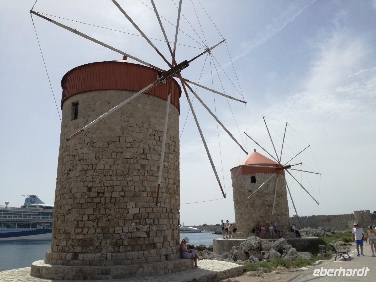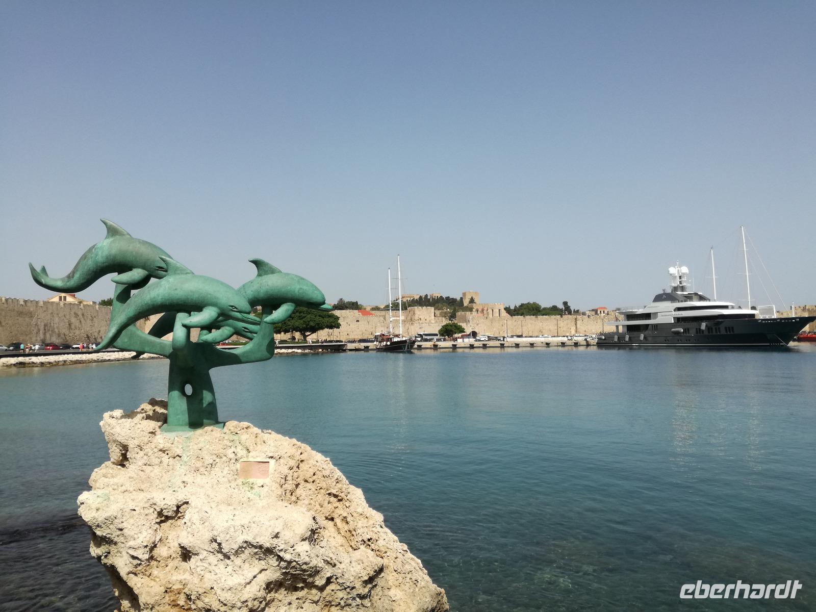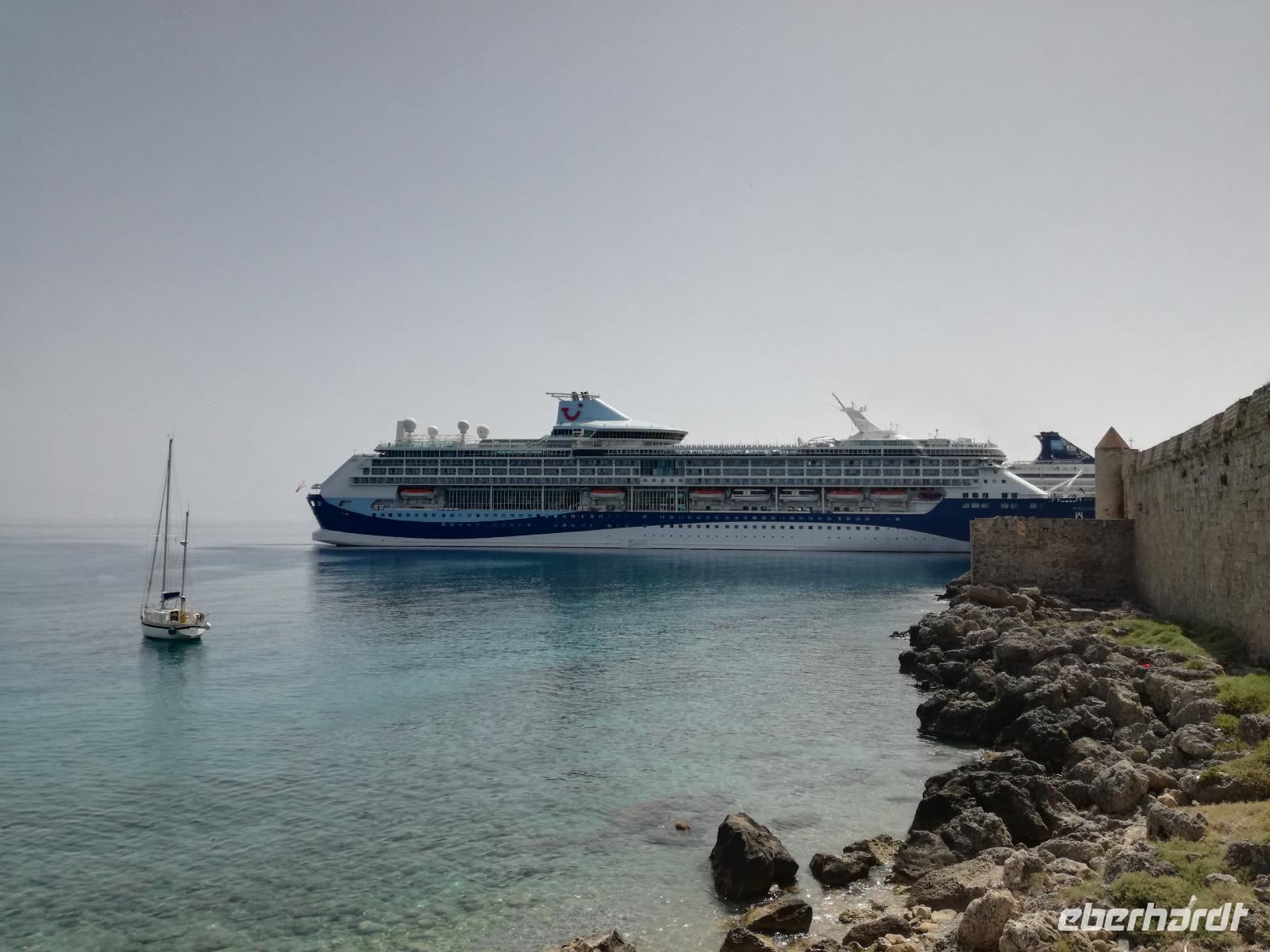 Den Pfingstmontag verbrachten wir auf der Insel Rhodos mit Sonnenschein und (für uns) heißen Temperaturen. Mit einigen aus unserer Reisegruppe traf ich mich um 10.00 Uhr im The Cafe um gemeinsam in die Stadt zu gehen. Entlang der noch gut erhaltenen Stadtmauer führte unser Weg in die Altstadt und immer weiter in Richtung Alter Hafen, wo einst der Koloss von Rhodos gestanden haben soll. Heute kennzeichnen zwei Statuen den wohl ehemaligen Standort des Koloss, durch dessen Beine die Schiffe damals ein - bzw. ausgelaufen sind. Bei einem Spaziergang durch die Altstadt zurück in Richtung Schiff gönnten wir uns noch ein erfrischendes Eis um uns ein wenig abzukühlen. Das Mittagessen an Bord viel entsprechend leicht mit einem locker geschichtetem Salat aus ;-) Den restlichen Nachmittag verbrachten die meisten von uns auf Deck 12 und entspannten mit einem Drink am Pool. Um 19.00 Uhr ging ich mit 7 Gästen ins Windows Essen und wir konnten mal wieder ein leckeres Abendessen genießen. Später entschieden wir uns noch ins Theater zu gehen um die heutige Show mit Rockklassikern von Queen und The Who anzusehen.