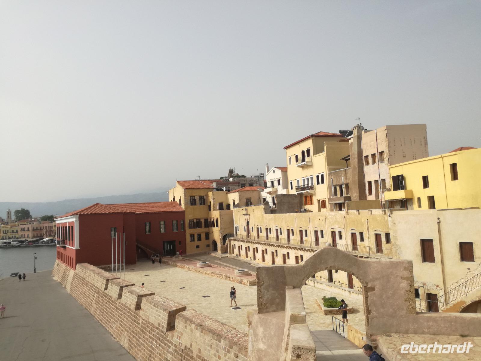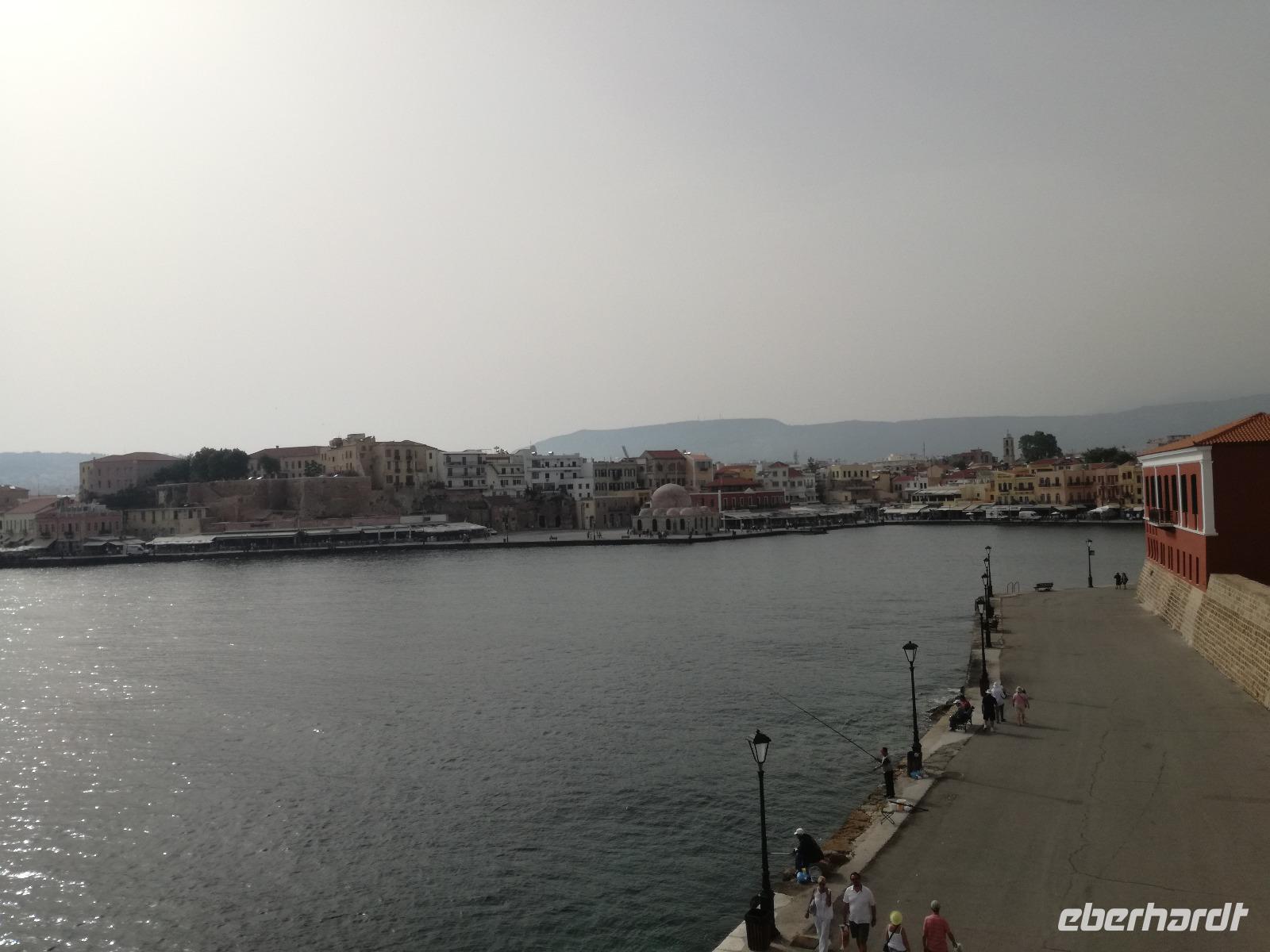 07.15 Uhr - die Gäste, die den Ausflug „Spaziergang durch Chania" gebucht hatten, mussten zu dieser Zeit schon im Theater bereit sein. Der Rest hatte Glück und konnte vielleicht ein wenig länger schlafen. Zunächst wurden wir für unseren Ausflug mit dem Bus vom Schiff abgeholt und sind in die Stadt gefahren. Unsere Reiseleiterin Riza führte uns dann durch die schönen kleinen Gassen der Stadt und erzählte einiges aus der vergangenen Zeit der Römer, Venezianer und Araber, die die Stadt und die Insel besiedelten. Dementsprechend findet man noch heute Überreste der jeweiligen Architektur. Nachdem wir zur alten Festung am Hafen liefen und die Hafenpromenade entlang schlenderten, hatten wir etwas Freizeit um die Stadt auf eigene Faust zu erkunden. Atemberaubend war auch die Kathedrale von Chania, die mitten in der Altstadt stand. Später liefen wir dann wieder durch die Markthalle zurück zu unserem Treffpunkt und wir wurden wieder zum Schiff gefahren. Am Nachmittag konnte dann jeder tun, was er will und so vertrieben wir uns den restlichen Tag auf dem Schiff.