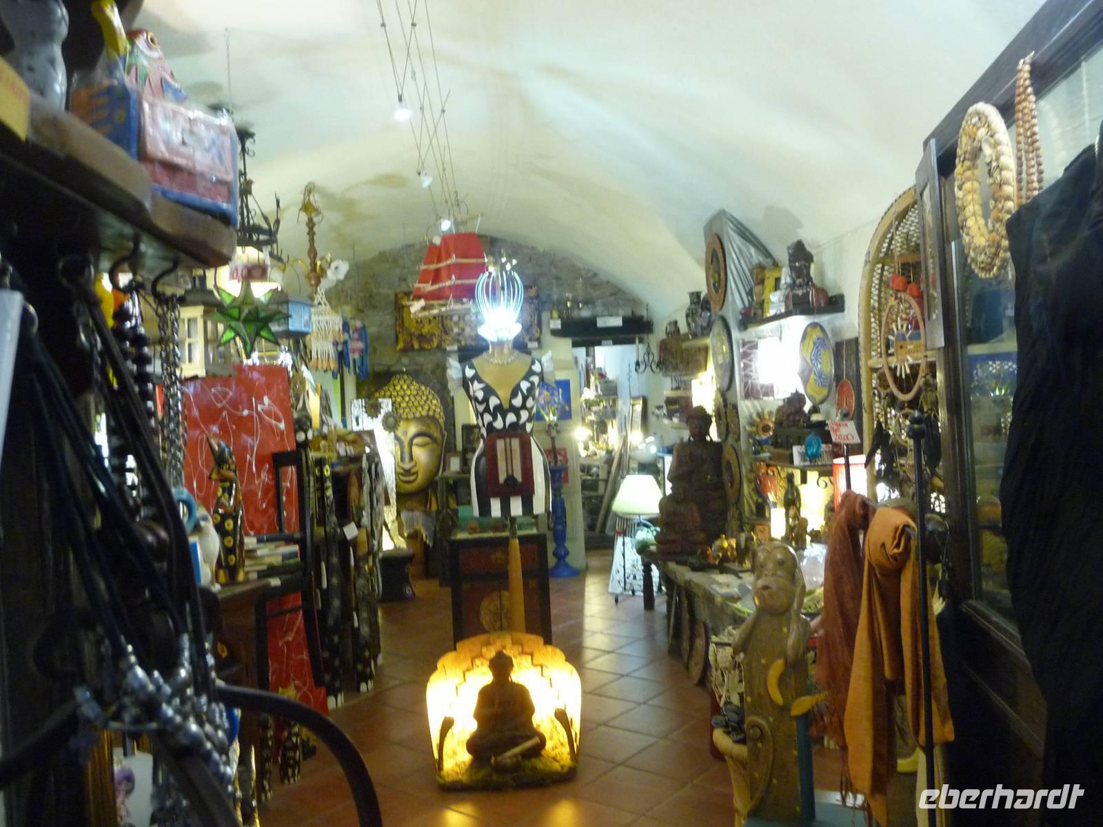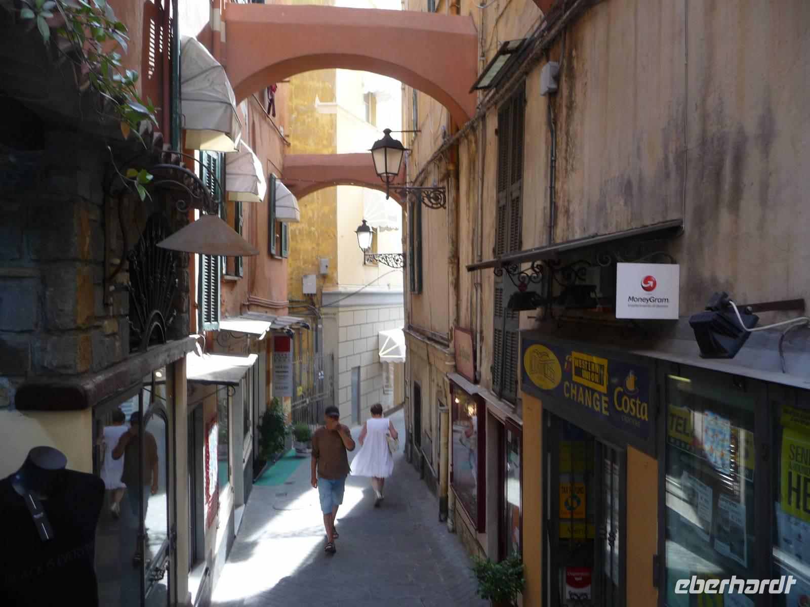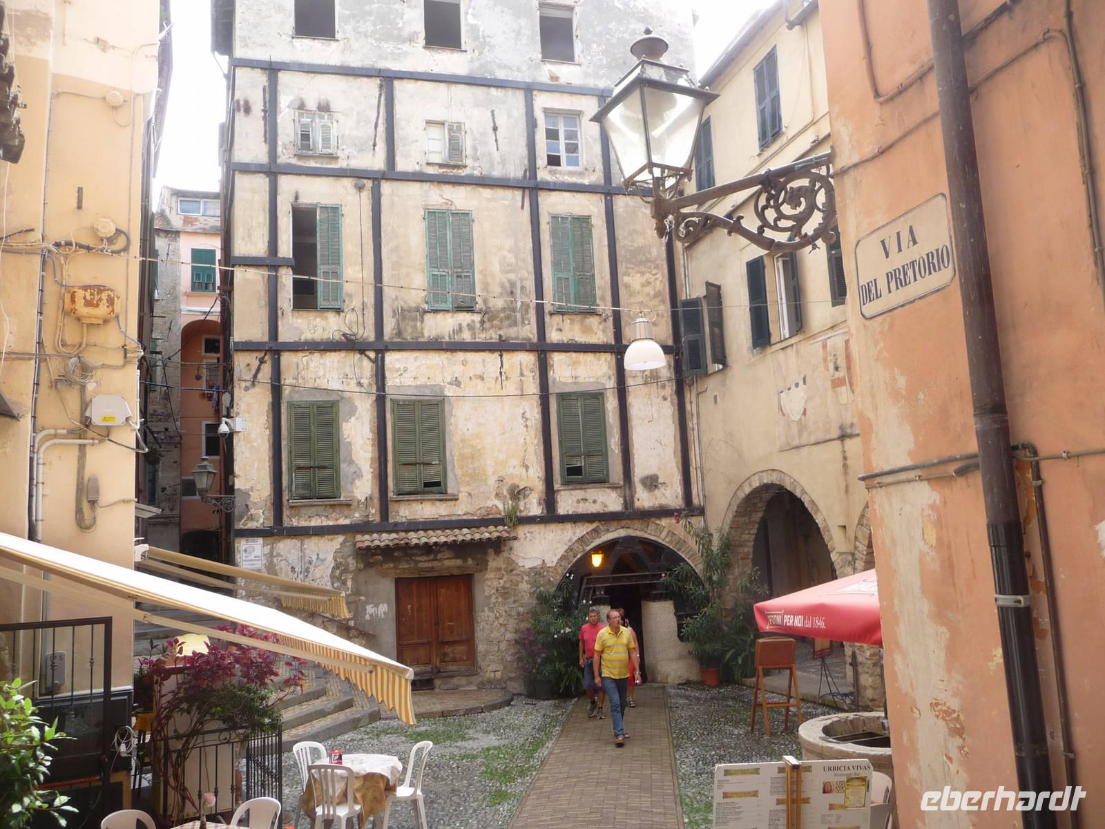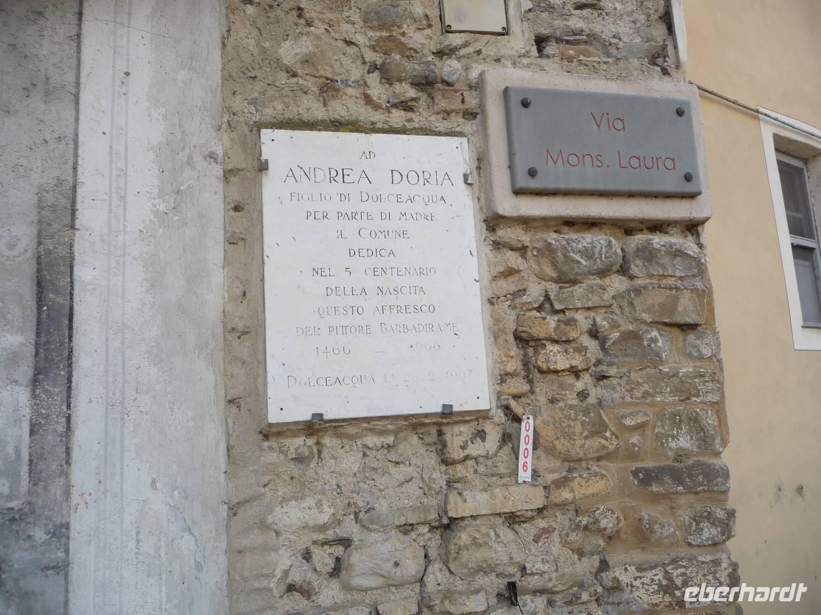 Weiter geht unsere Busfahrt ins Hinterland der "Riviera di Ponente" nach Dolceacqua. Das Dorf wird überragt vom "Castello dei Doria", das man erreicht, wenn man vom "Unterdorf" aus über die berühmte Brücke "Ponte Vecchio di Dolceacqua" auf steil nach oben gehenden Sträßchen wandert. Diese Brücke hat Weltruhm dadurch erlangt, dass der impressionistische, französische Maler Claude Monet ein Gemälde von der Brücke gemalt hat, dem er den Namen "Juwel der Leichtigkeit" gab. An pittoresken Häuschen mit Boutiquen und Galerien von aktuellen Malern vorbei gelangen wir mit einiger Anstrengeung bis an den Fuß des Schlosses, um nach kurzer Verweildauer wieder den nun nicht mehr ganz so anstrengenden Weg nach unten anzutreten.