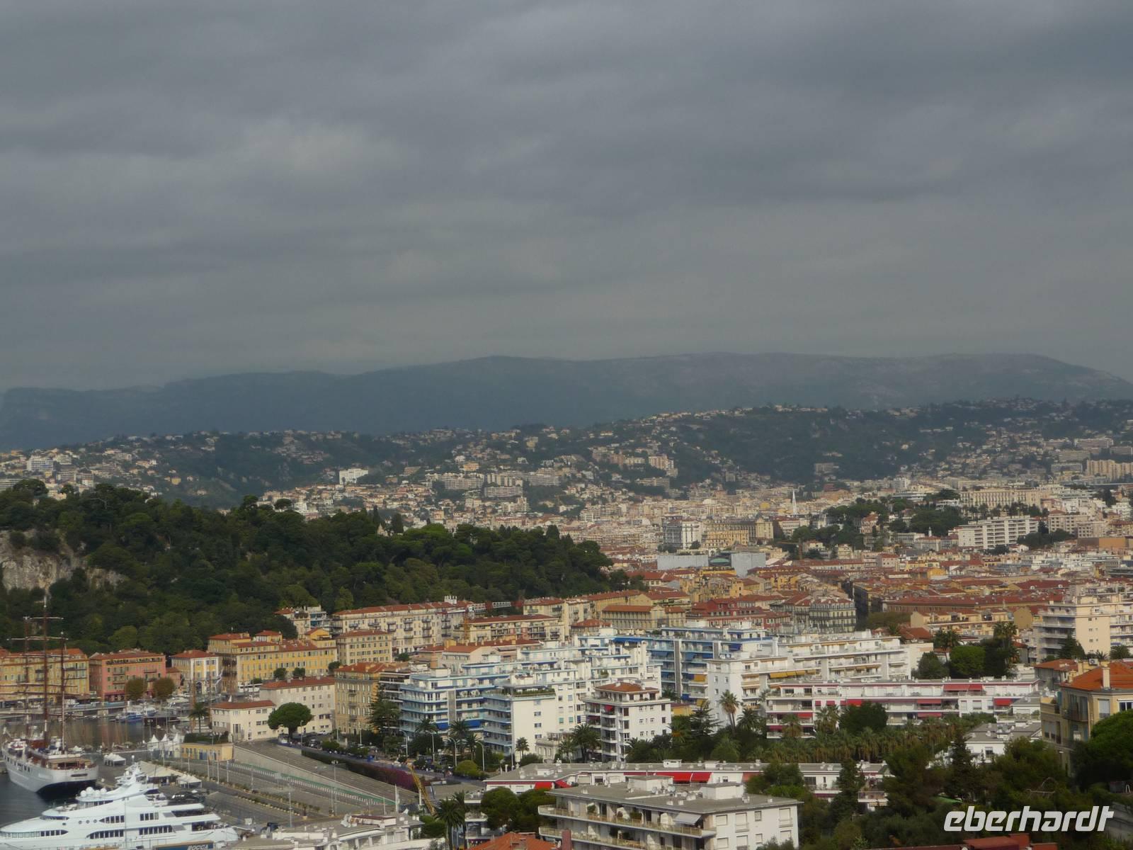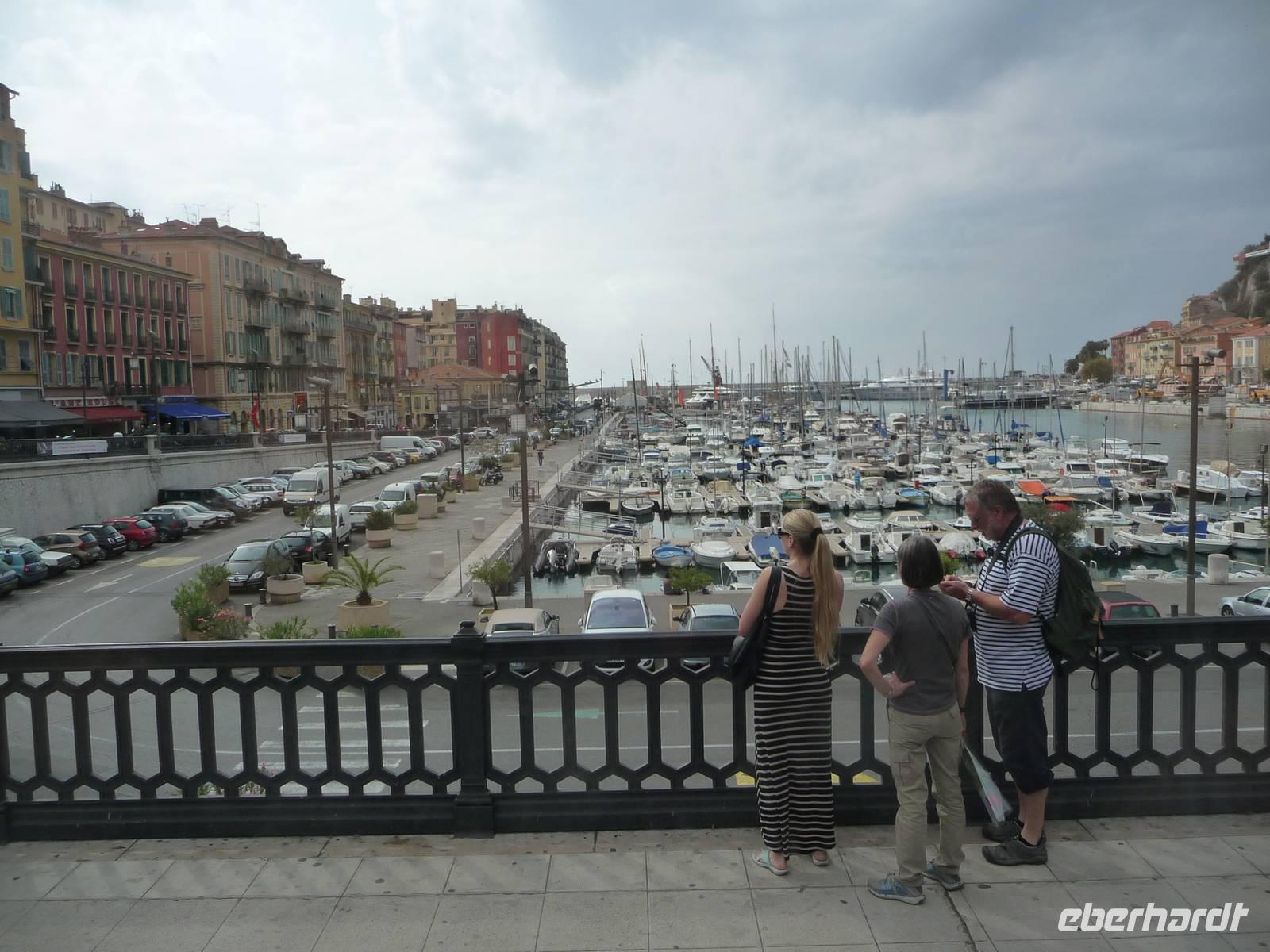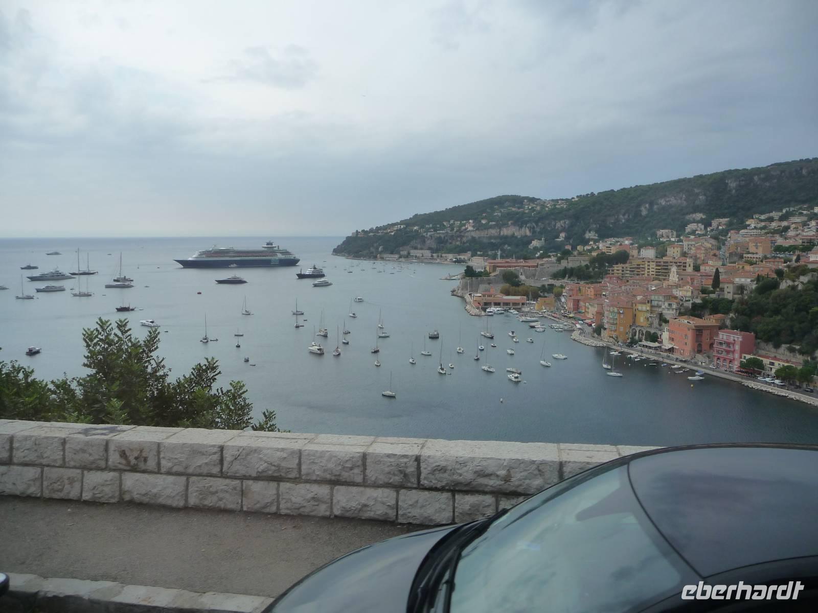Frühmorgens geht die Reise los über die Autobahn, wo sich Tunnel an Tunnel reiht, in Richtung Frankreich. Oberhalb von Monaco fahrend, wo wir schon mal im Vorbeifahren den atemberaubenden Blick auf das Fürstentum werfen können, gelangen wir zu unserer ersten Station des Tages, nach Nizza. Ein Halt auf freier Strecke gewährt uns einen solchen Blick wie in dem Film "Über den Dächern von Nizza", in dem Hitchcock - Krimi von 1955 mit Grace Kelly und Cary Grant.