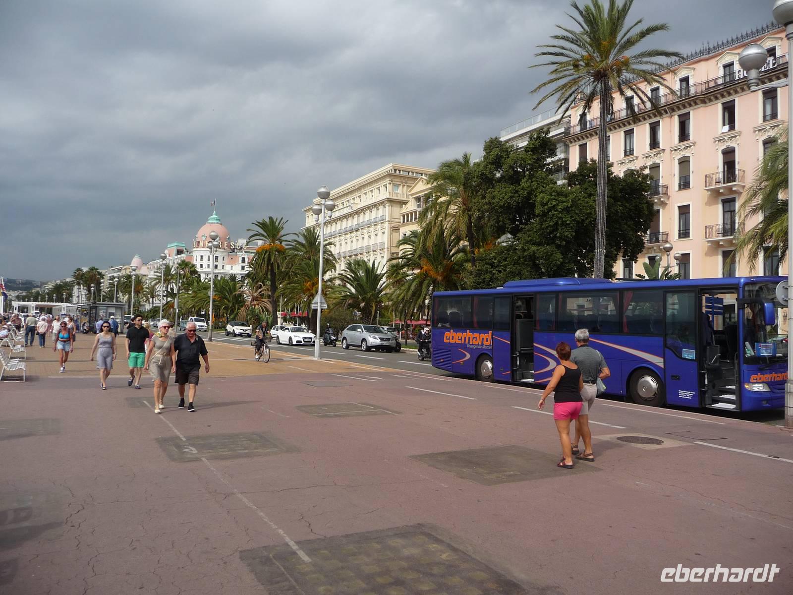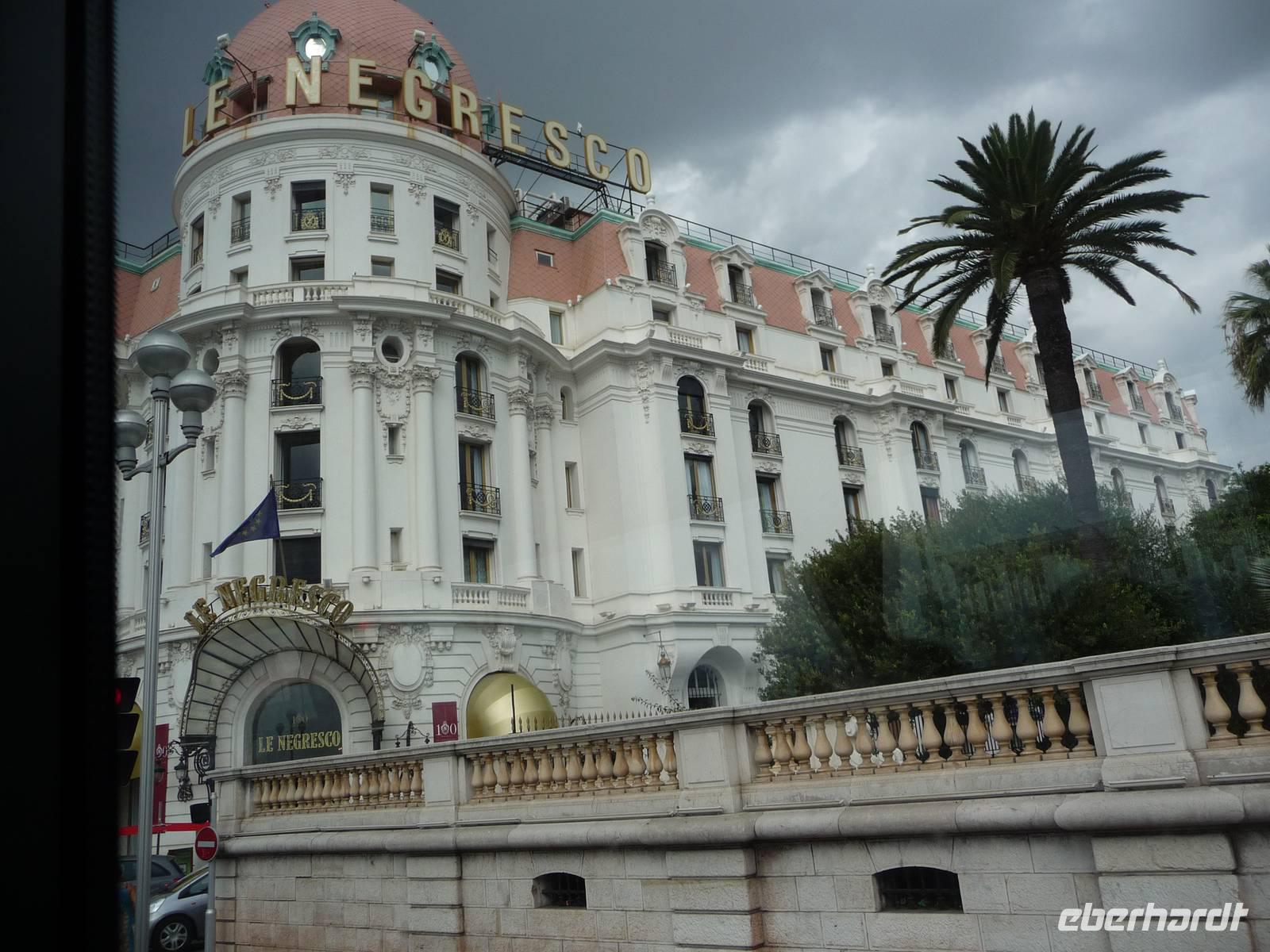 Nizza ist bald erreicht, wir sind in der Hauptstadt der Côte d'Azur. Eine Rundfahrt durch die Stadt endet auf der "Promenade des Anglais", der eleganten mit Blumen geschmückten Strandpromenade und wir bewundern eines der bekanntesten Hotels an der Côte d'Azur, das