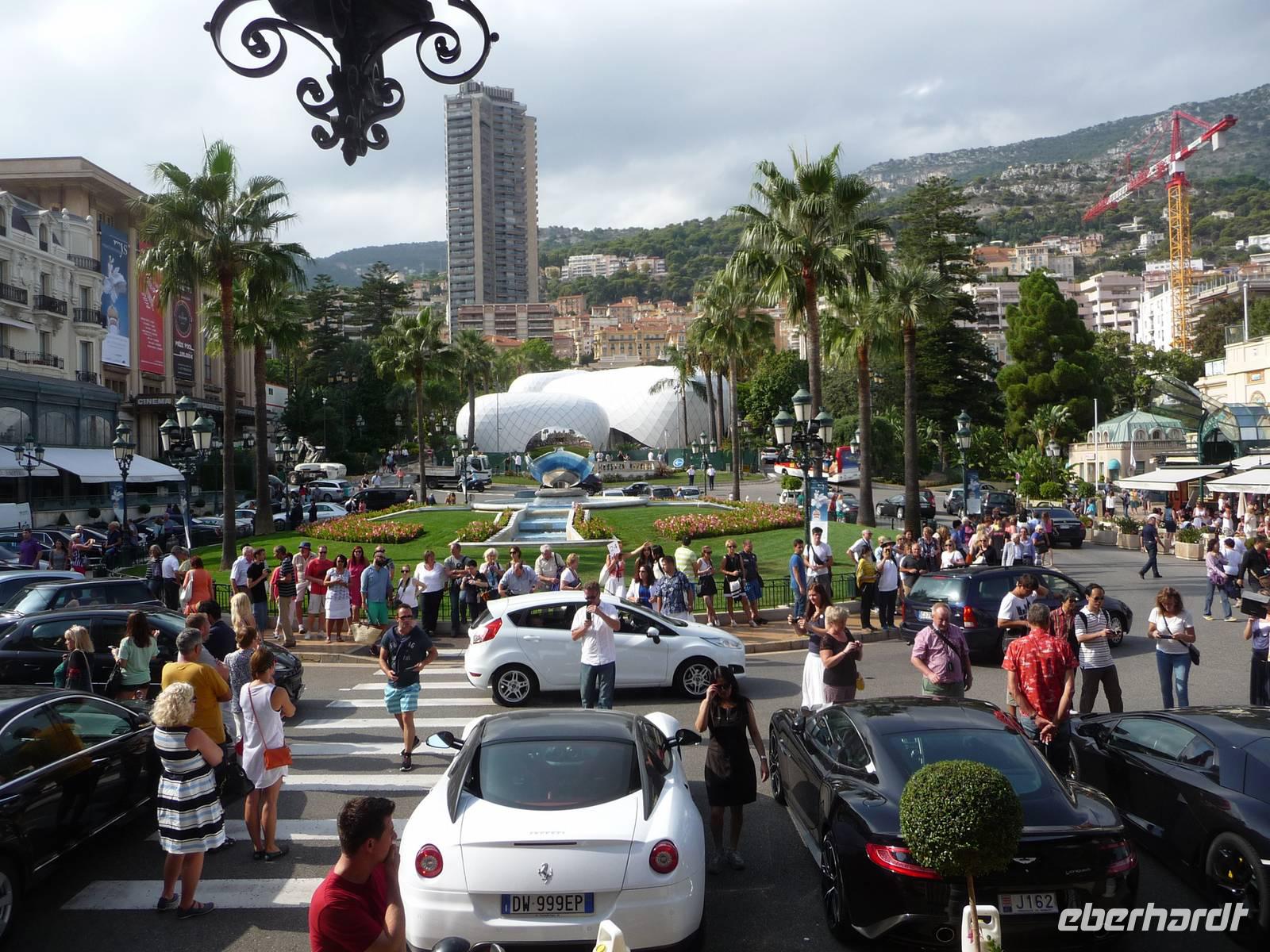 Kurz darauf hat uns der Bus nach Monte Carlo gebracht, wo die Spielbank unser erster Anlaufpunkt ist. Für Fans großer Automobilmarken schlägt jetzt die Stunde: um das Casino geschart sehen wir Rolls Royce, Bentley, Lamborghini neben den auch schönen "normalen" Autos. In der Vorhalle der Spielbank ist zwar das Fotografieren untersagt, aber heimlich aus der Hüfte geschossene Fotos werden toleriert (siehe Fotogalerie). Der Blick von oben auf den berühmten Yachthafen von Monte Carlo läßt einen schon ein bißchen erahnen, dass die "Reichen und Schönen" hier irgendwie zuhause sind. Einen großen Spaß haben wir, als Toni unsern Bus auf die Startlinie der Formel I Strecke schiebt und auf Sylvias Kommando mit 3-2-1-los! startet, zugegeben nur mit einem Bruchteil der Geschwindigkeit von Rennautos wie alle Jahre wieder.