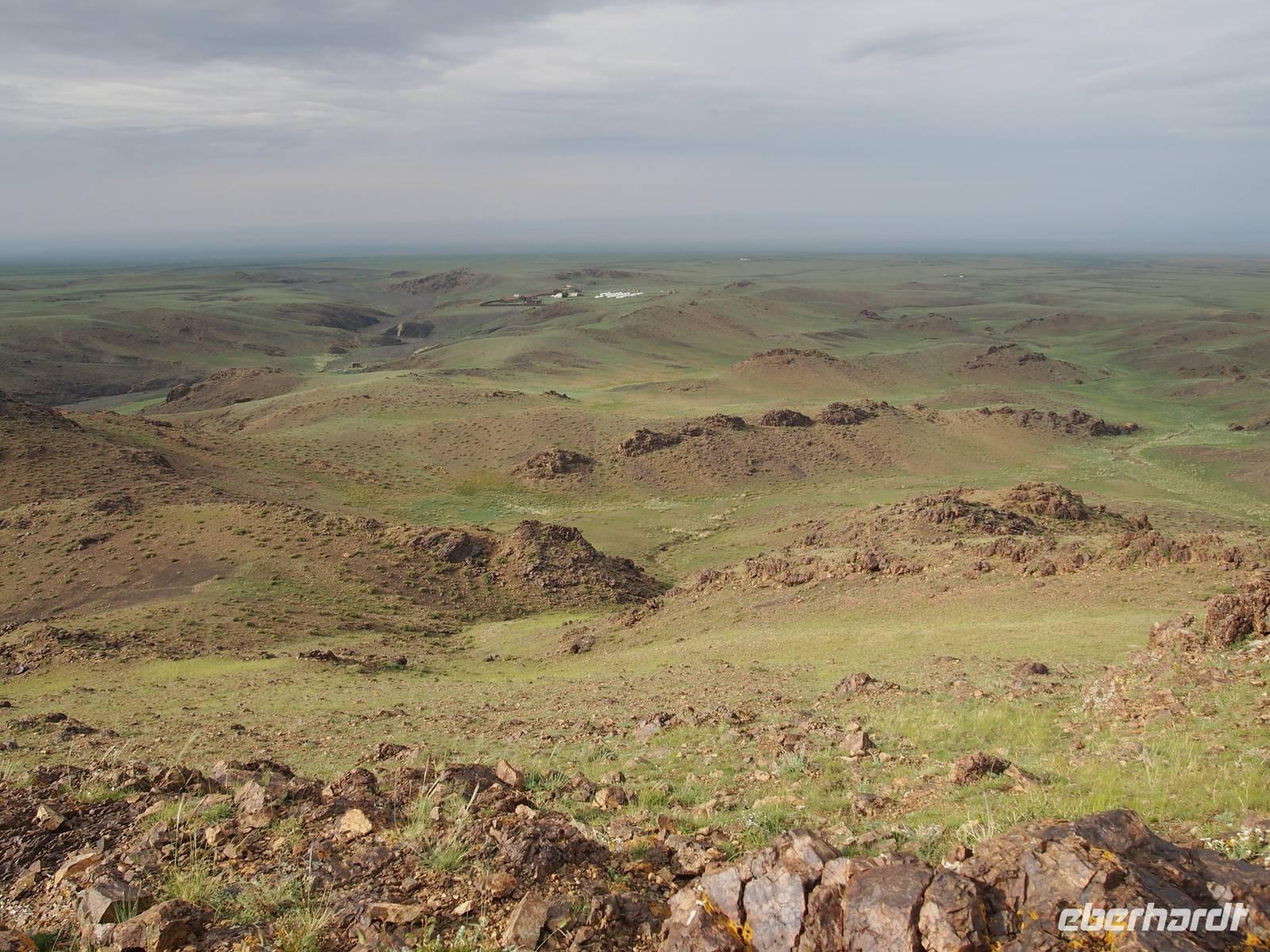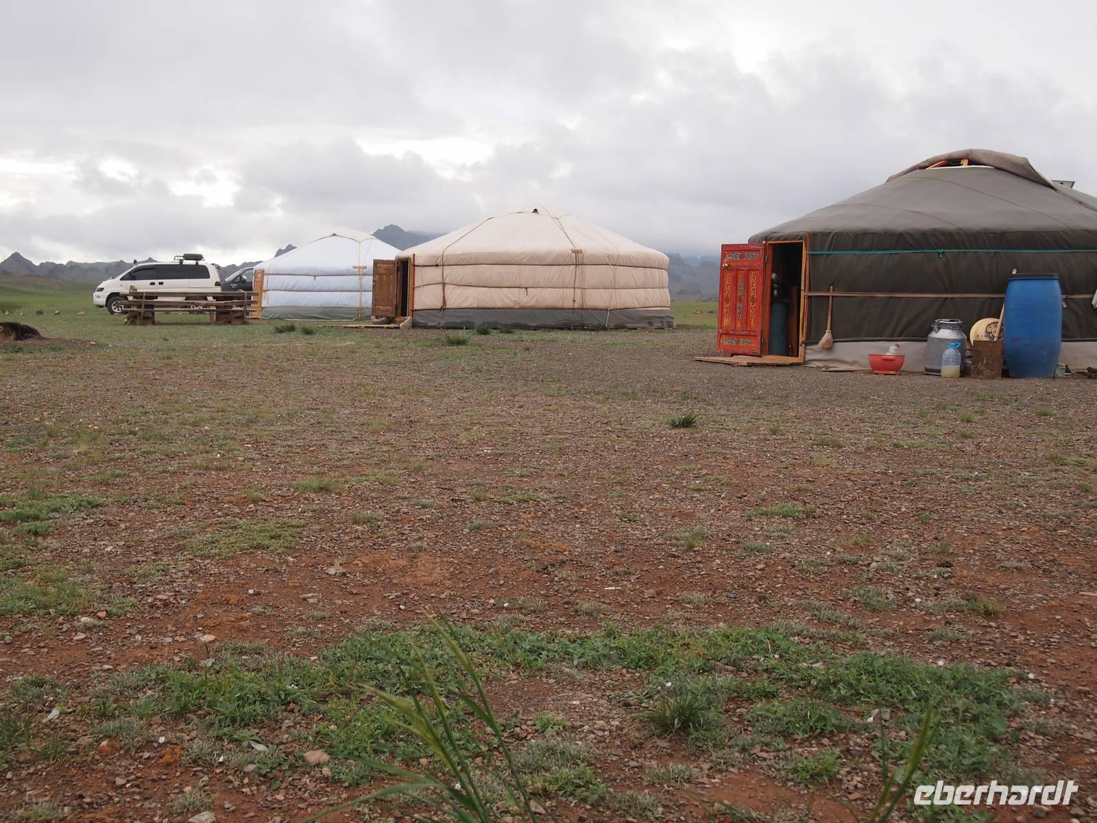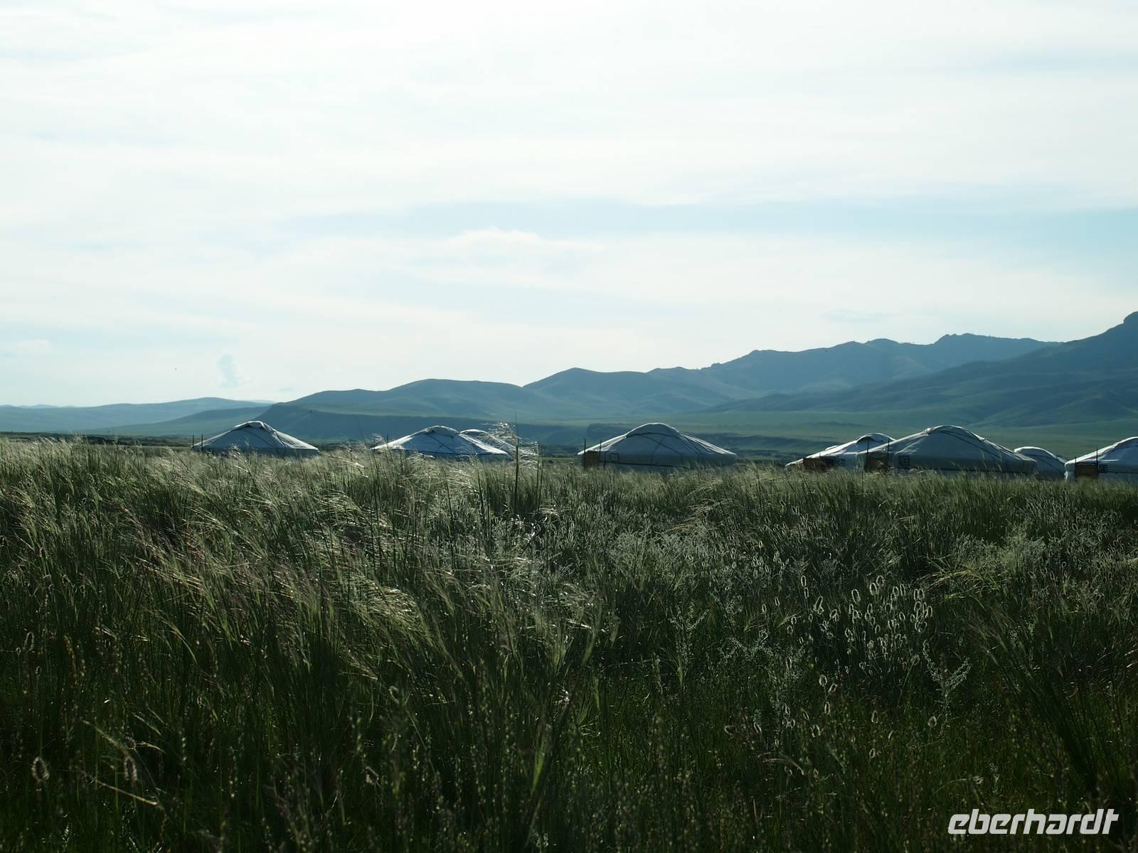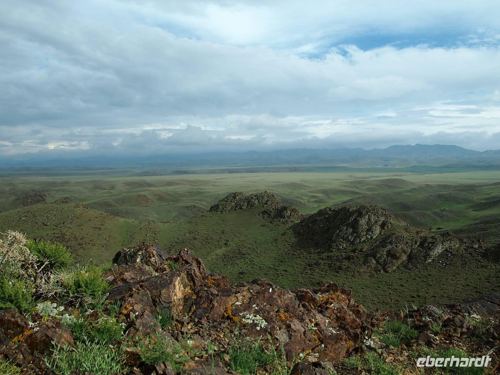 Besonders faszinierend war auch heute wieder zu beobachten, wie sich die Landschaft von Stunde zu Stunde veränderte. Kurz vor unserem heutigen Tagesziel haben wir noch einen kurzen Halt in Danslagad gemacht, um noch ein paar Kleinigkeiten einzukaufen. Dabei schauten wir links und rechts in die Läden. So besuchten wir u.a. auch eine Fleischerei, die in ihrer Art und Weise in Deutschland nicht vorstellbar wäre. Nach ein paar kleinen Einkäufen fuhren wir weiter zu unserem Camp. Obwohl das Wetter uns nicht ganz wohlgesonnen war, hat es viele von uns nicht abgeschreckt, die Gegend zu erkunden. So wurden schnell die Regenjacken rausgeholt und wir bestiegen die Hügel in der Umgebung. Die Aussicht war herrlich und die Wolken ließen nur erahnen, was sich in der Ferne noch alles verbirgt. Doch Petrus stimmte sich schnell milde und ließ die Sonne wieder scheinen. Nach dem Abendbrot ging es nach einer warmen Dusche für alle zeitig ins Bett, wobei der Regen noch lange leise auf die Dächer der Jurten tropfte.