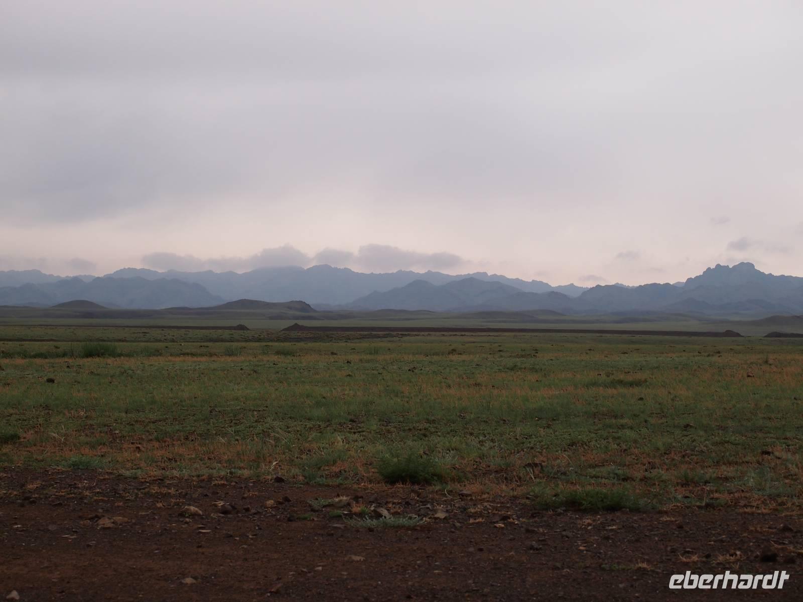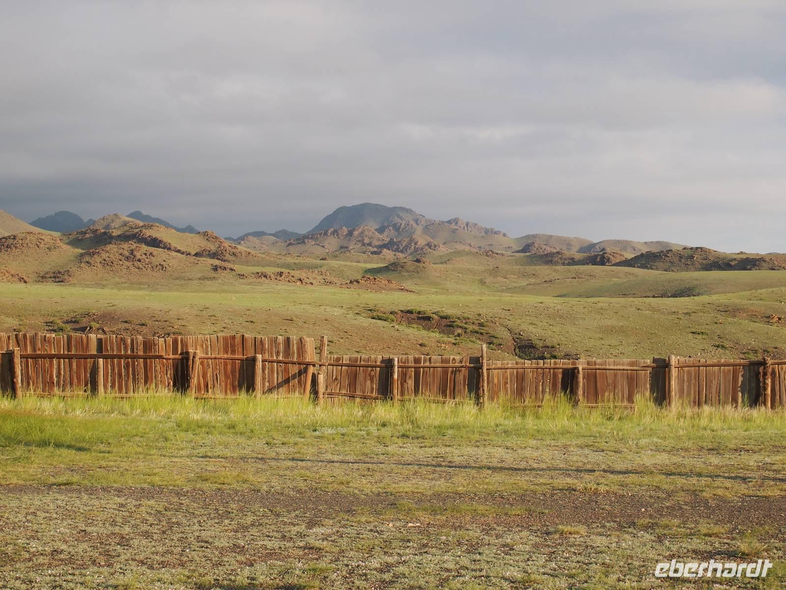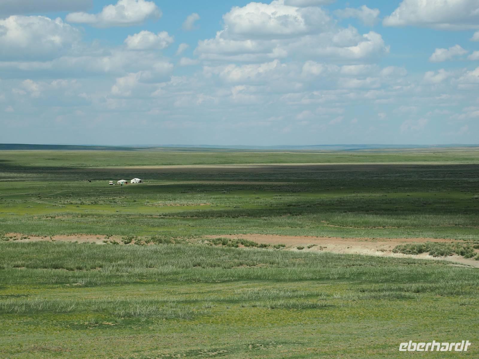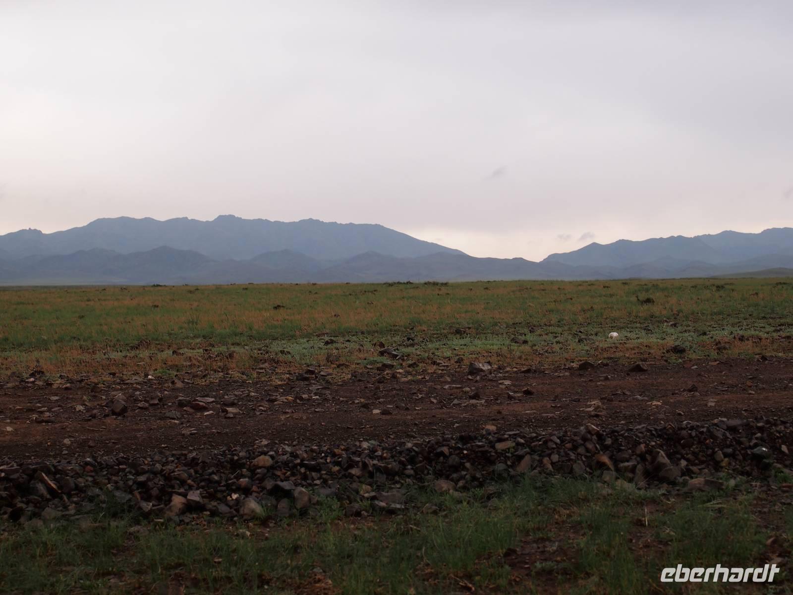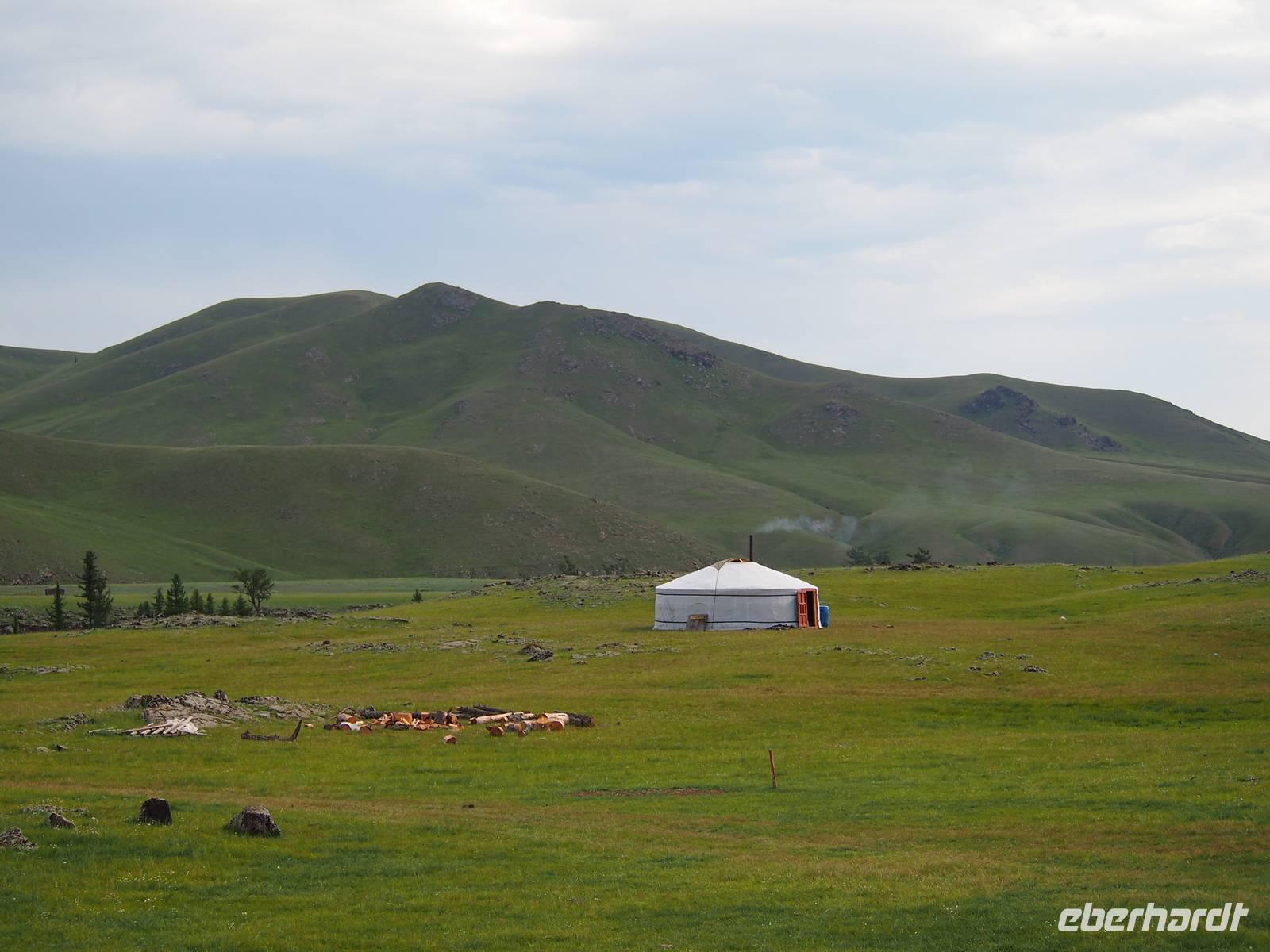Besonders faszinierend war auch heute wieder zu beobachten, wie sich die Landschaft von Stunde zu Stunde veränderte. Kurz vor unserem heutigen Tagesziel haben wir noch einen kurzen Halt in Danslagad gemacht, um noch ein paar Kleinigkeiten einzukaufen. Dabei schauten wir links und rechts in die Läden. So besuchten wir u.a. auch eine Fleischerei, die in ihrer Art und Weise in Deutschland nicht vorstellbar wäre. Nach ein paar kleinen Einkäufen fuhren wir weiter zu unserem Camp. Obwohl das Wetter uns nicht ganz wohlgesonnen war, hat es viele von uns nicht abgeschreckt, die Gegend zu erkunden. So wurden schnell die Regenjacken rausgeholt und wir bestiegen die Hügel in der Umgebung. Die Aussicht war herrlich und die Wolken ließen nur erahnen, was sich in der Ferne noch alles verbirgt. Doch Petrus stimmte sich schnell milde und ließ die Sonne wieder scheinen. Nach dem Abendbrot ging es nach einer warmen Dusche für alle zeitig ins Bett, wobei der Regen noch lange leise auf die Dächer der Jurten tropfte.