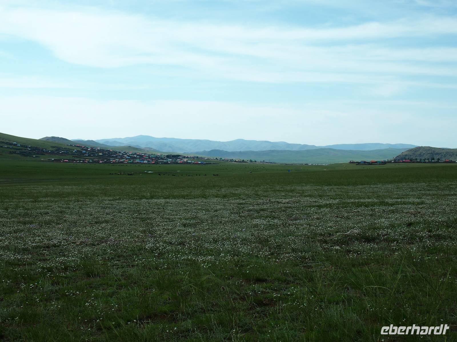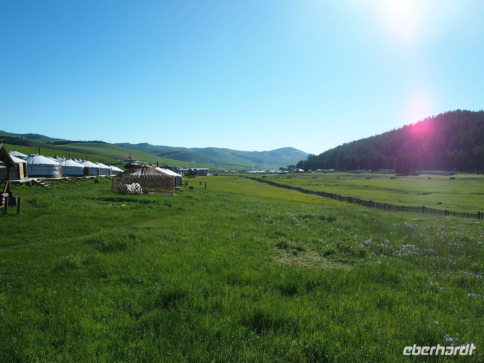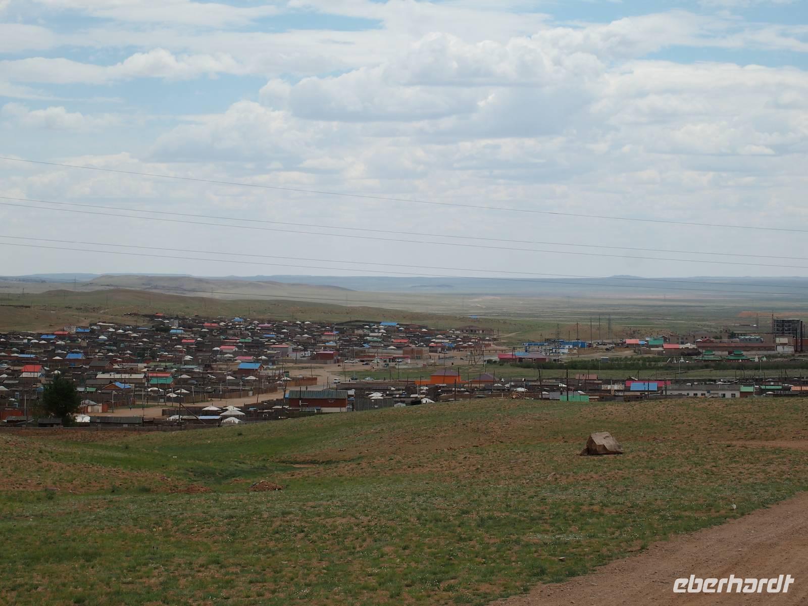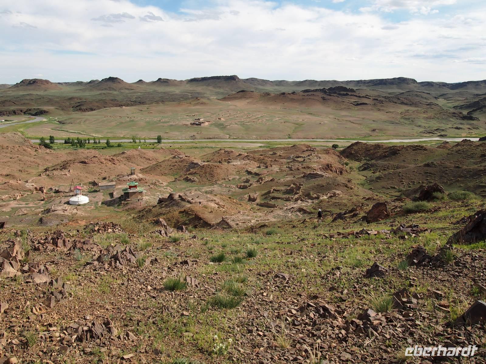 Besonders faszinierend war auch heute wieder zu beobachten, wie sich die Landschaft von Stunde zu Stunde veränderte. Kurz vor unserem heutigen Tagesziel haben wir noch einen kurzen Halt in Danslagad gemacht, um noch ein paar Kleinigkeiten einzukaufen. Dabei schauten wir links und rechts in die Läden. So besuchten wir u.a. auch eine Fleischerei, die in ihrer Art und Weise in Deutschland nicht vorstellbar wäre. Nach ein paar kleinen Einkäufen fuhren wir weiter zu unserem Camp. Obwohl das Wetter uns nicht ganz wohlgesonnen war, hat es viele von uns nicht abgeschreckt, die Gegend zu erkunden. So wurden schnell die Regenjacken rausgeholt und wir bestiegen die Hügel in der Umgebung. Die Aussicht war herrlich und die Wolken ließen nur erahnen, was sich in der Ferne noch alles verbirgt. Doch Petrus stimmte sich schnell milde und ließ die Sonne wieder scheinen. Nach dem Abendbrot ging es nach einer warmen Dusche für alle zeitig ins Bett, wobei der Regen noch lange leise auf die Dächer der Jurten tropfte.