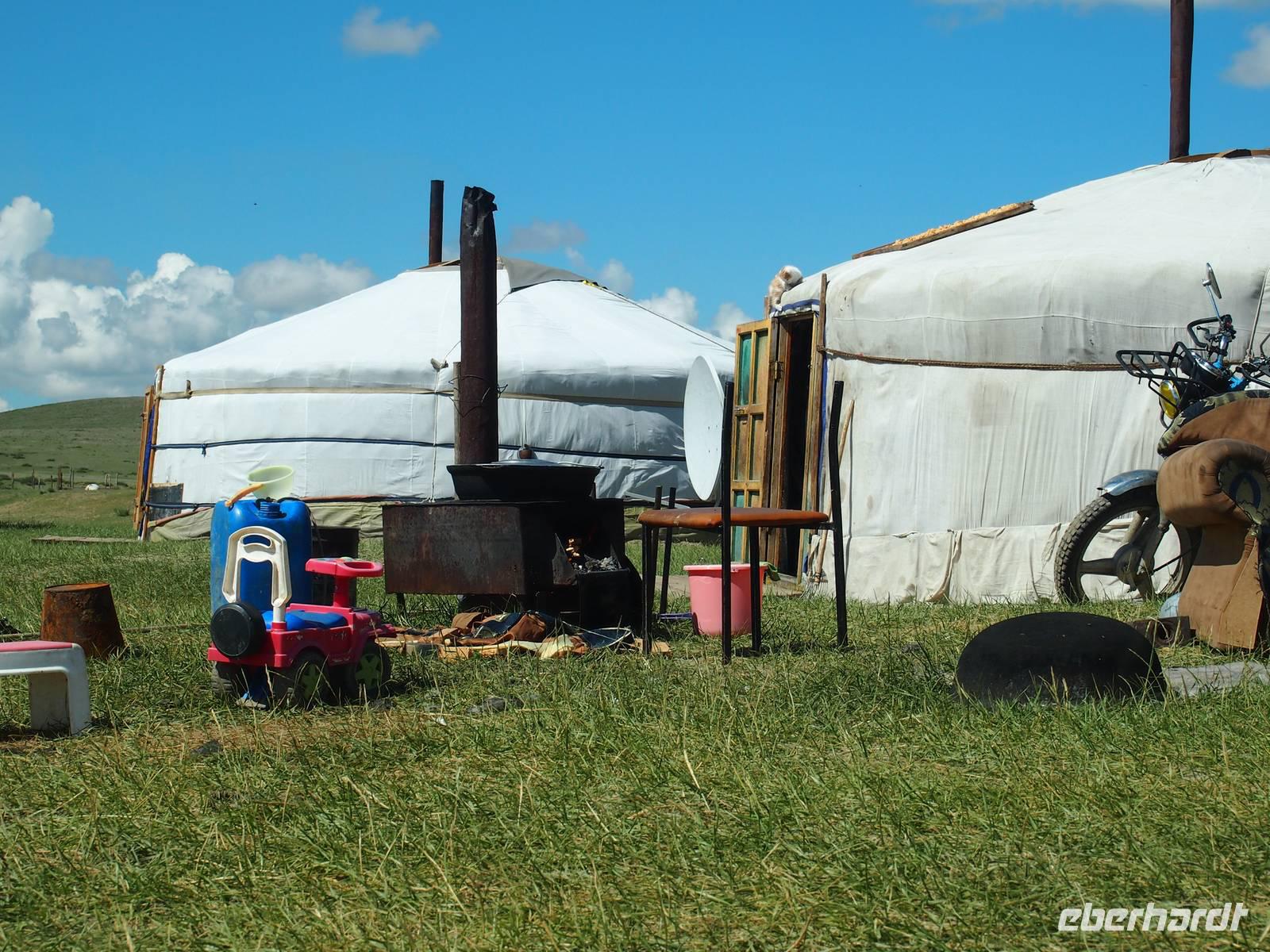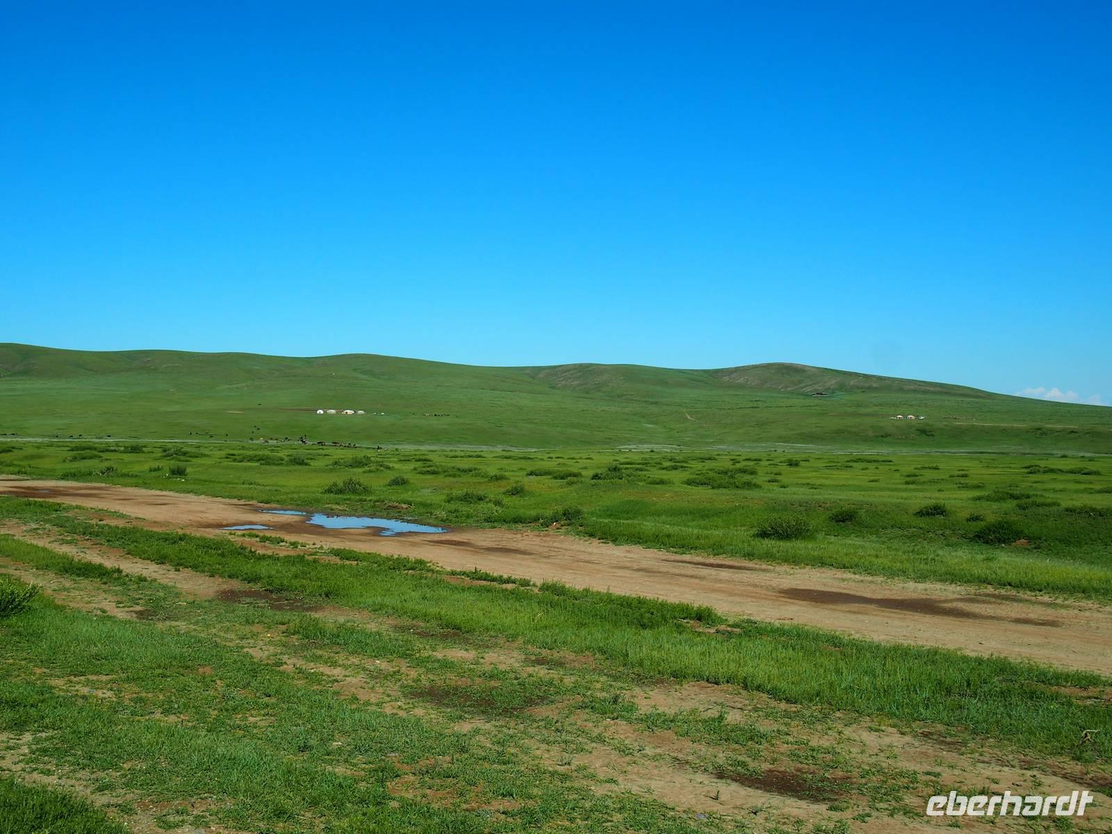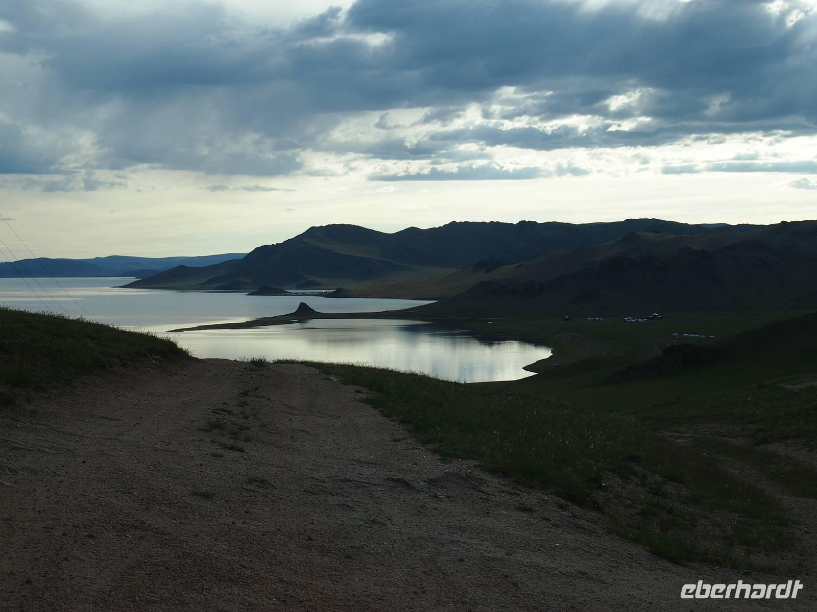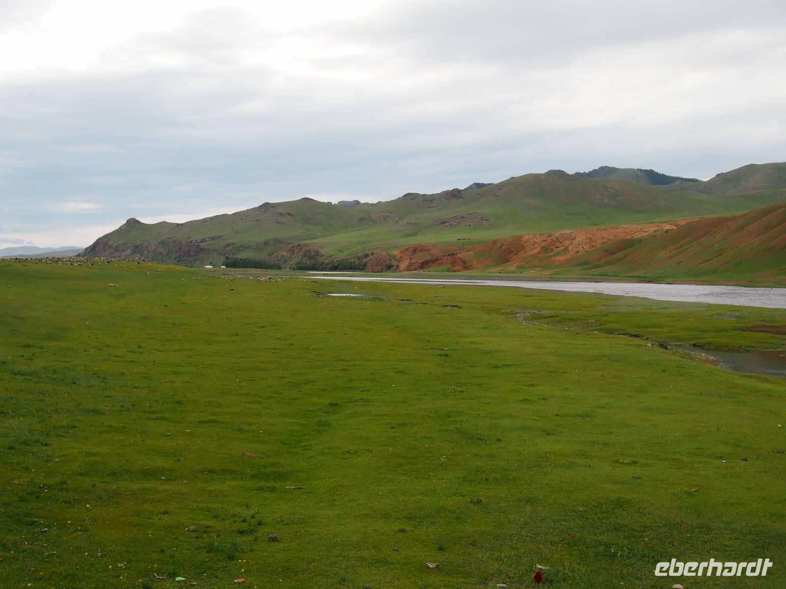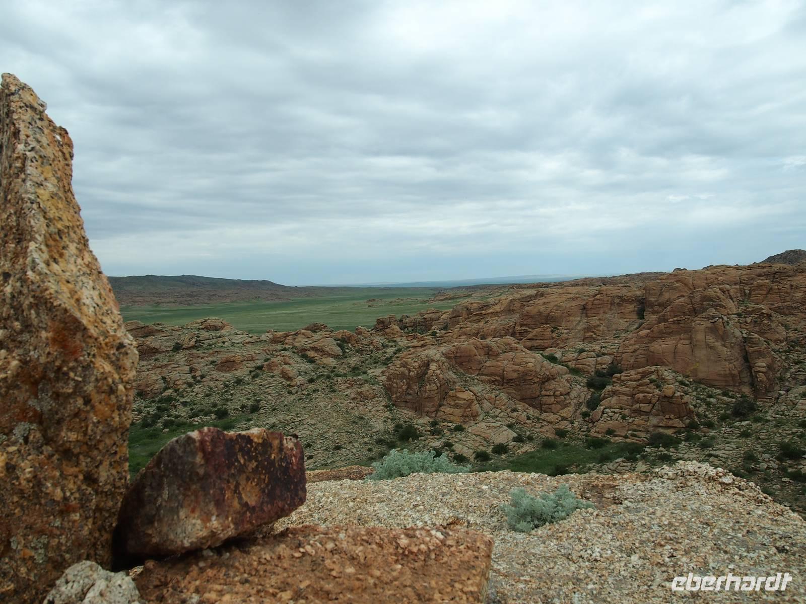 Besonders faszinierend war auch heute wieder zu beobachten, wie sich die Landschaft von Stunde zu Stunde veränderte. Kurz vor unserem heutigen Tagesziel haben wir noch einen kurzen Halt in Danslagad gemacht, um noch ein paar Kleinigkeiten einzukaufen. Dabei schauten wir links und rechts in die Läden. So besuchten wir u.a. auch eine Fleischerei, die in ihrer Art und Weise in Deutschland nicht vorstellbar wäre. Nach ein paar kleinen Einkäufen fuhren wir weiter zu unserem Camp. Obwohl das Wetter uns nicht ganz wohlgesonnen war, hat es viele von uns nicht abgeschreckt, die Gegend zu erkunden. So wurden schnell die Regenjacken rausgeholt und wir bestiegen die Hügel in der Umgebung. Die Aussicht war herrlich und die Wolken ließen nur erahnen, was sich in der Ferne noch alles verbirgt. Doch Petrus stimmte sich schnell milde und ließ die Sonne wieder scheinen. Nach dem Abendbrot ging es nach einer warmen Dusche für alle zeitig ins Bett, wobei der Regen noch lange leise auf die Dächer der Jurten tropfte.