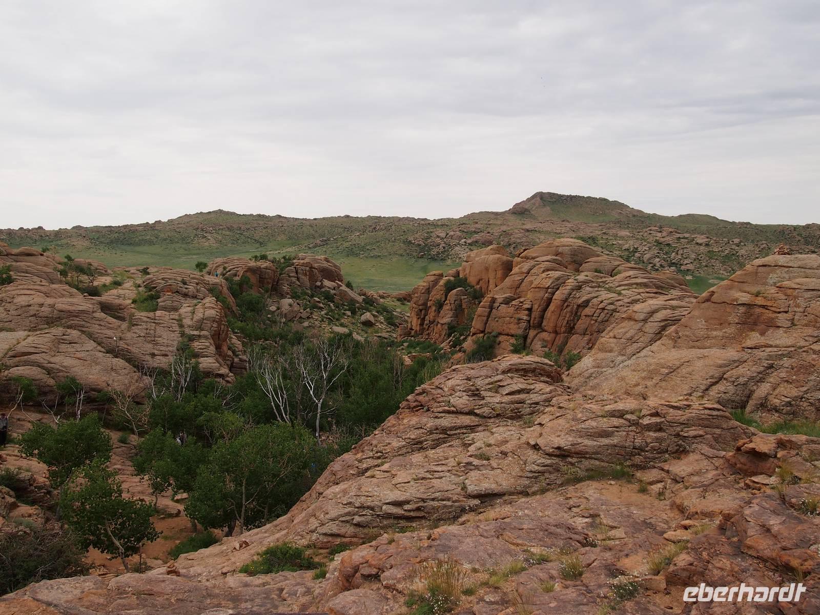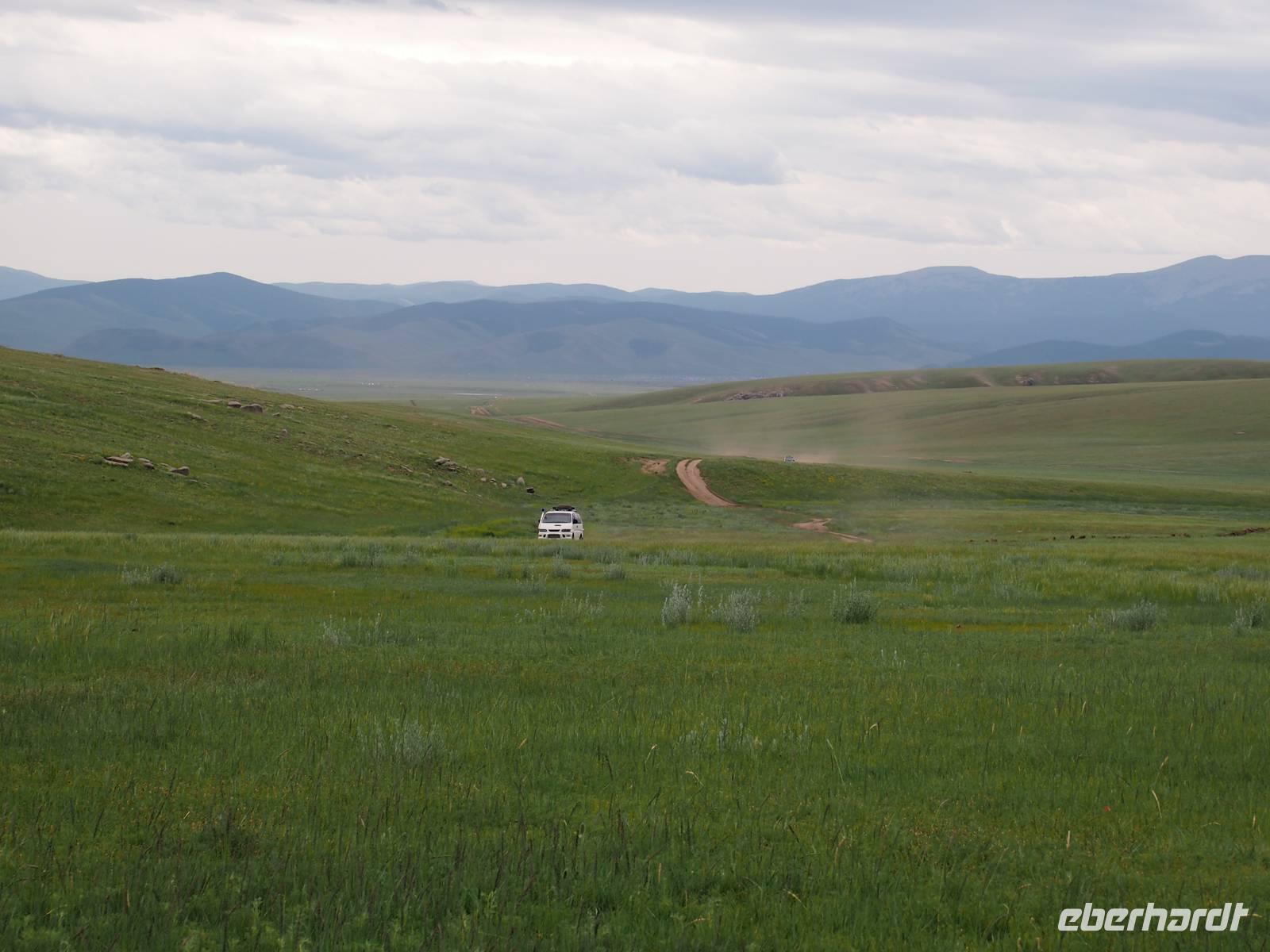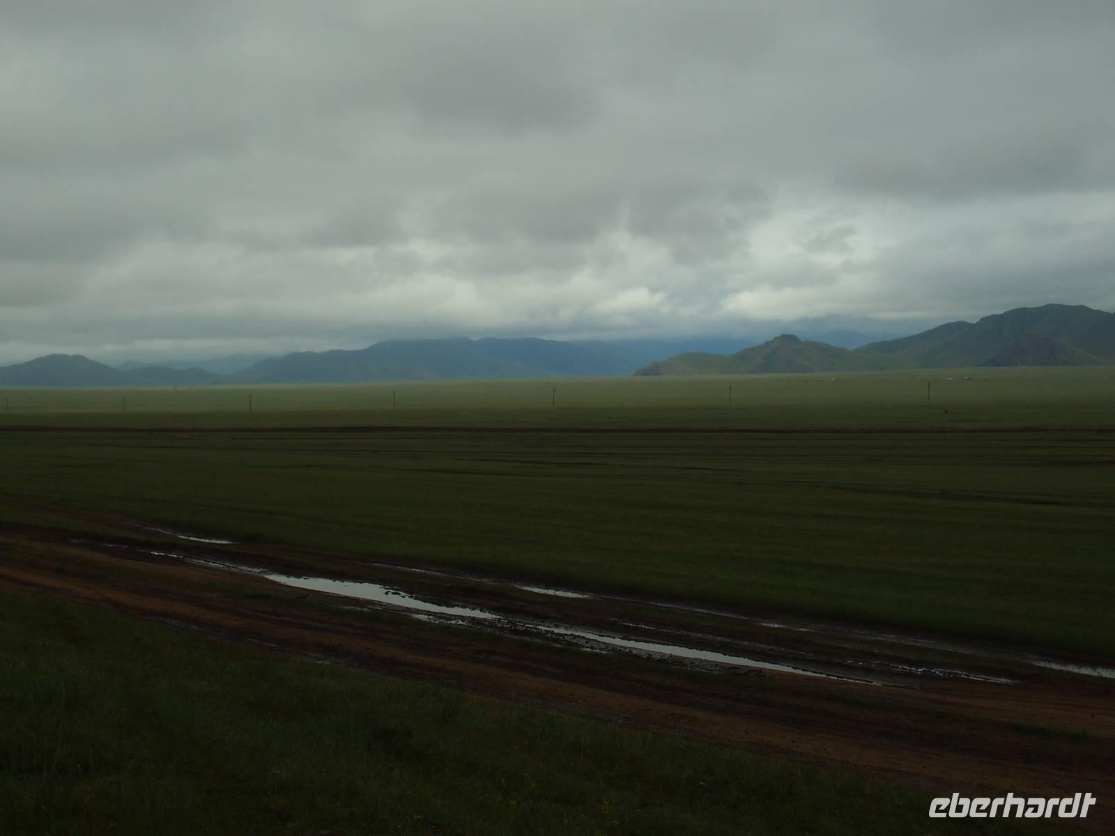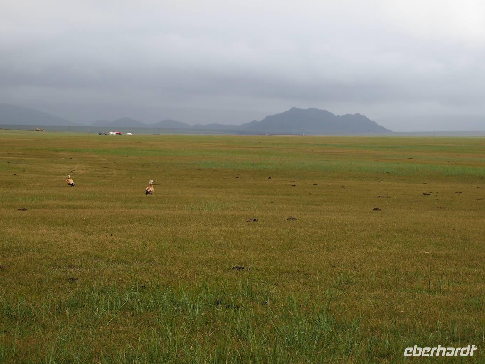 Besonders faszinierend war auch heute wieder zu beobachten, wie sich die Landschaft von Stunde zu Stunde veränderte. Kurz vor unserem heutigen Tagesziel haben wir noch einen kurzen Halt in Danslagad gemacht, um noch ein paar Kleinigkeiten einzukaufen. Dabei schauten wir links und rechts in die Läden. So besuchten wir u.a. auch eine Fleischerei, die in ihrer Art und Weise in Deutschland nicht vorstellbar wäre. Nach ein paar kleinen Einkäufen fuhren wir weiter zu unserem Camp. Obwohl das Wetter uns nicht ganz wohlgesonnen war, hat es viele von uns nicht abgeschreckt, die Gegend zu erkunden. So wurden schnell die Regenjacken rausgeholt und wir bestiegen die Hügel in der Umgebung. Die Aussicht war herrlich und die Wolken ließen nur erahnen, was sich in der Ferne noch alles verbirgt. Doch Petrus stimmte sich schnell milde und ließ die Sonne wieder scheinen. Nach dem Abendbrot ging es nach einer warmen Dusche für alle zeitig ins Bett, wobei der Regen noch lange leise auf die Dächer der Jurten tropfte.