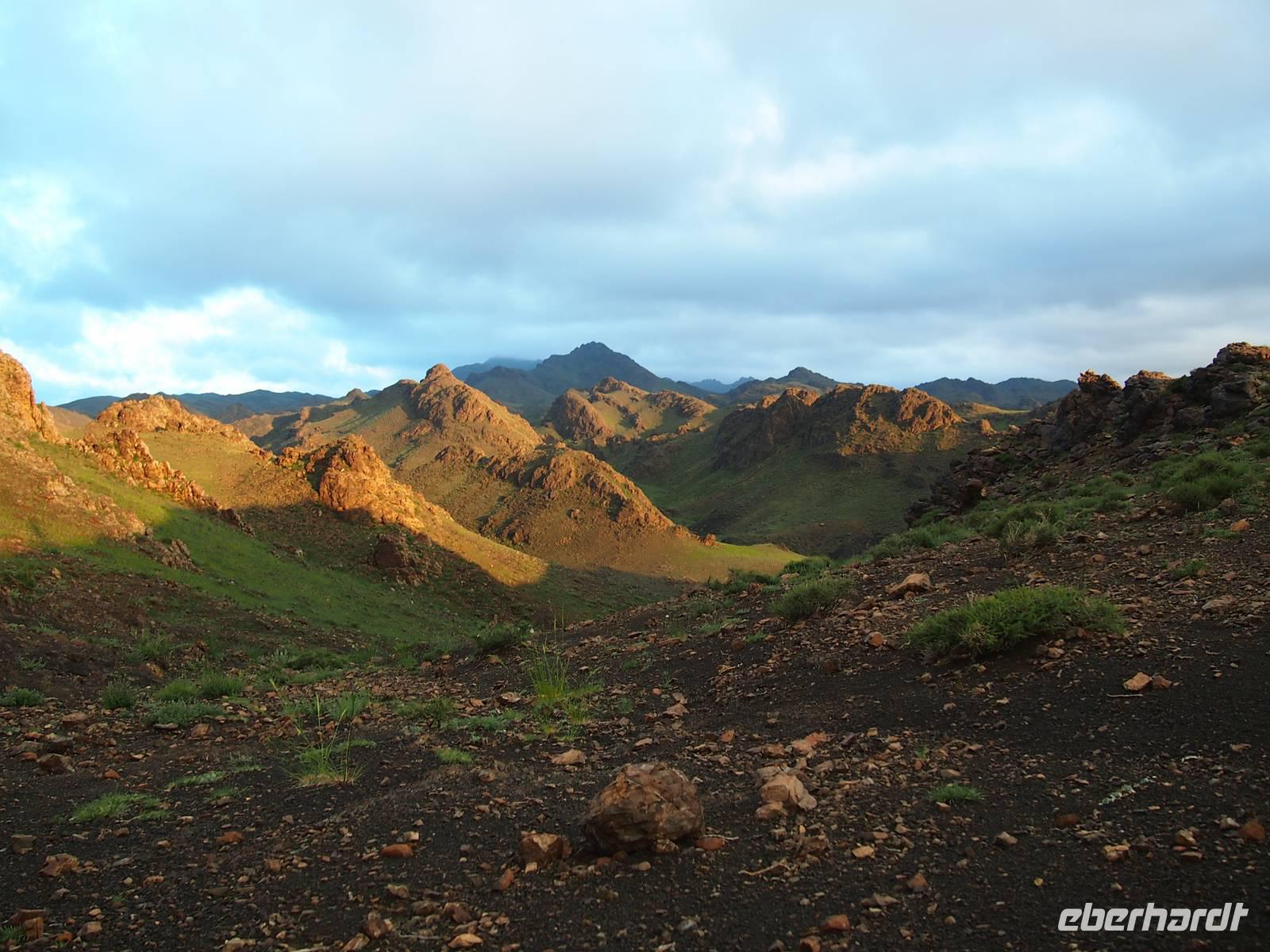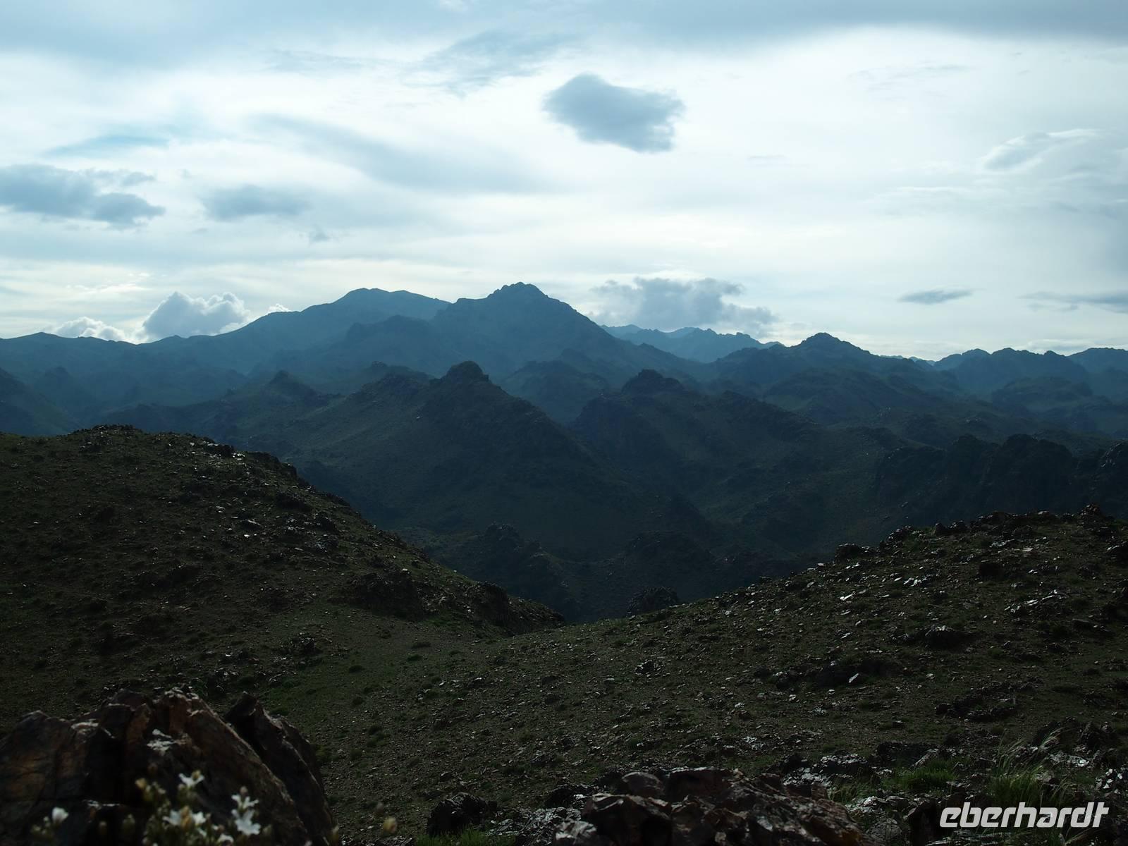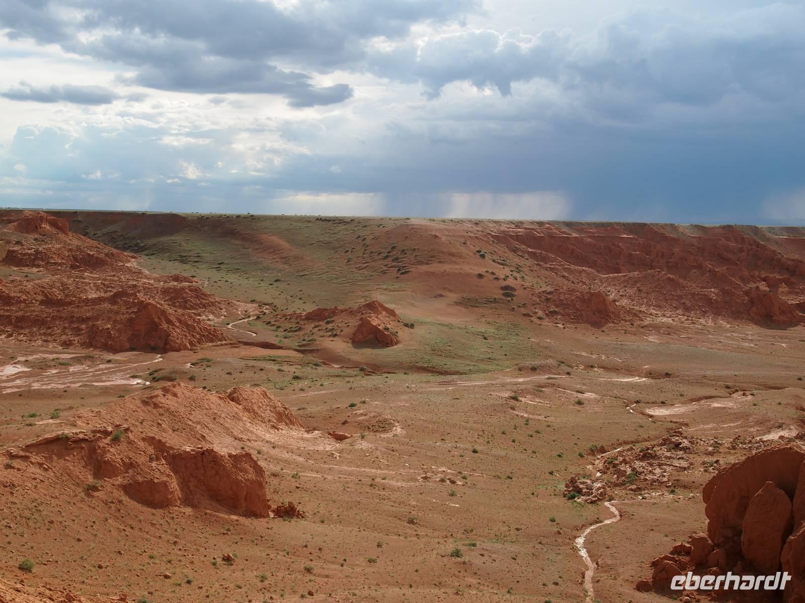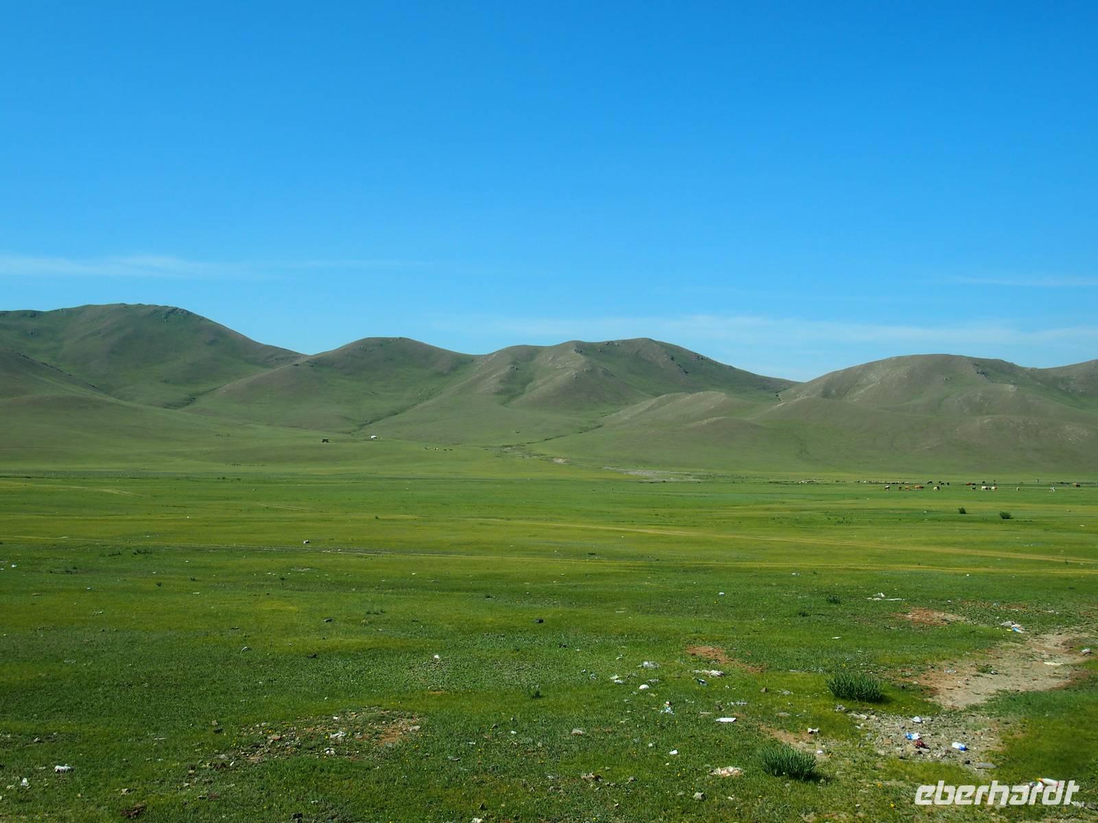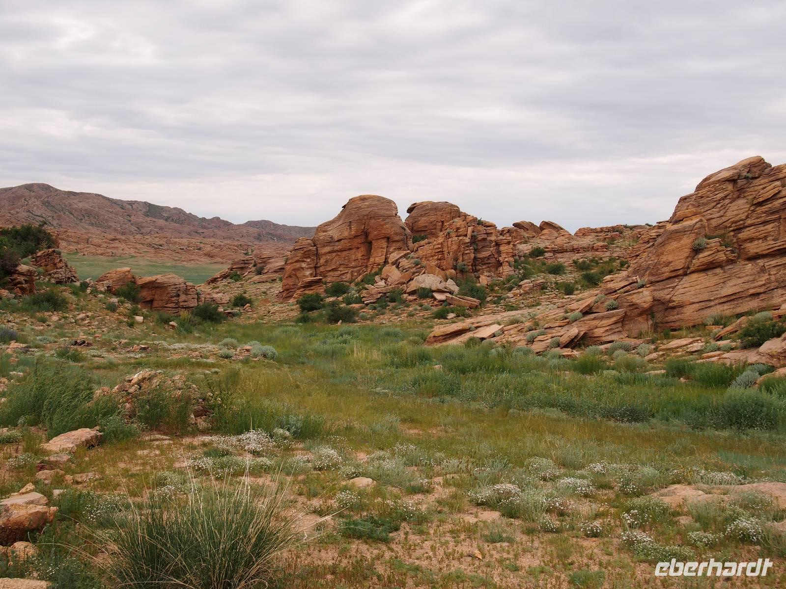 Besonders faszinierend war auch heute wieder zu beobachten, wie sich die Landschaft von Stunde zu Stunde veränderte. Kurz vor unserem heutigen Tagesziel haben wir noch einen kurzen Halt in Danslagad gemacht, um noch ein paar Kleinigkeiten einzukaufen. Dabei schauten wir links und rechts in die Läden. So besuchten wir u.a. auch eine Fleischerei, die in ihrer Art und Weise in Deutschland nicht vorstellbar wäre. Nach ein paar kleinen Einkäufen fuhren wir weiter zu unserem Camp. Obwohl das Wetter uns nicht ganz wohlgesonnen war, hat es viele von uns nicht abgeschreckt, die Gegend zu erkunden. So wurden schnell die Regenjacken rausgeholt und wir bestiegen die Hügel in der Umgebung. Die Aussicht war herrlich und die Wolken ließen nur erahnen, was sich in der Ferne noch alles verbirgt. Doch Petrus stimmte sich schnell milde und ließ die Sonne wieder scheinen. Nach dem Abendbrot ging es nach einer warmen Dusche für alle zeitig ins Bett, wobei der Regen noch lange leise auf die Dächer der Jurten tropfte.