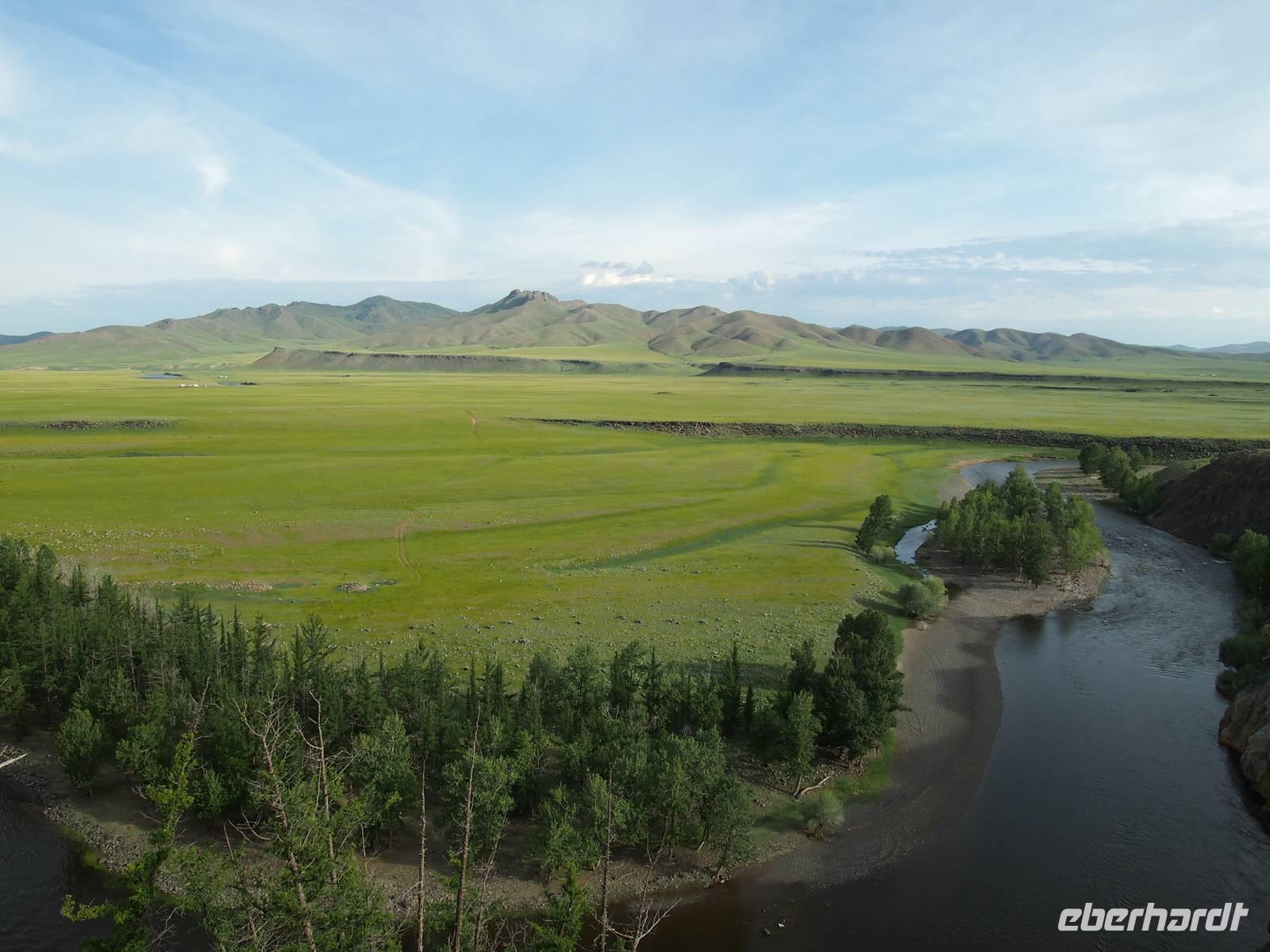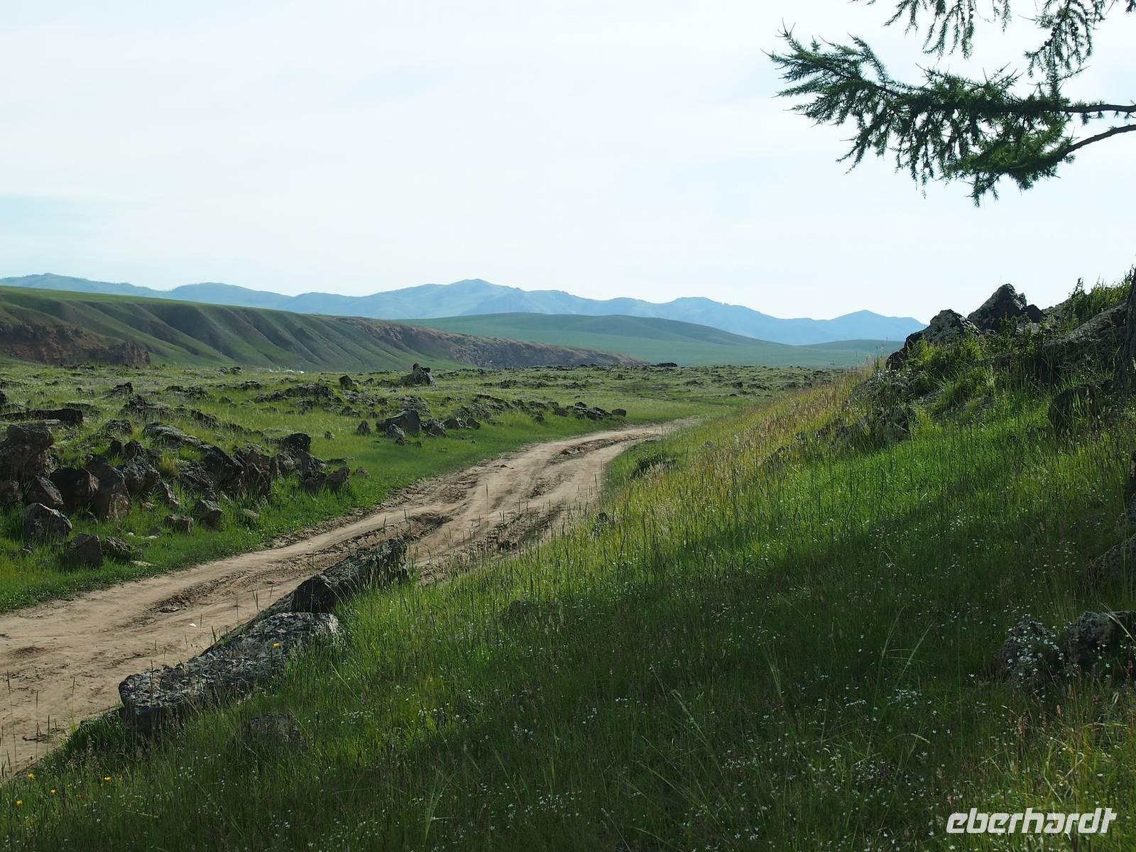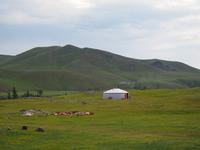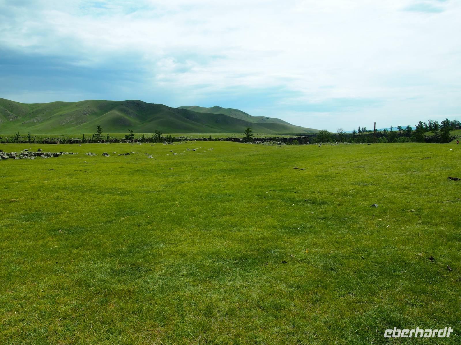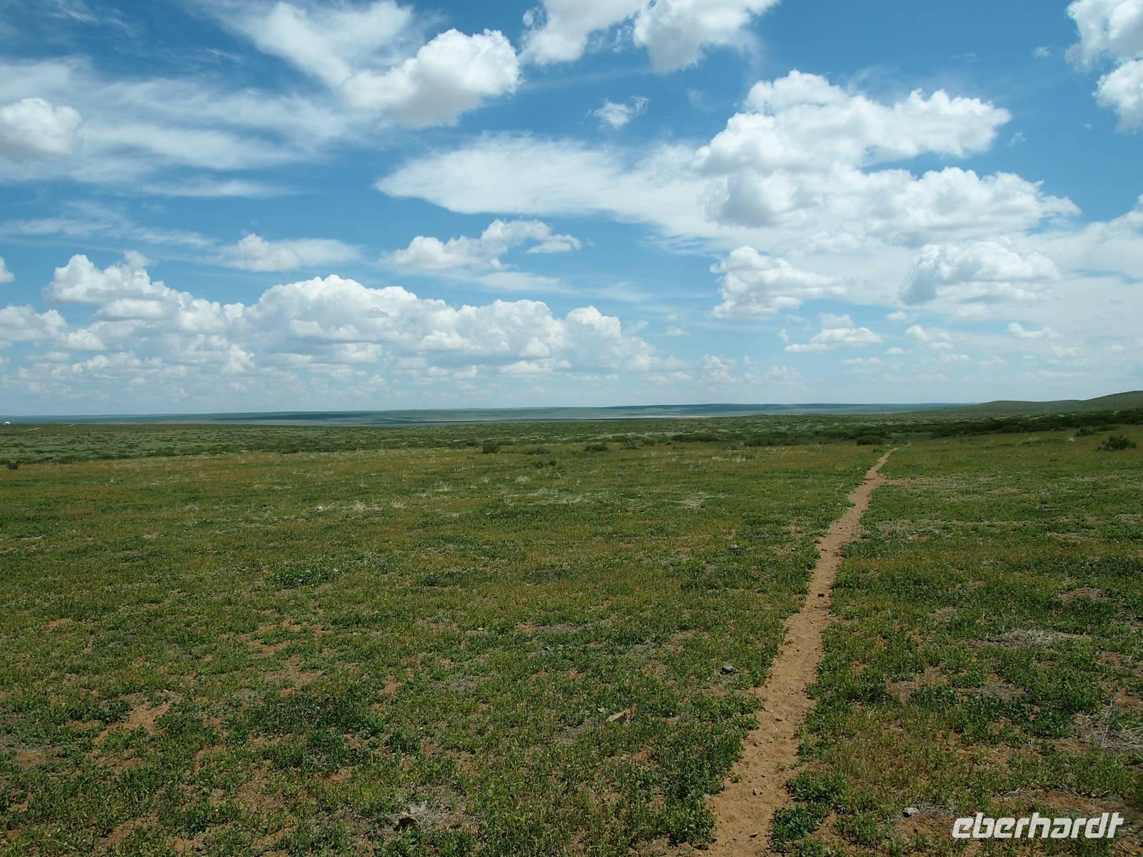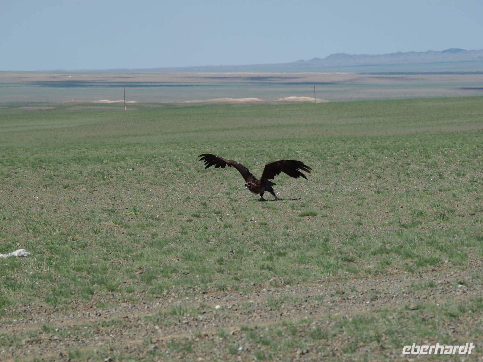 Unsere Mittagspause legten wir wieder in der unendlichen Weite ein. Sensationell war dabei zu sehen, wie ein Adler über uns hinweg flog. Auf unserer weiteren Fahrt sahen wir noch viele weitere Adler. Die Landschaft wurde immer idyllischer und faszinierender. Dieses saftige Grün der Wiesen und die leicht blauen Berge in der Ferne. Auf den Wiesen sah man sehr viele Pferde, Rinder und unsere ersten Yaks auf der Reise. Unser Camp erreichten wir erst am Abend. Nach dem Essen erkundeten einige noch die nähere Umgebung und sahen so neben der hervorragenden Aussicht auch noch Felszeichnungen. Nach einem doch etwas anstrengenden Tag ging es heute für uns zeitig ins Bett.