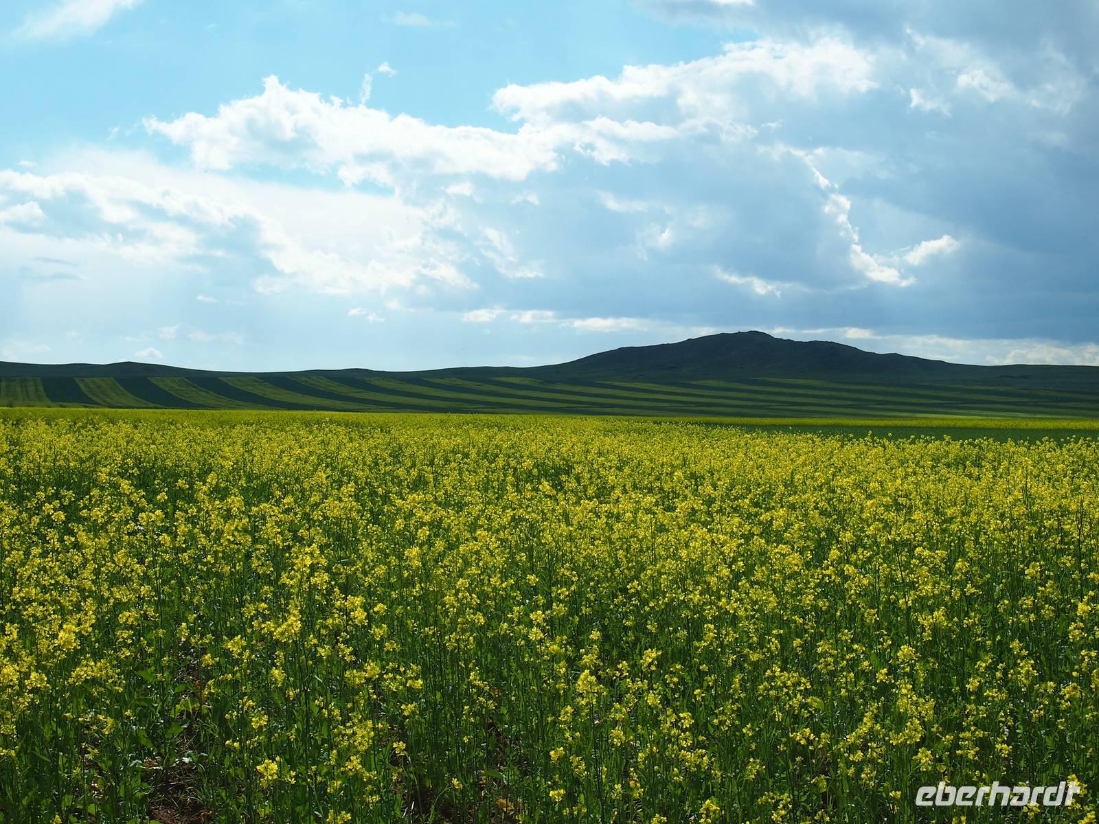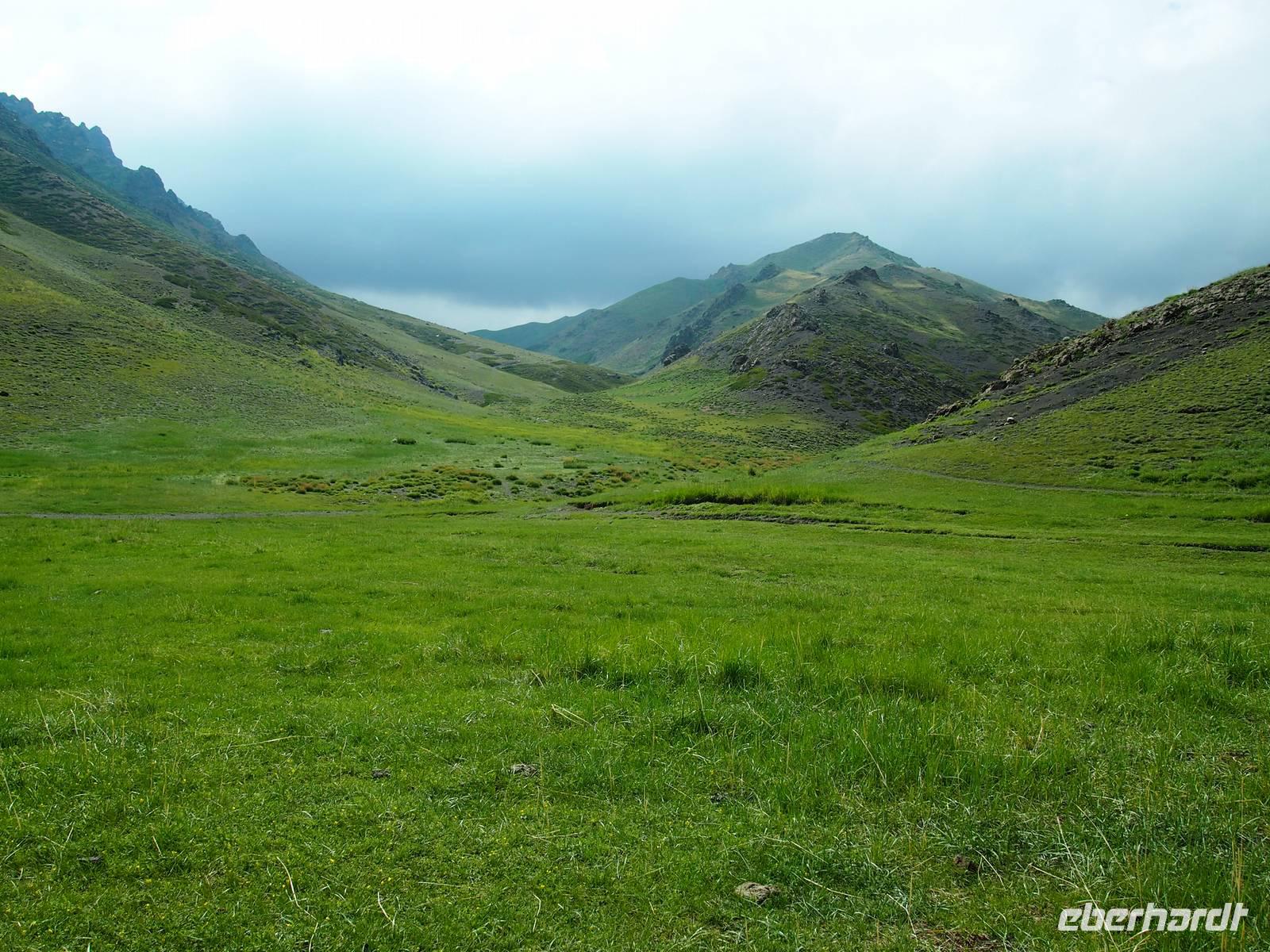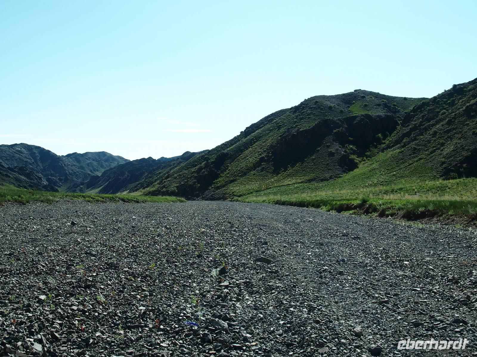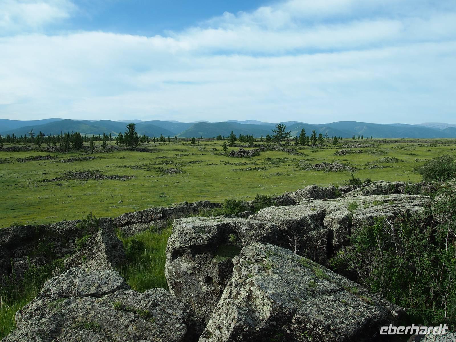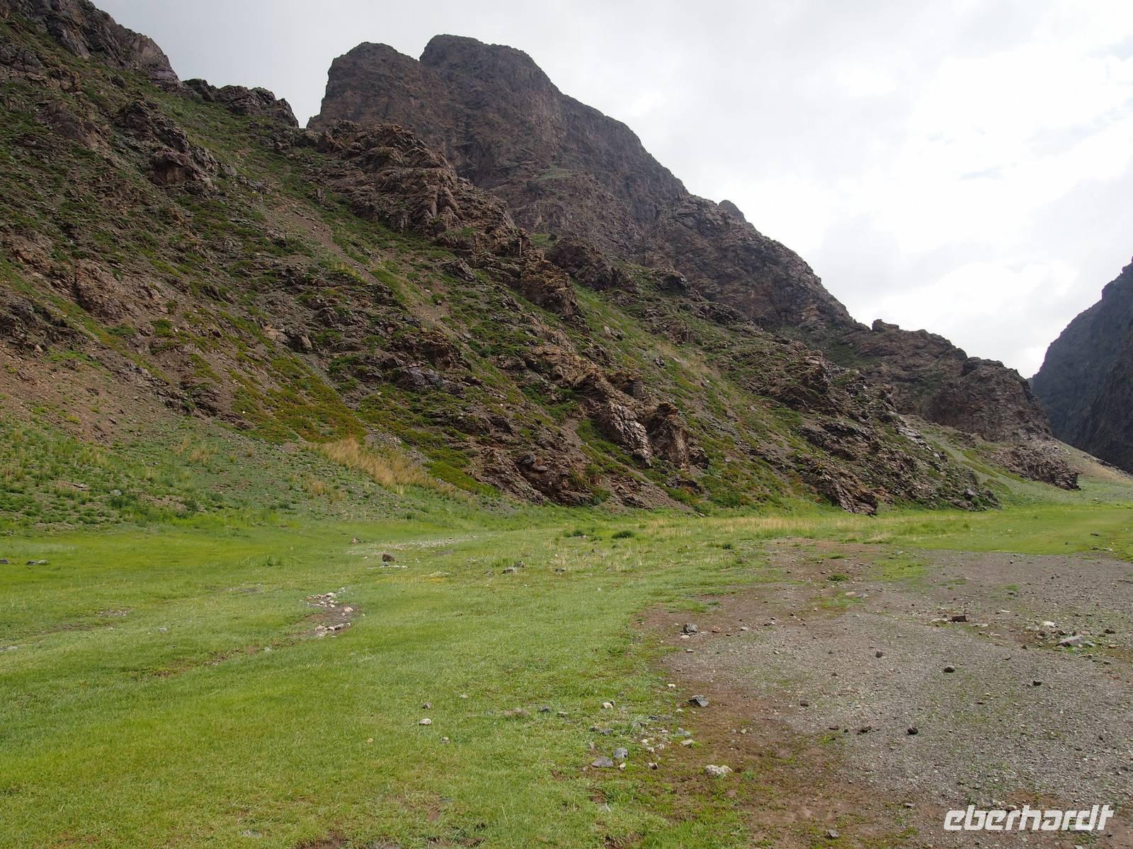Unsere Mittagspause legten wir wieder in der unendlichen Weite ein. Sensationell war dabei zu sehen, wie ein Adler über uns hinweg flog. Auf unserer weiteren Fahrt sahen wir noch viele weitere Adler. Die Landschaft wurde immer idyllischer und faszinierender. Dieses saftige Grün der Wiesen und die leicht blauen Berge in der Ferne. Auf den Wiesen sah man sehr viele Pferde, Rinder und unsere ersten Yaks auf der Reise. Unser Camp erreichten wir erst am Abend. Nach dem Essen erkundeten einige noch die nähere Umgebung und sahen so neben der hervorragenden Aussicht auch noch Felszeichnungen. Nach einem doch etwas anstrengenden Tag ging es heute für uns zeitig ins Bett.